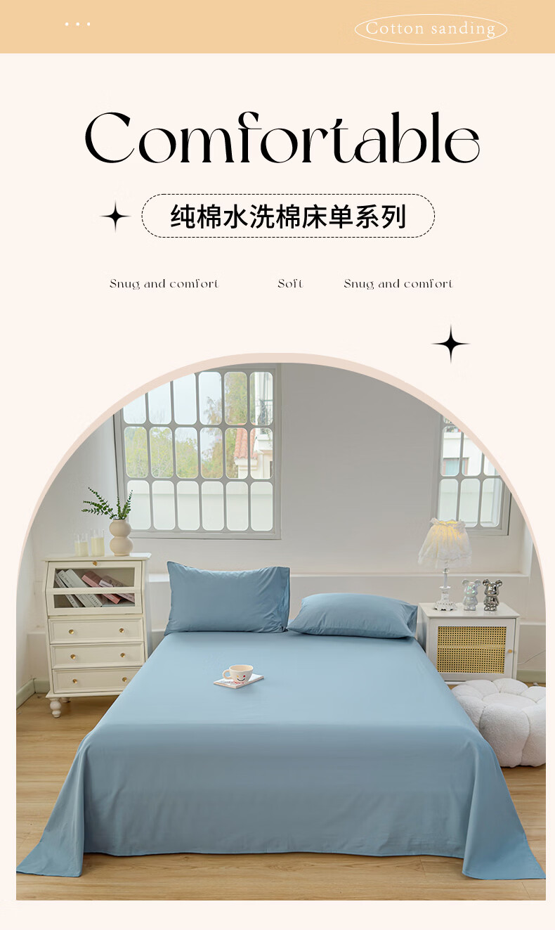 MUJI Xinjiang long-staple cotton bed sheet 1.8x2 meter bed pure cotton home student dormitory three-piece set for all seasons Khaki Class A standard pure cotton fabric 240*250cm three-piece set bed sheet + pillowcase *2