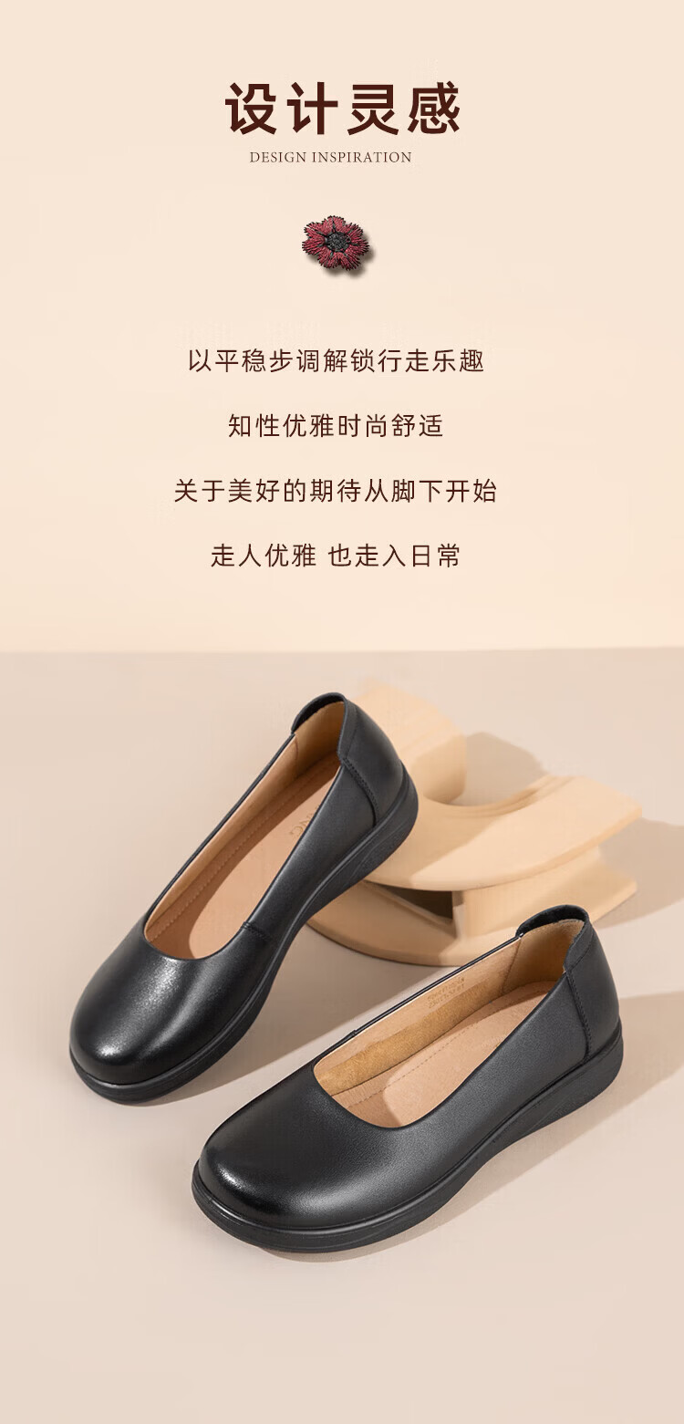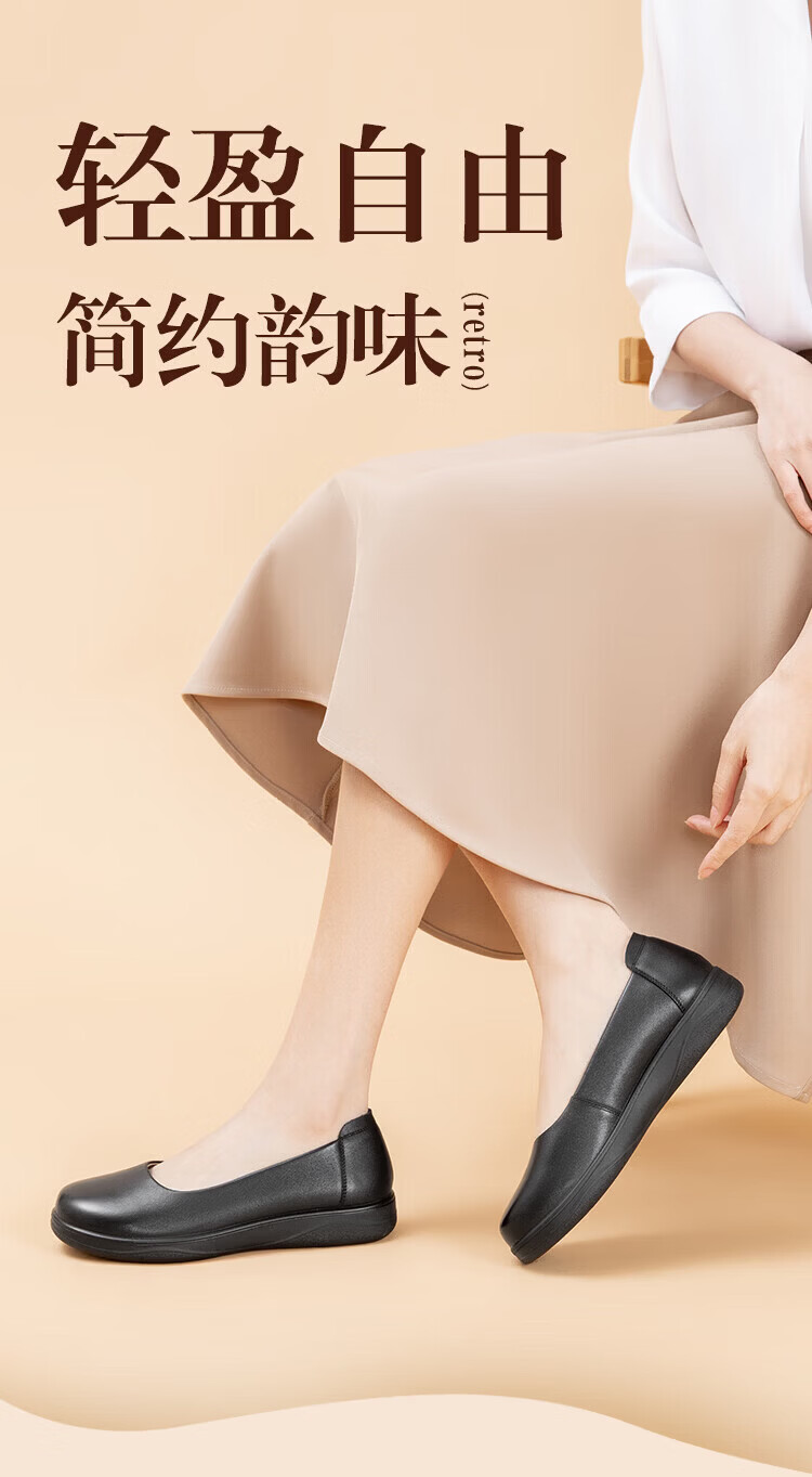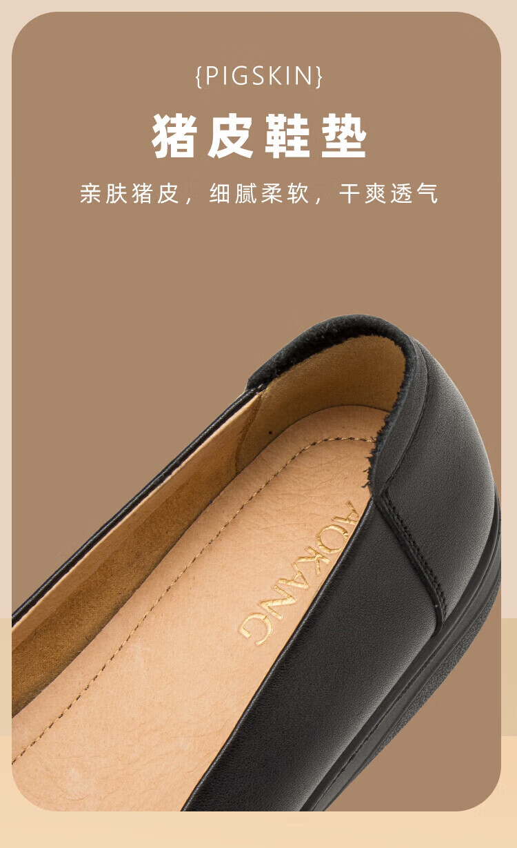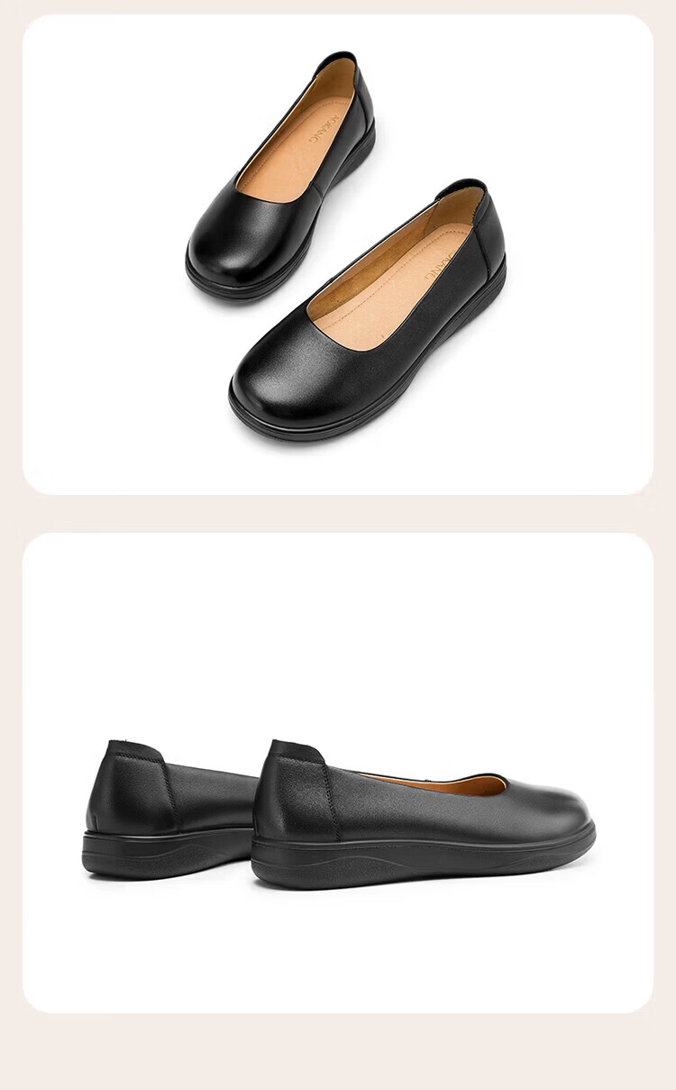 Aokang Women's Shoes Spring and Autumn New Style Comfortable Flat Shoes Soft Sole Anti-Slip Mom Shoes Shallow Mouth Single Shoes Genuine Leather Commuting Work Shoes N Black 36