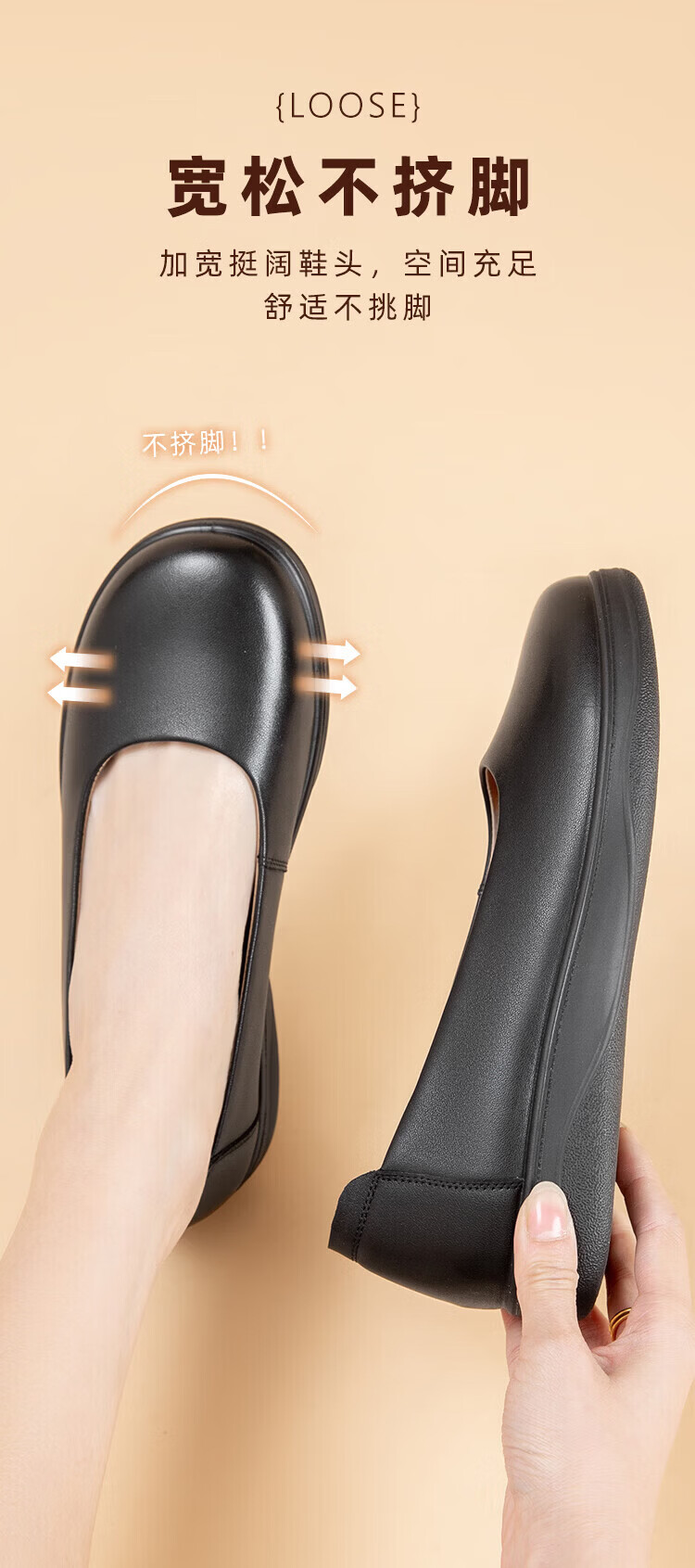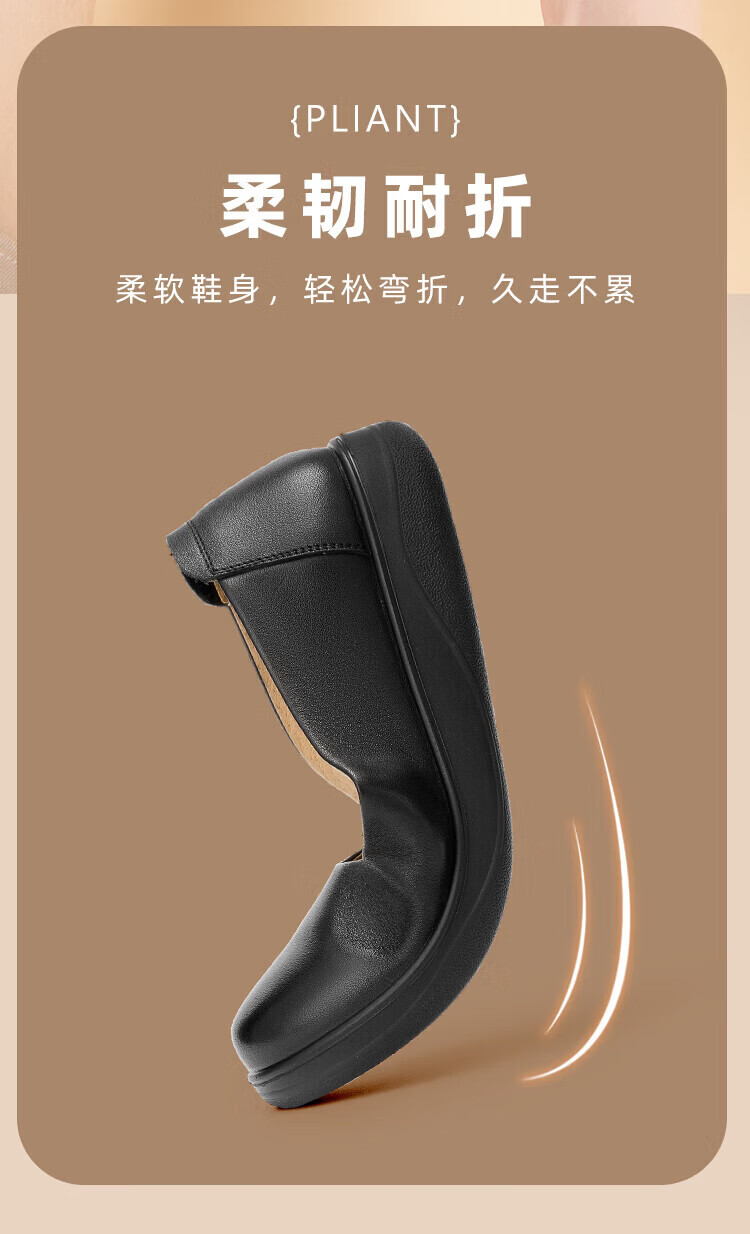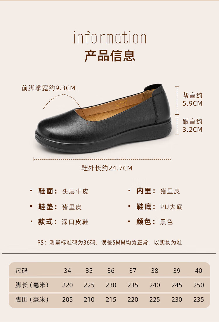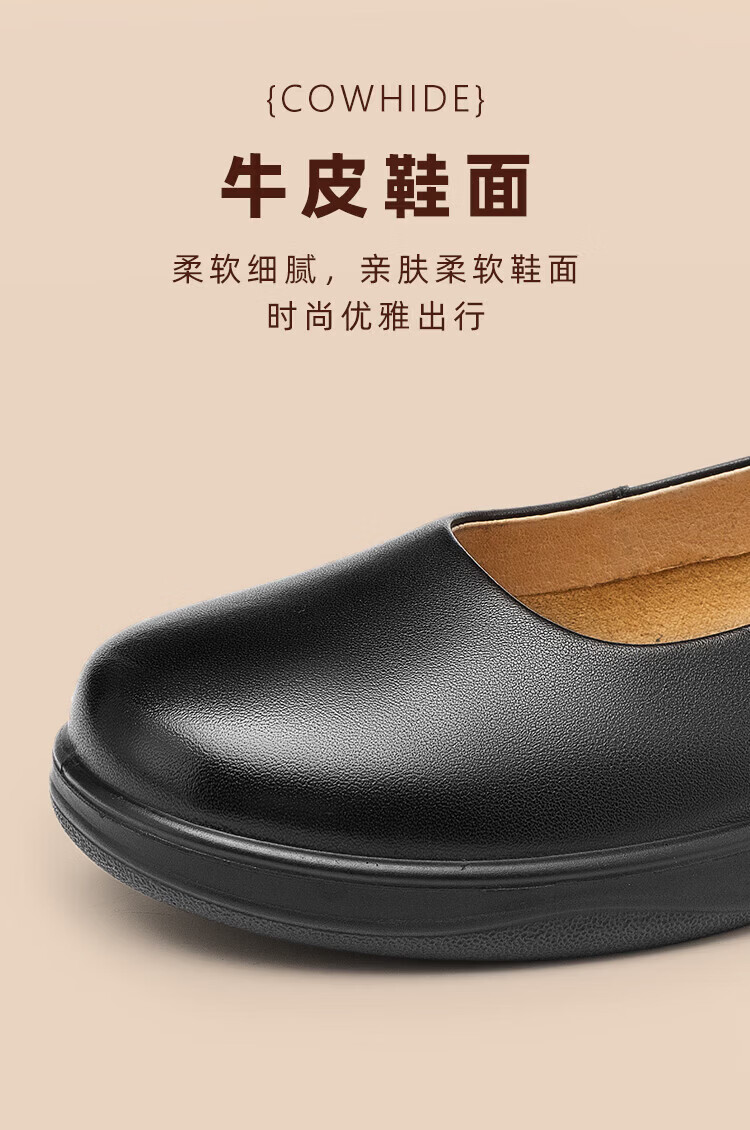 Aokang Women's Shoes Spring and Autumn New Style Comfortable Flat Shoes Soft Sole Anti-Slip Mom Shoes Shallow Mouth Single Shoes Genuine Leather Commuting Work Shoes N Black 36