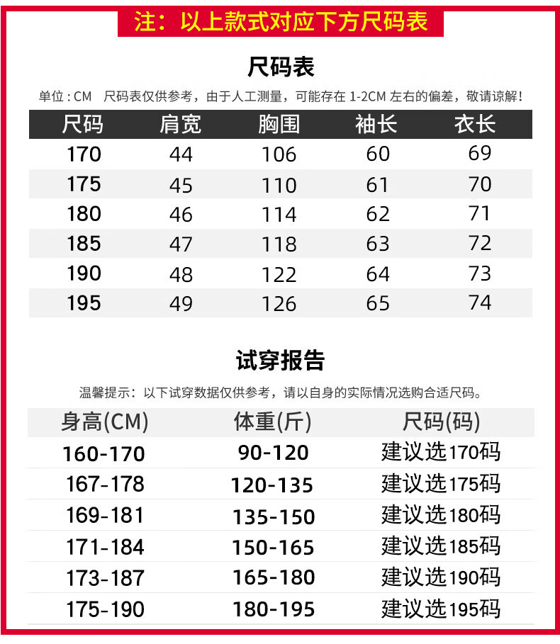 China (cm) 160-165/84-86 165-170 / 88-90 167-172 / 92-96 168-173 / 98-102 170-176 / 106-110