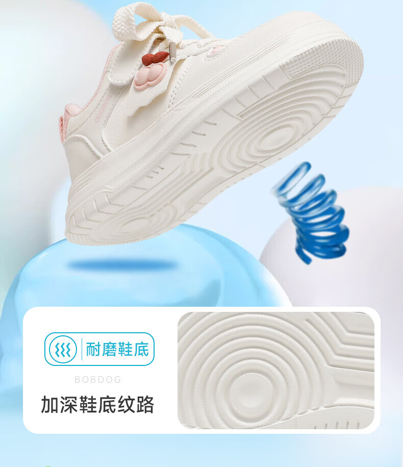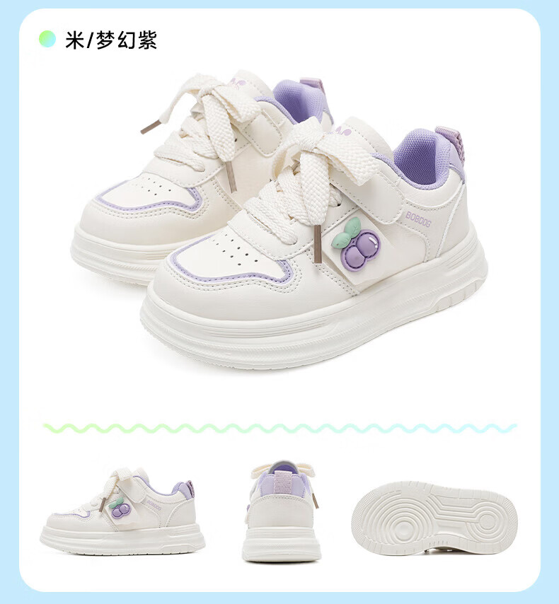 BOBDOG Children's Shoes Girls' Shoes Girls 2026 Spring New Casual Low-top Campus White Shoes Children's Sports Shoes Mi/Fruit Powder 26 Suitable for Feet Length 14.9CM