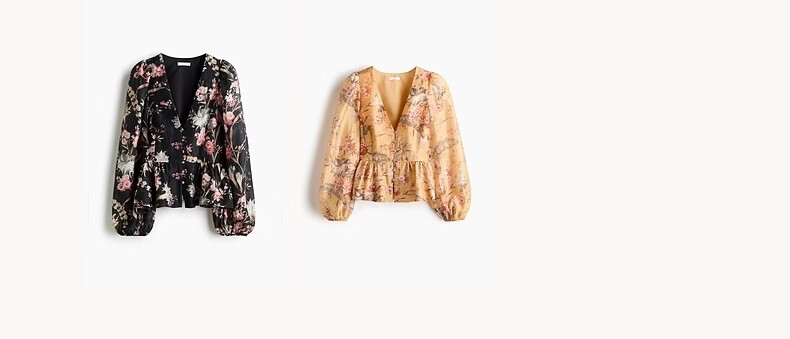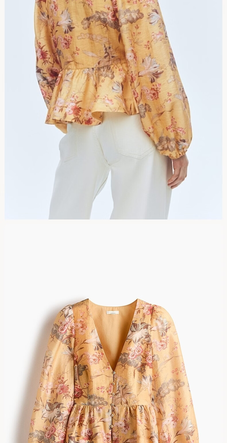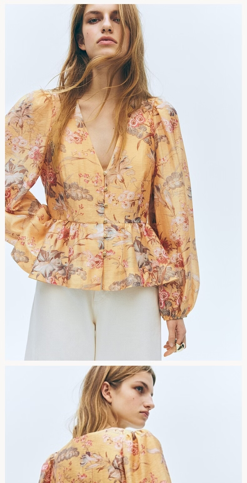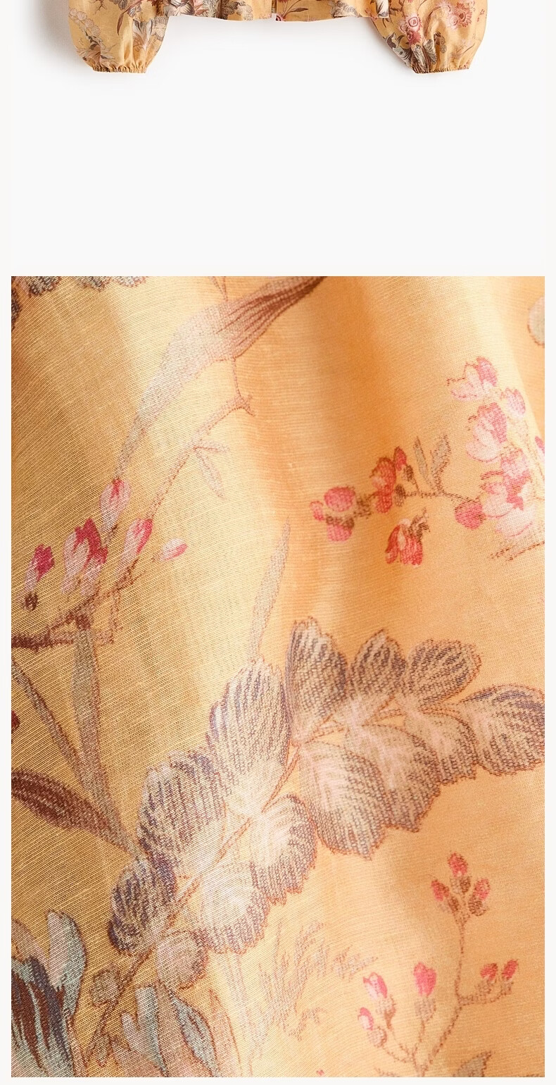 H&M2026 Spring New Women's Linen Blended Skirt Hem Top 1321285 Black/Floral XS 155/80