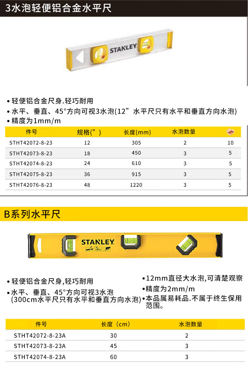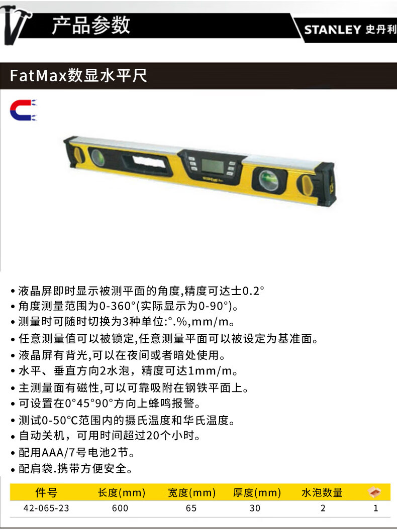 Stanley (STANLEY) level high-precision small digital display 3 bubble ruler with magnetic aluminum alloy ruler household level digital display level 600mm_42-065-23