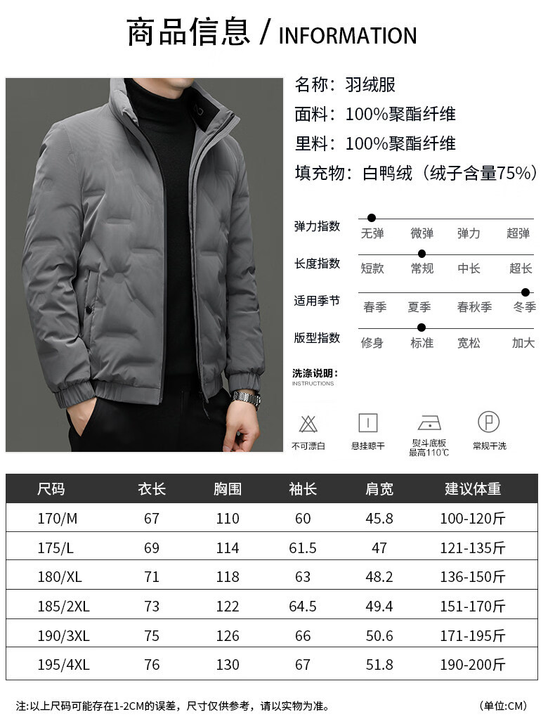 Hengyuanxiang Мужская пуховая куртка с коротким воротником-стойкой Зимняя теплая повседневная куртка для молодежи и среднего возраста 2026 Новая зимняя мужская одежда черного цвета M
