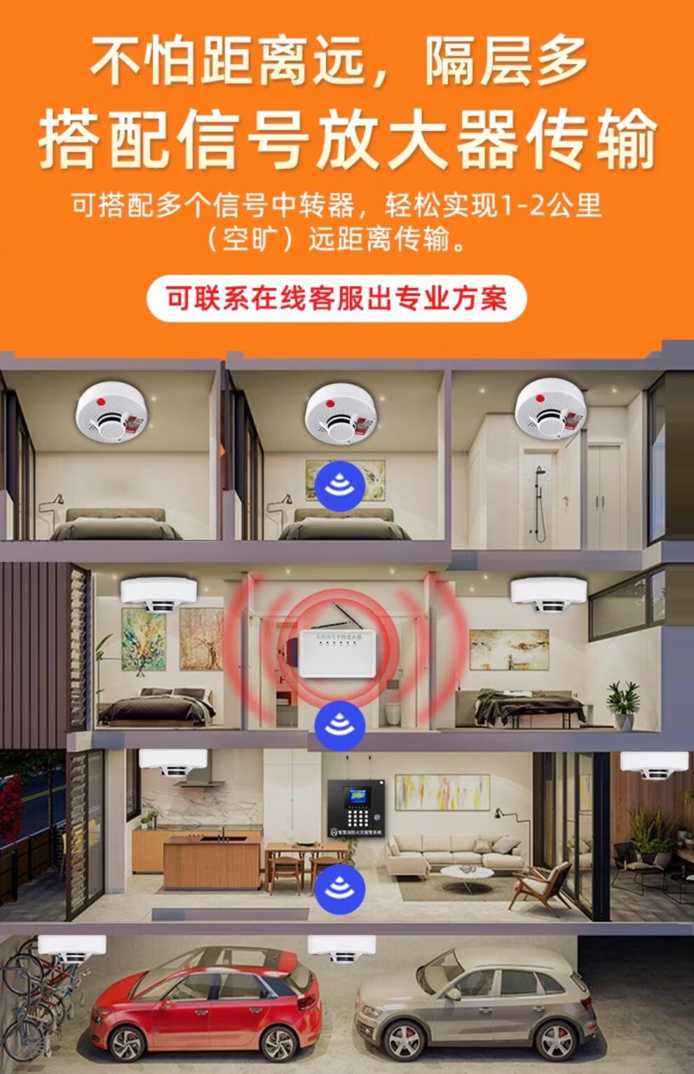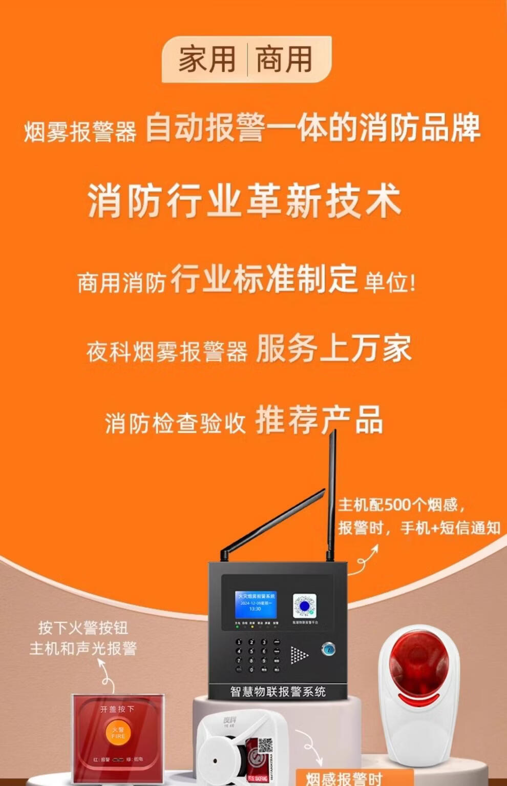Wireless smoke alarm, dedicated for fire protection, commercial fire sensor detection, intelligent remote networked smoke sensor, fire certification, alarm host + 30 wireless smoke sensors