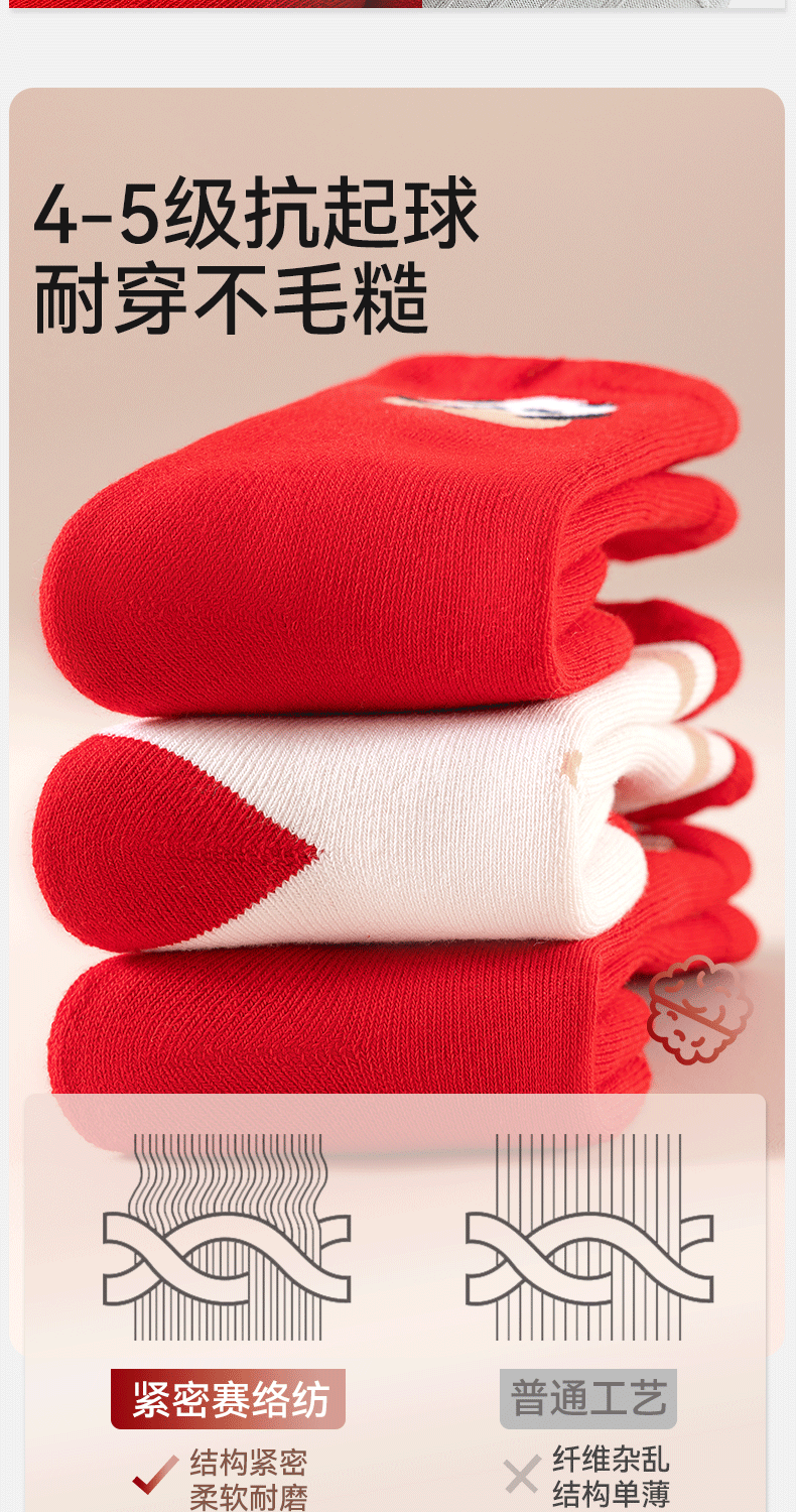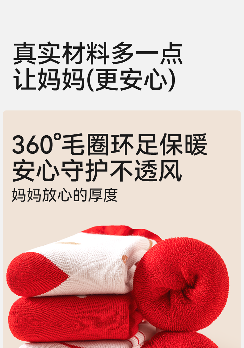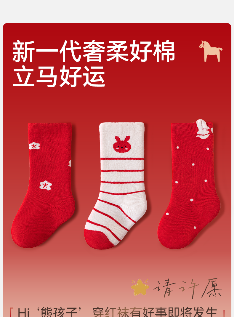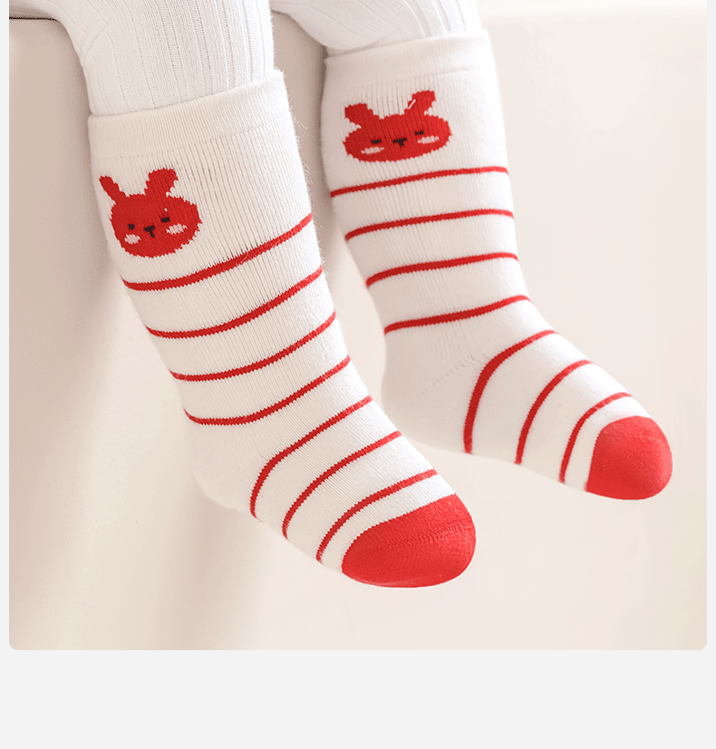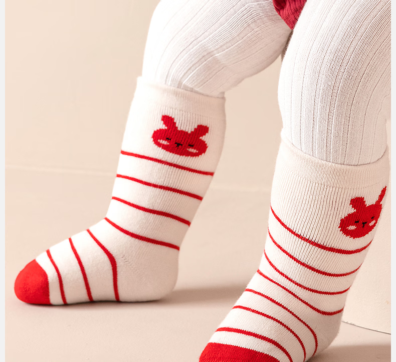 Mianqi Bear baby socks autumn and winter baby thickened red New Year socks infant terry socks winter warm children's mid-calf socks QDZ5070-1-3 pairs thickened terry not easy to fade 1-3 years old - recommended foot length 10-12cm