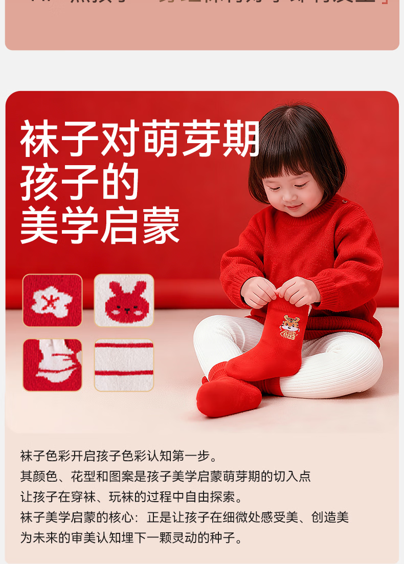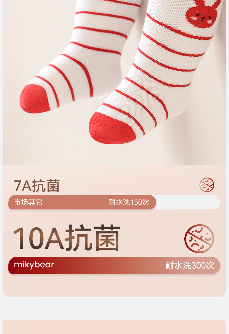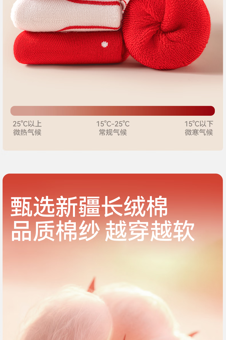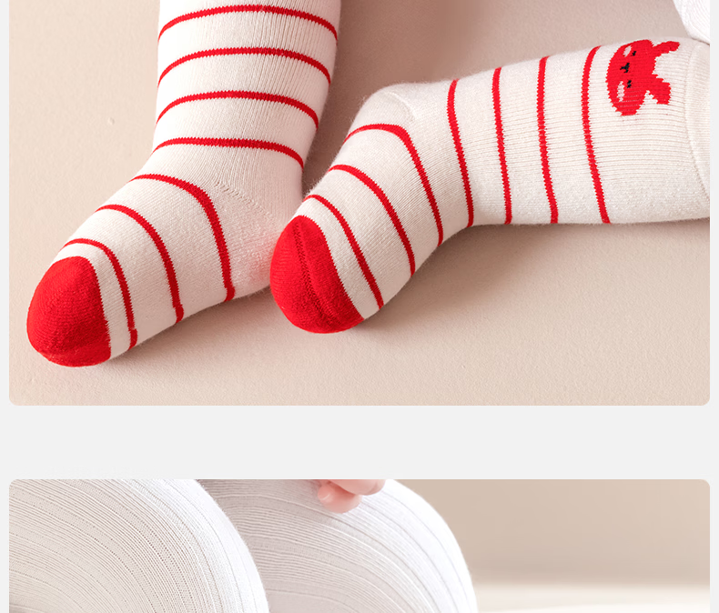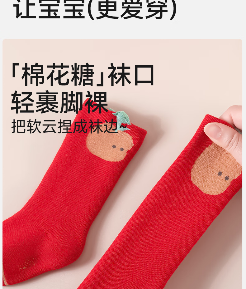 Mianqi Bear baby socks autumn and winter baby thickened red New Year socks infant terry socks winter warm children's mid-calf socks QDZ5070-1-3 pairs thickened terry not easy to fade 1-3 years old - recommended foot length 10-12cm