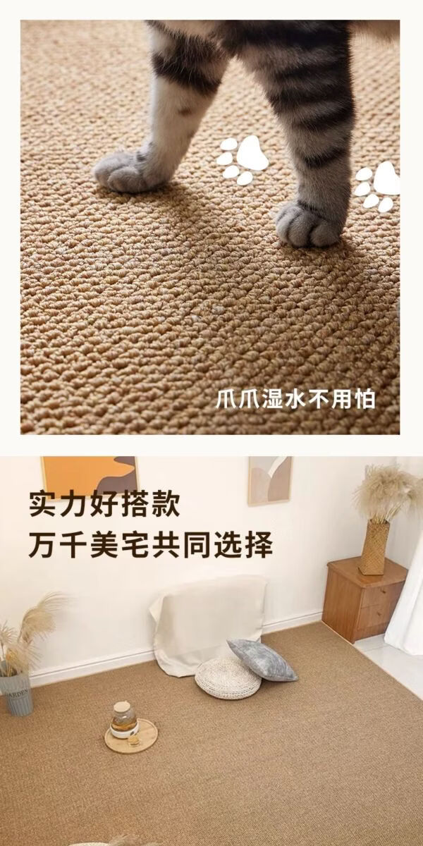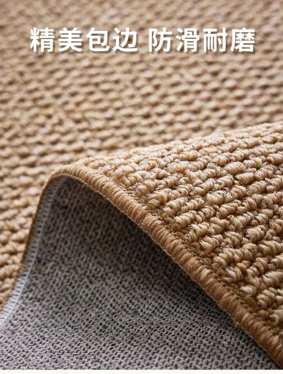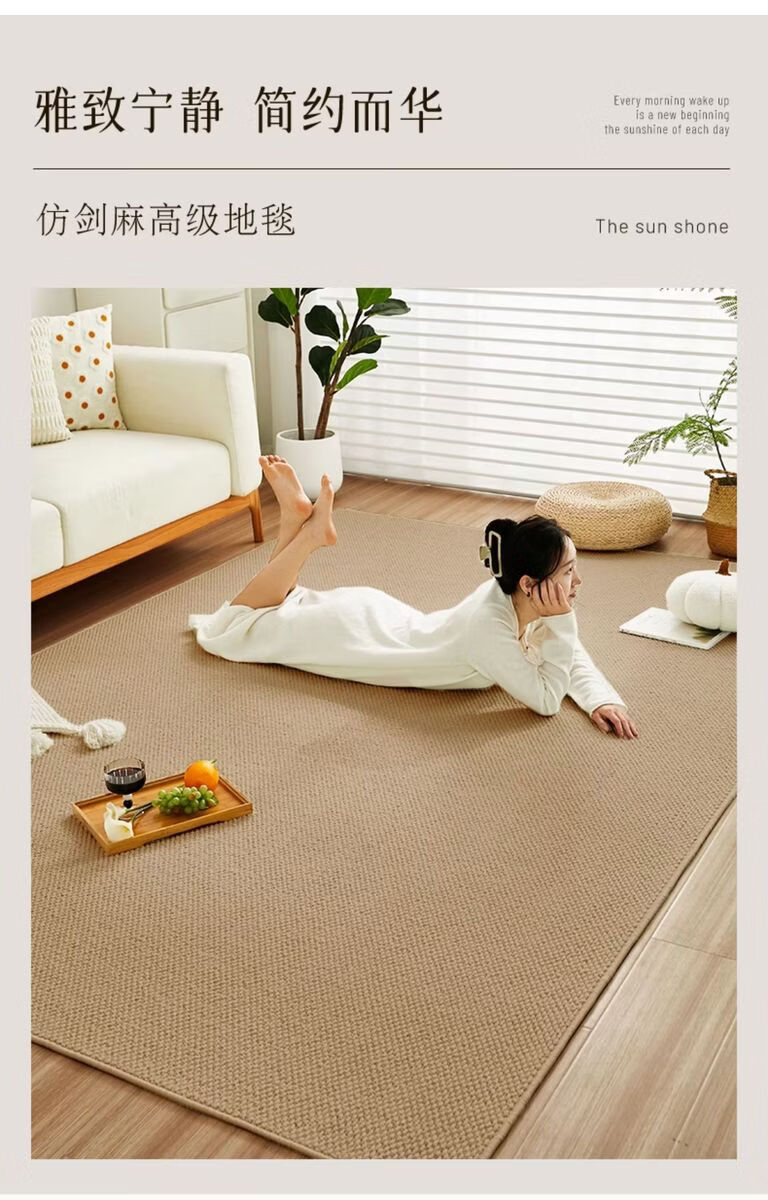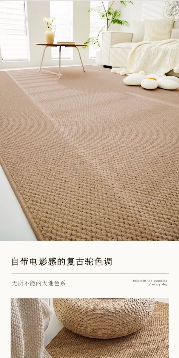 Sanqihu Fuhuan imitation sisal rectangular carpet, simple washable cotton and linen floor mat, camel white two-color, upgraded large loop pile imitation sisal 140x180cm