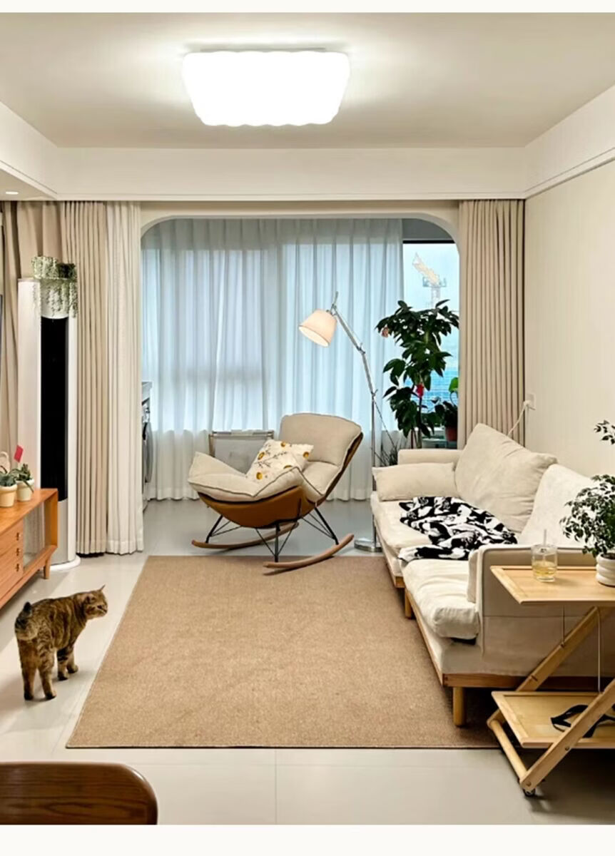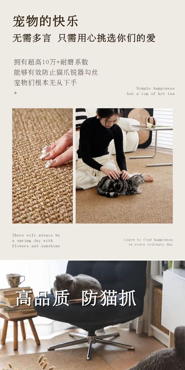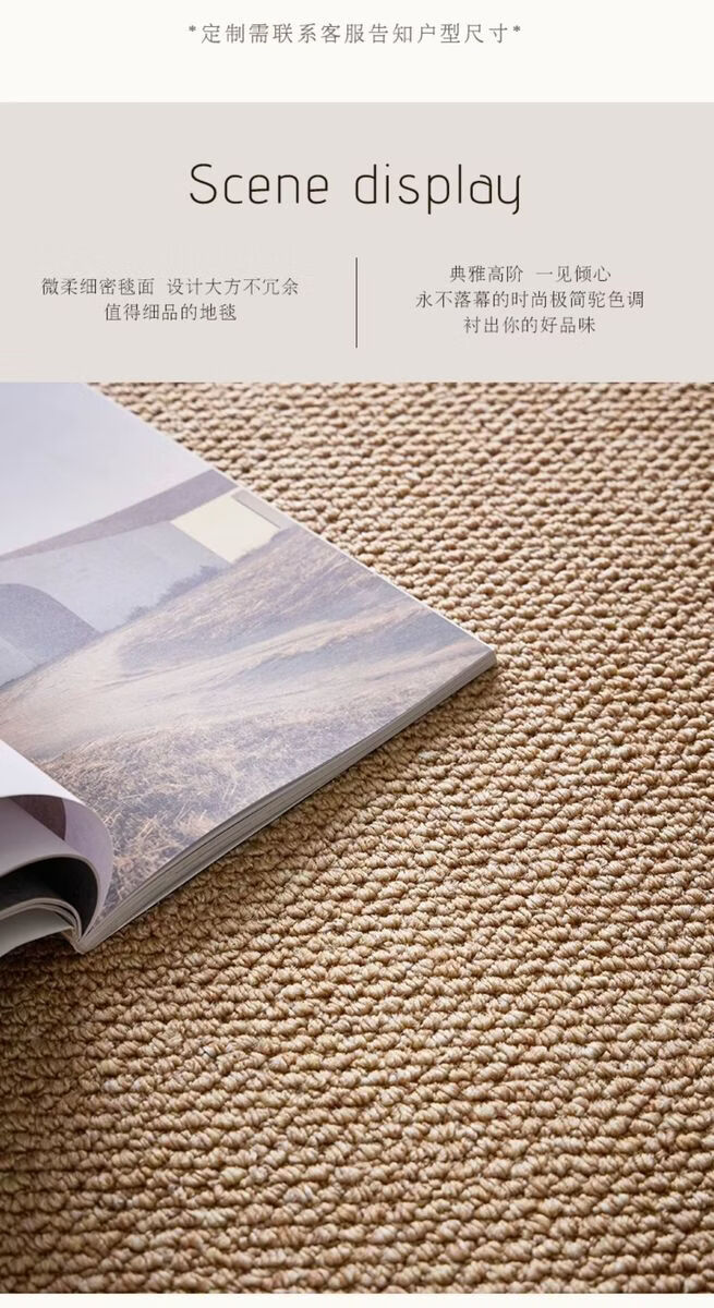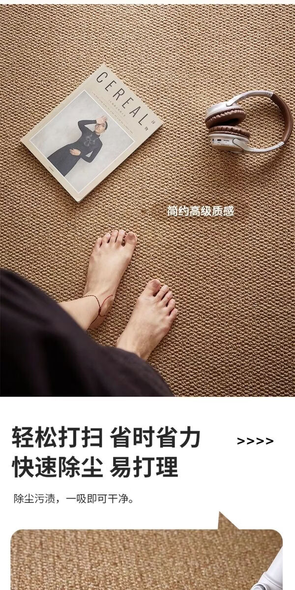 Sanqihu Fuhuan imitation sisal rectangular carpet, simple washable cotton and linen floor mat, camel white two-color, upgraded large loop pile imitation sisal 140x180cm