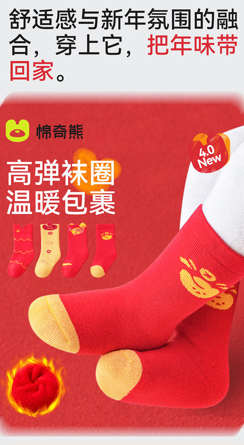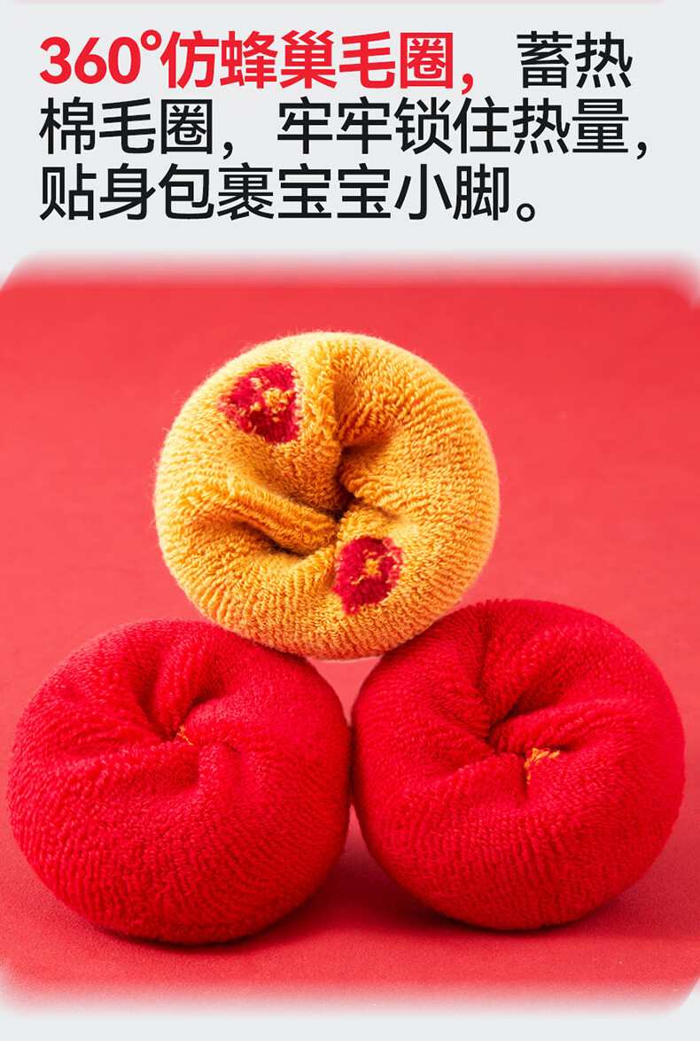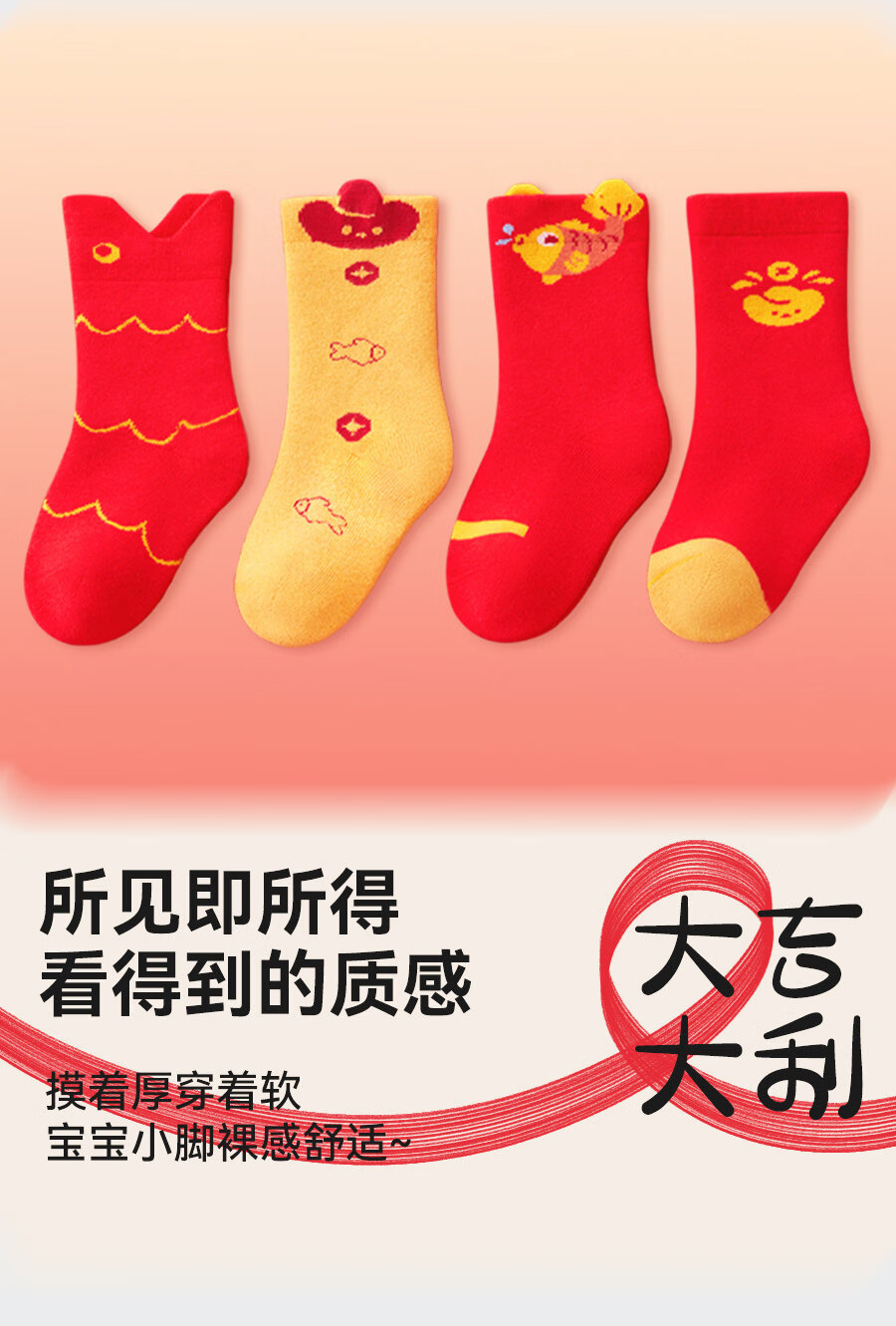 Mianqi Bear Baby Socks Baby Autumn and Winter Red Terry Socks Infants and Toddlers Winter Thickened Warm Children's Mid-Tube New Year Socks Winter YW35 Thickened-Baby Socks-4 Pairs Not Easy to Fade Warm Socks 1-3 Years Old - Recommended Foot Length 12-14cm