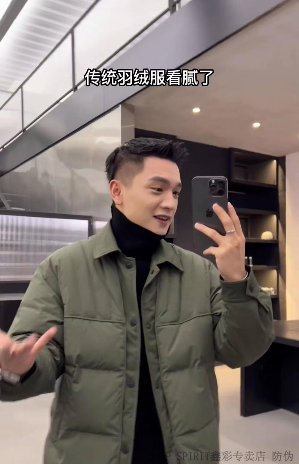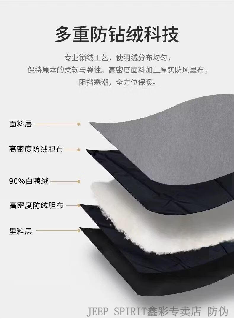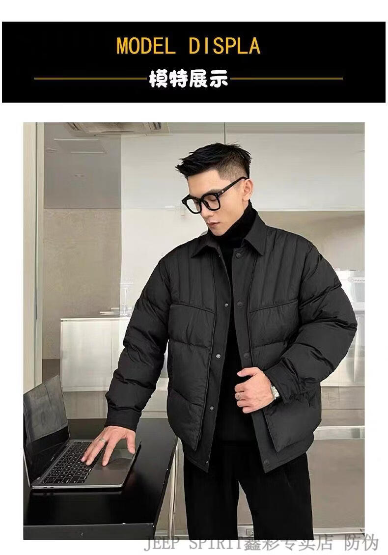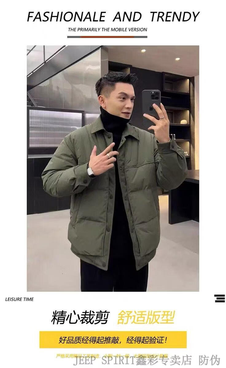 JEEP SPIRIT shirt-style light down jacket men's winter thickened warm fake two-piece down jacket handsome black and white duck down jacket military green M
