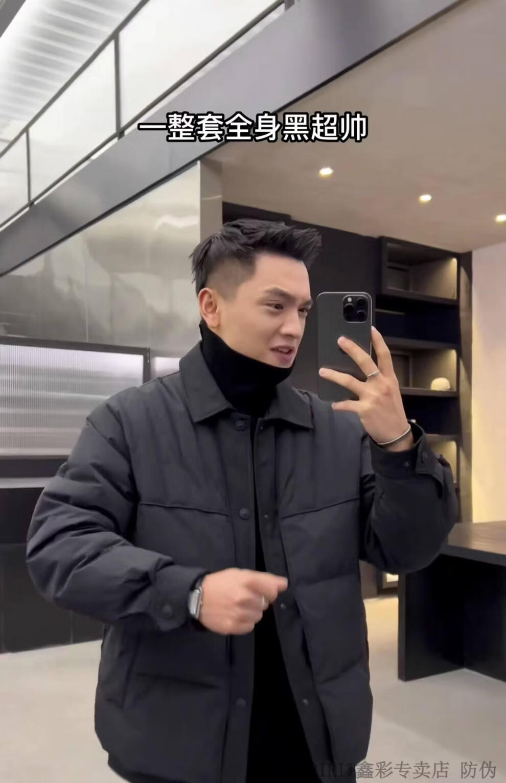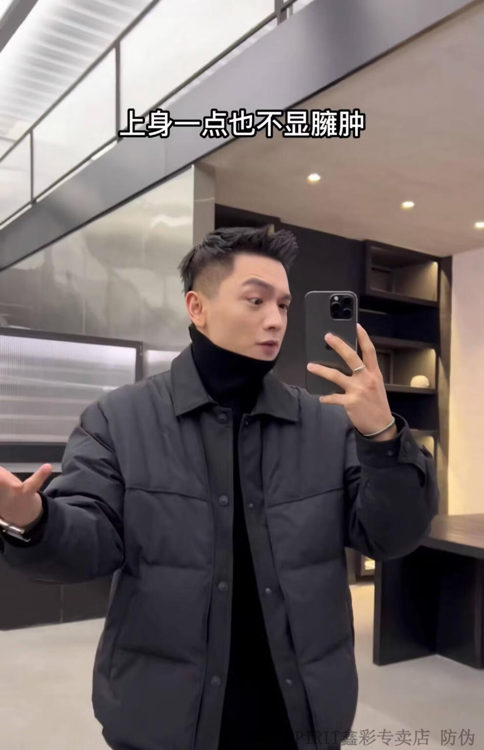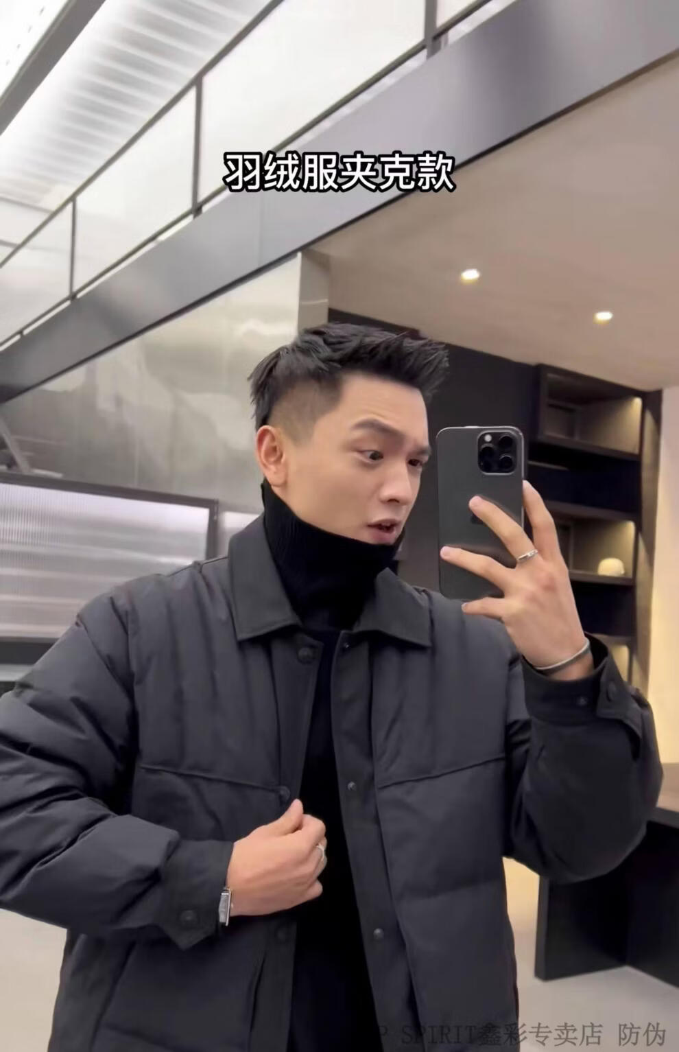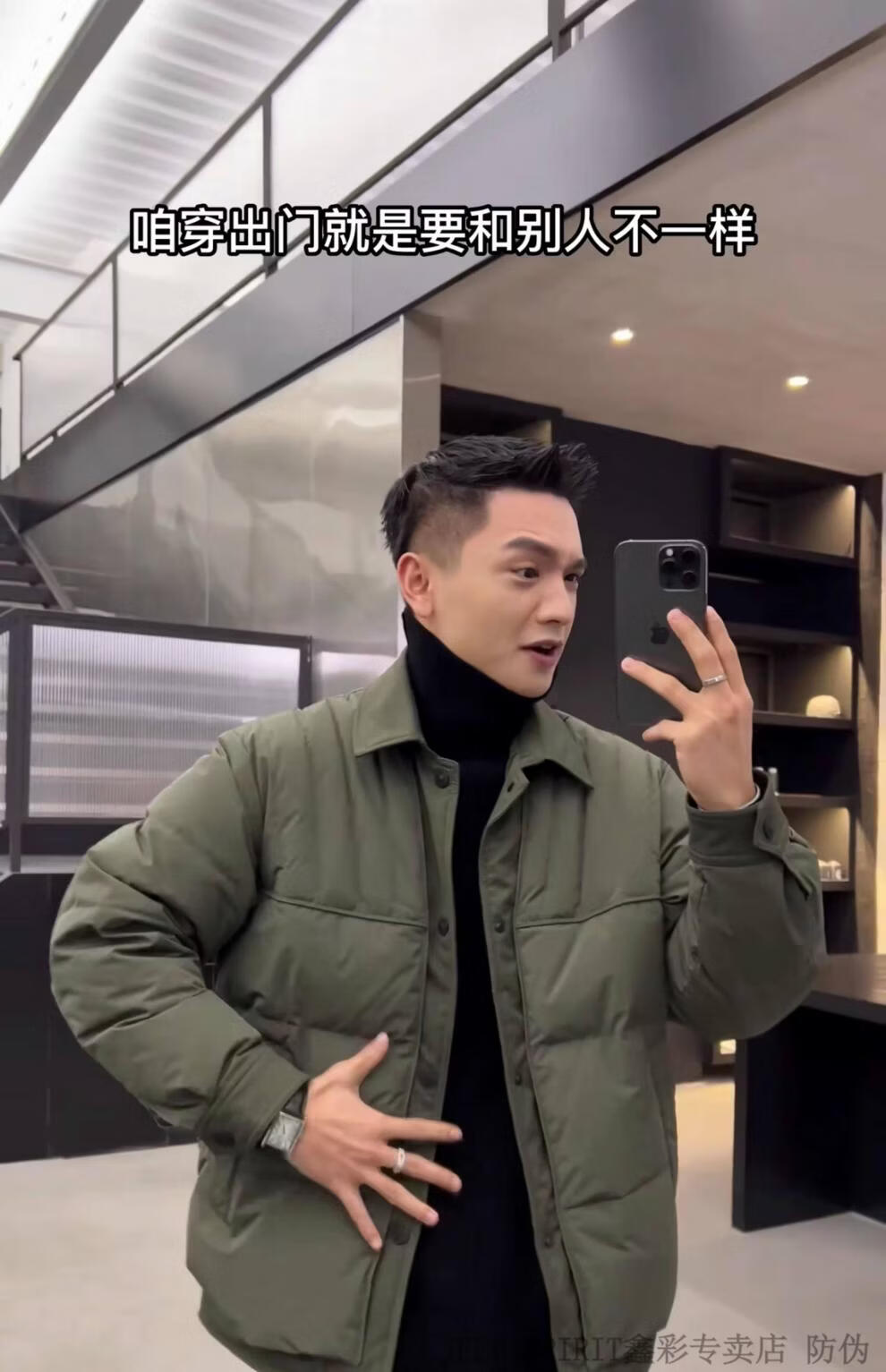 JEEP SPIRIT shirt-style light down jacket men's winter thickened warm fake two-piece down jacket handsome black and white duck down jacket military green M