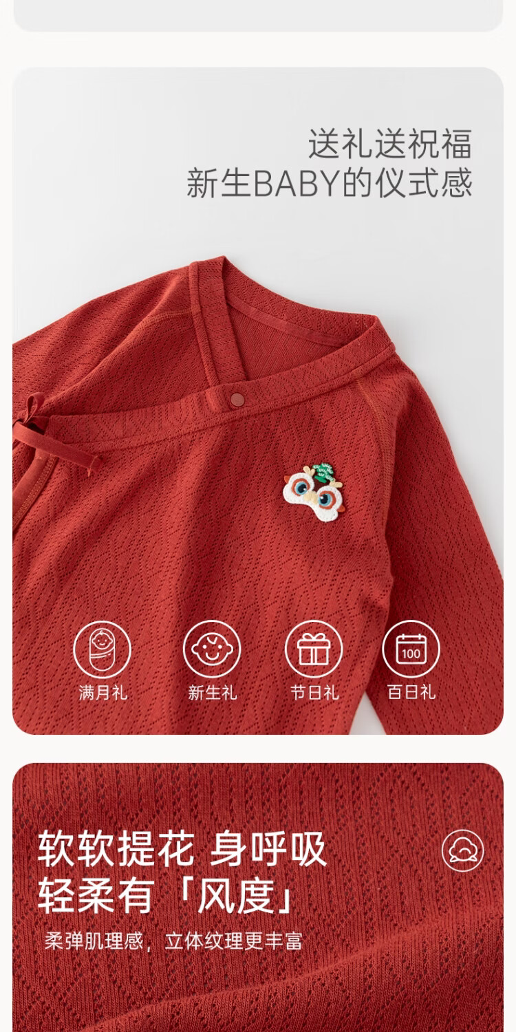 Wooden cotton newborn red festive triangle harem spring and summer baby pure cotton jumpsuit baby boneless fart cover moon night blue full moon joy 59cm