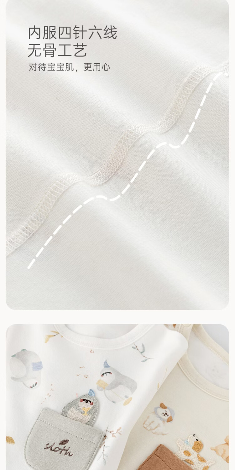 Wooden cotton baby long-sleeved jumpsuit spring and autumn baby boy and girl pure cotton boneless harem home crawling clothing pajamas spring clothing sloth baby 59cm