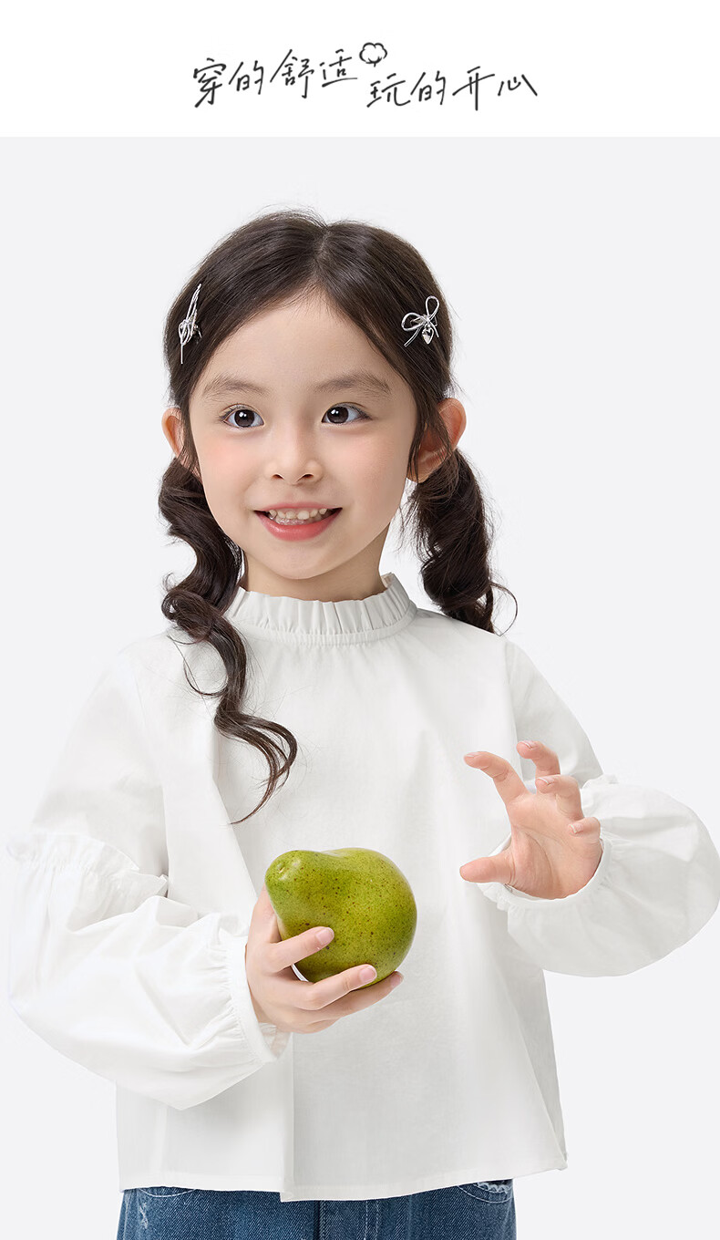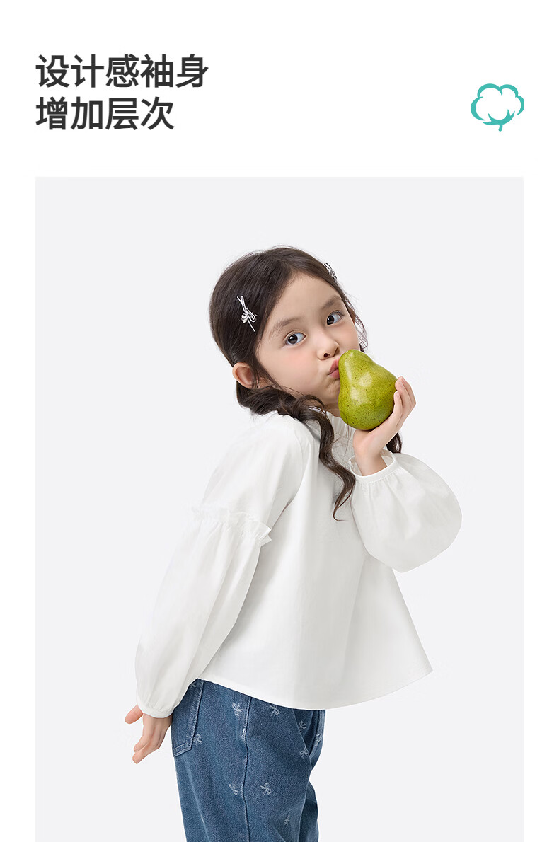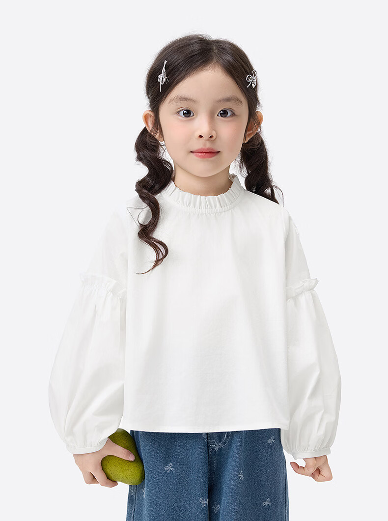 Xiaoyinman children's clothing girls pure cotton fungus shirt 26 spring fashionable sweet casual top for children and middle-aged girls off-white 105