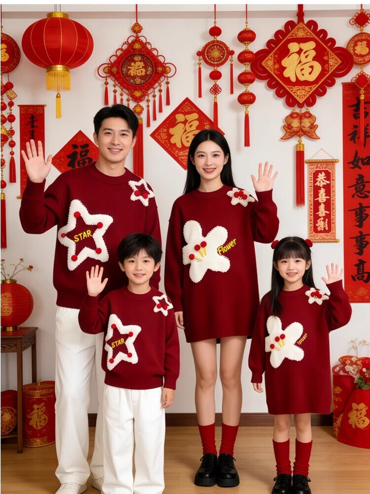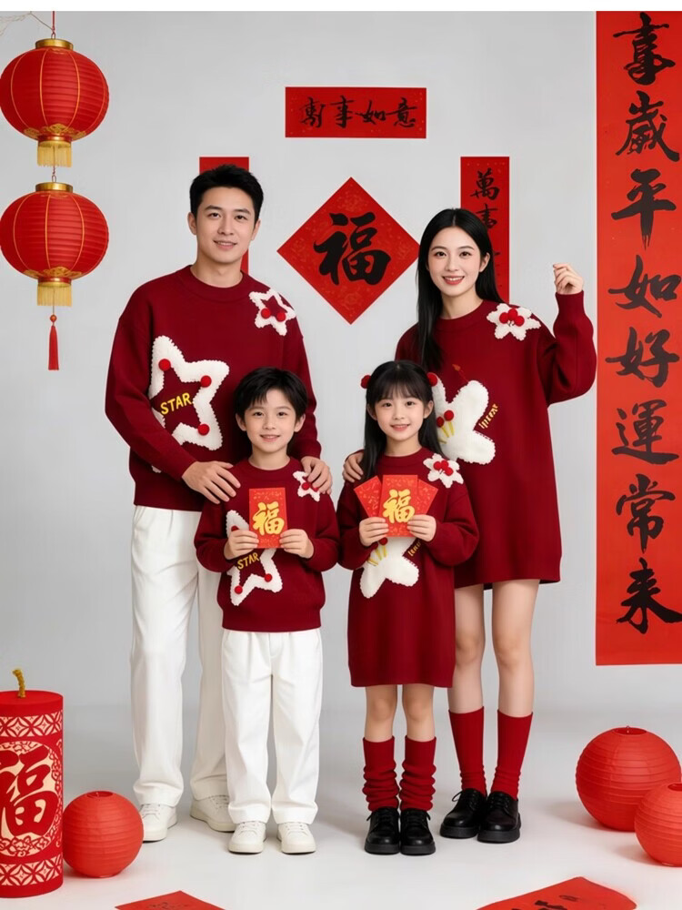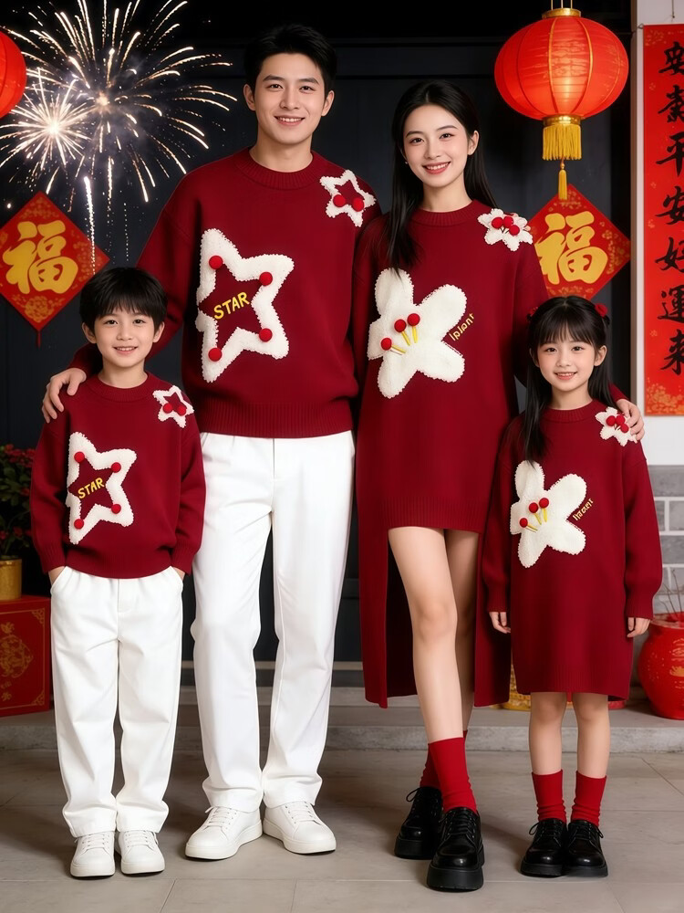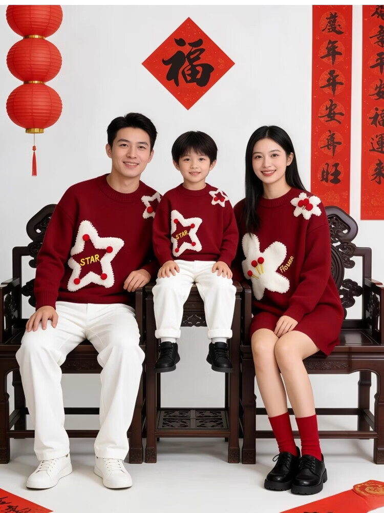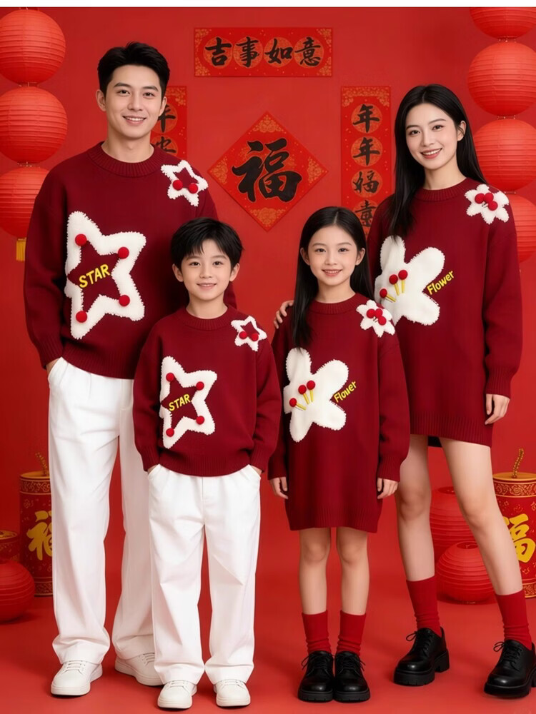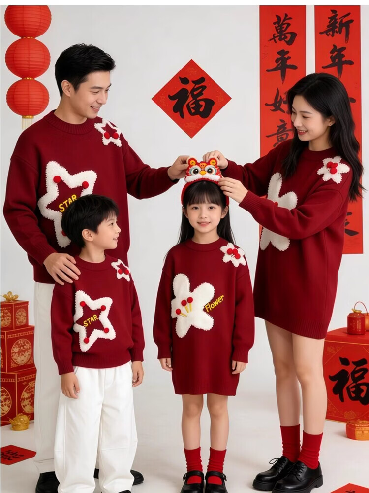 Disney (Disney) New Year parent-child clothing 2026 new New Year clothing for a family of three or four, festive family portrait and New Year red knitted sweater, red for men and women (double stars welcome good luck soon) 80 children's size 80
