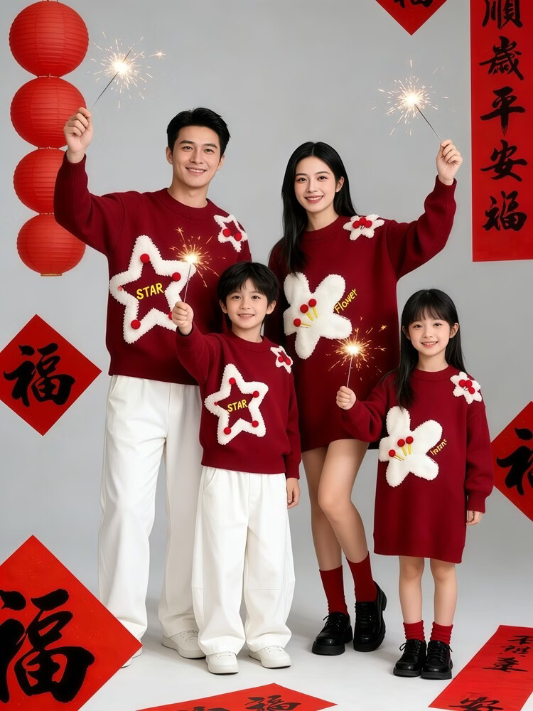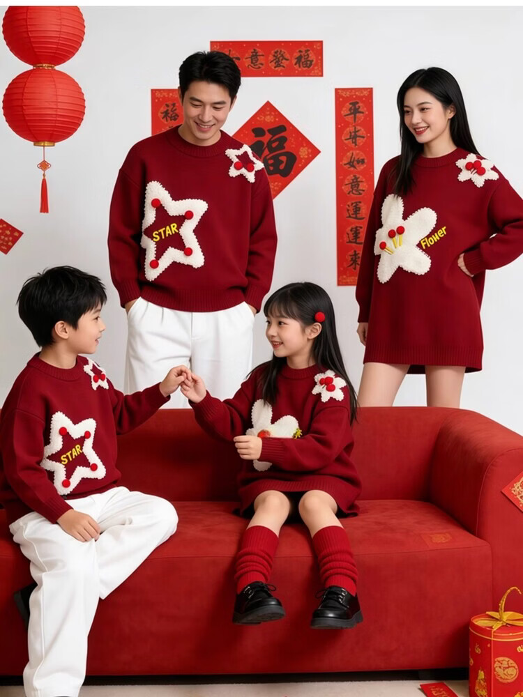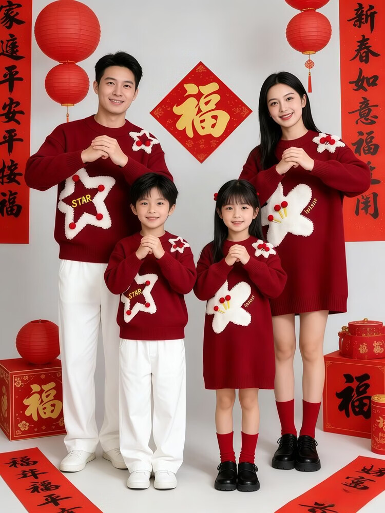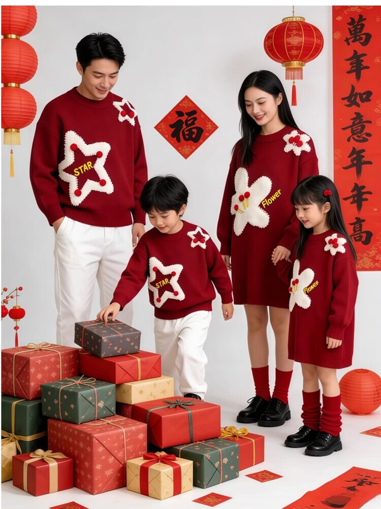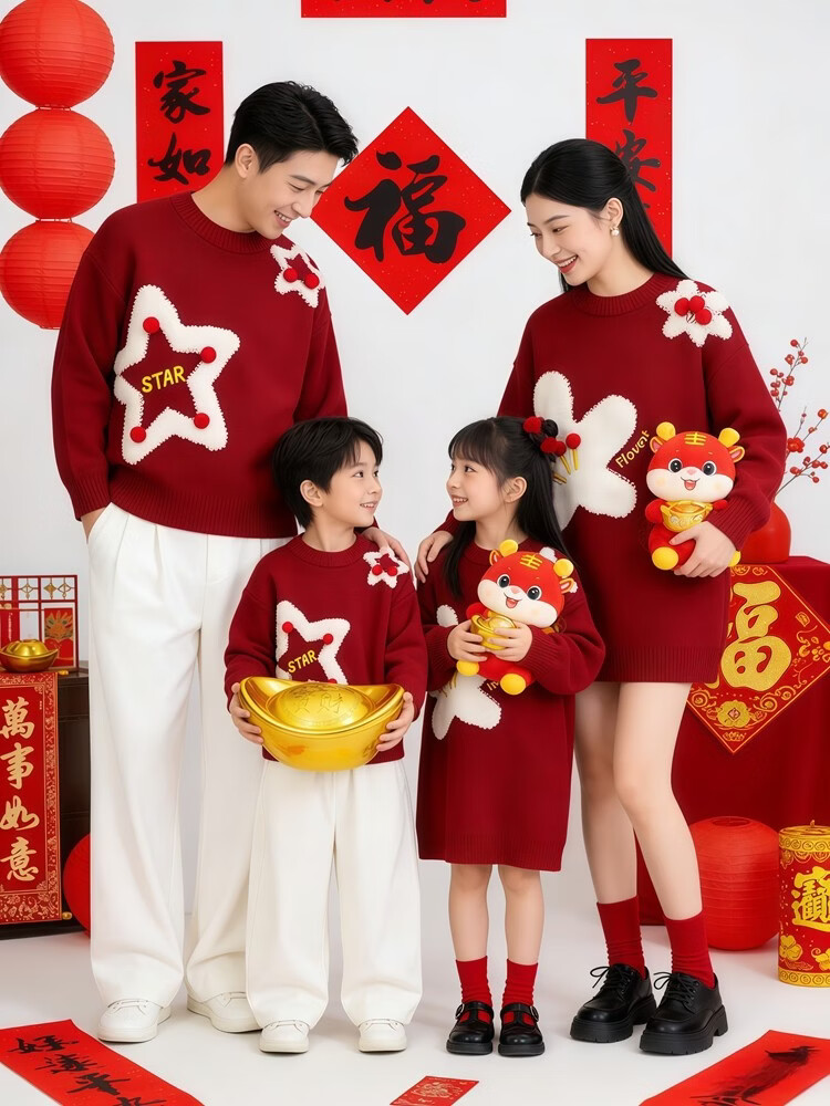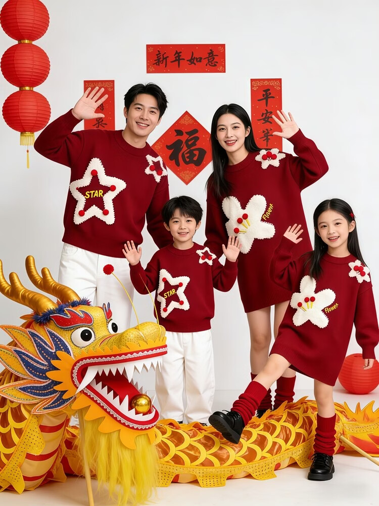 Disney (Disney) New Year parent-child clothing 2026 new New Year clothing for a family of three or four, festive family portrait and New Year red knitted sweater, red for men and women (double stars welcome good luck soon) 80 children's size 80