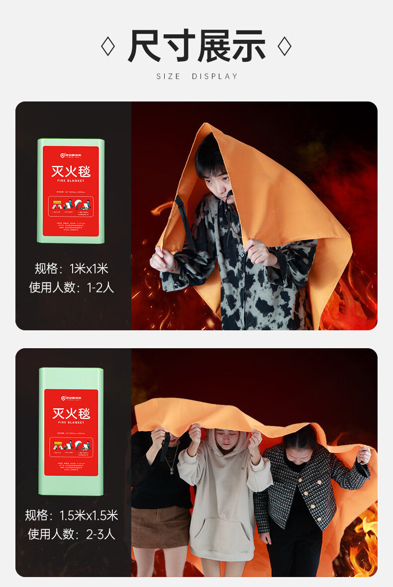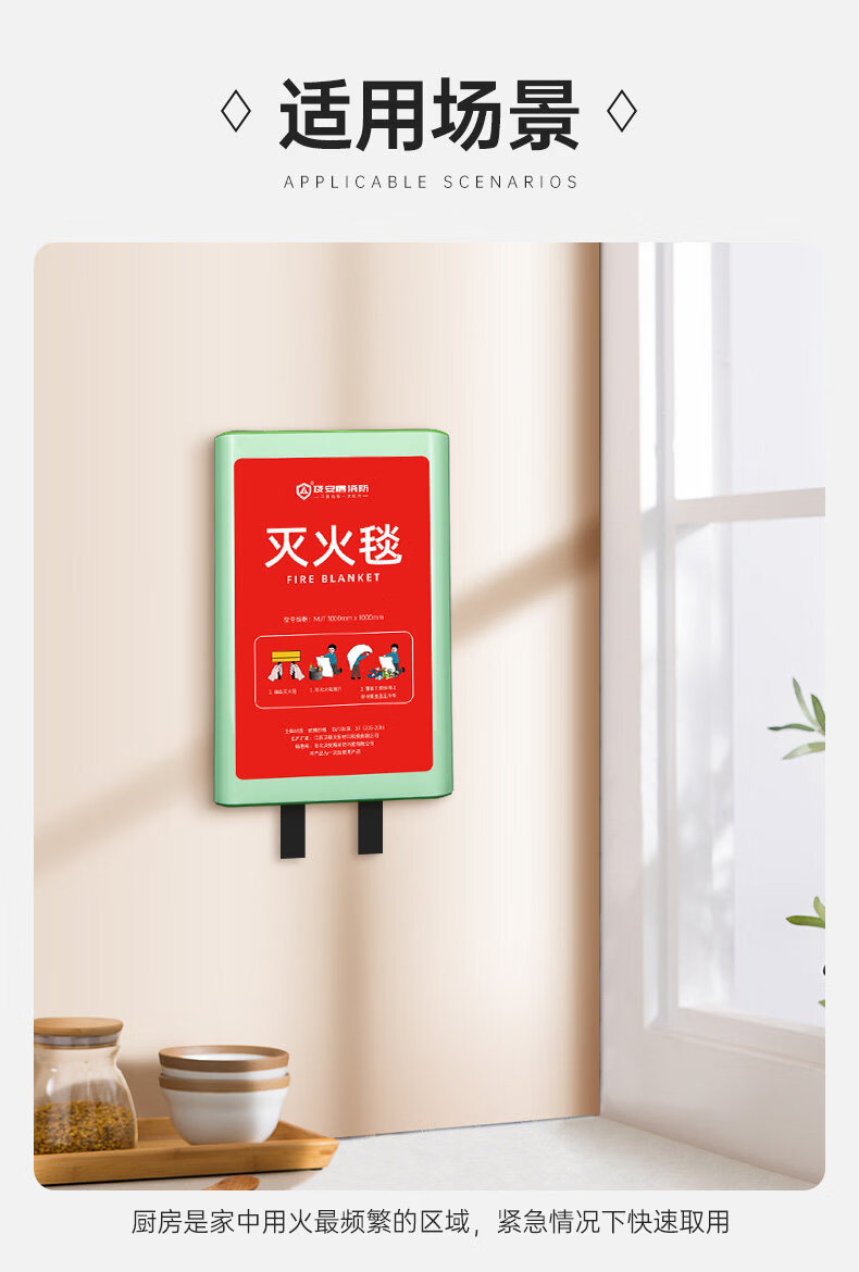 JI AN DUN new product JI AN DUN kitchen home escape multi-functional silicone nano glass fiber fire extinguishing blanket national standard 1 meter silicone coated fire extinguishing blanket - can extinguish initial fires_can be worn on the body for escape