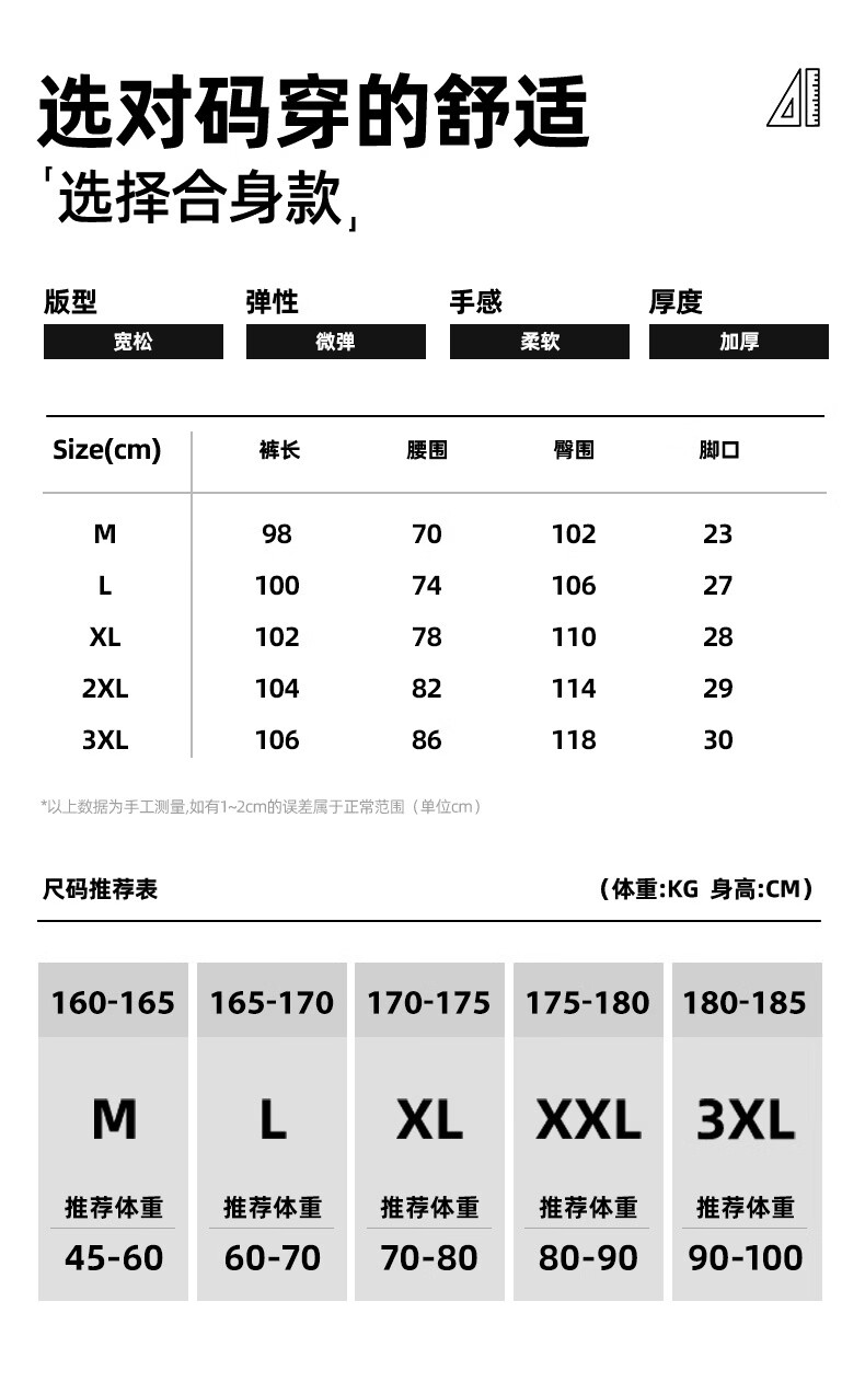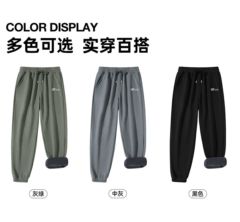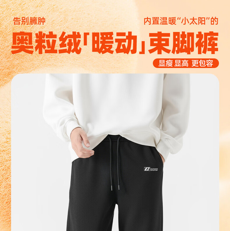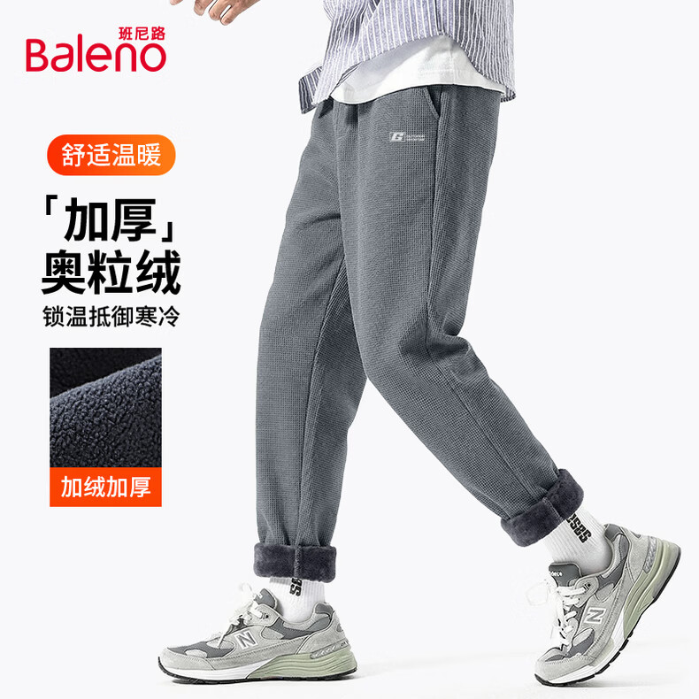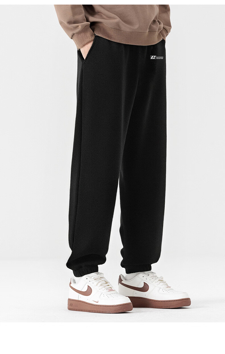 Baleno velvet leggings men's autumn and winter warm thickening loose casual pants trendy versatile commuting and outdoor comfortable trousers Austrian fleece - black #JPBG white frame 2XL