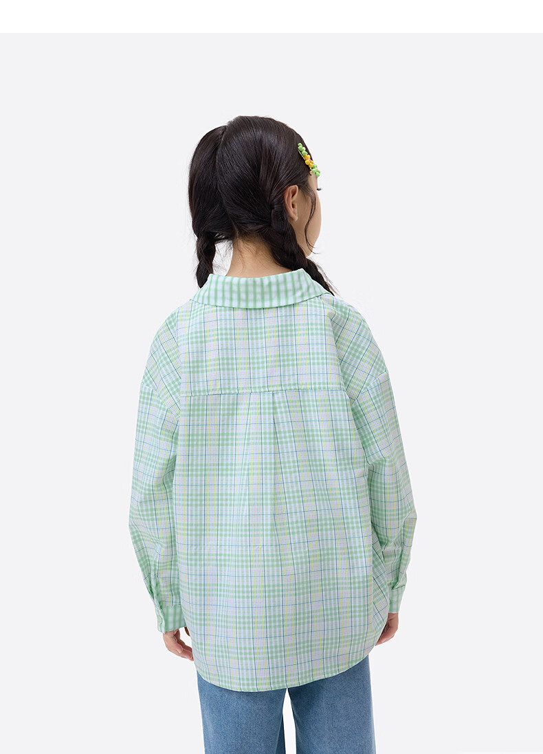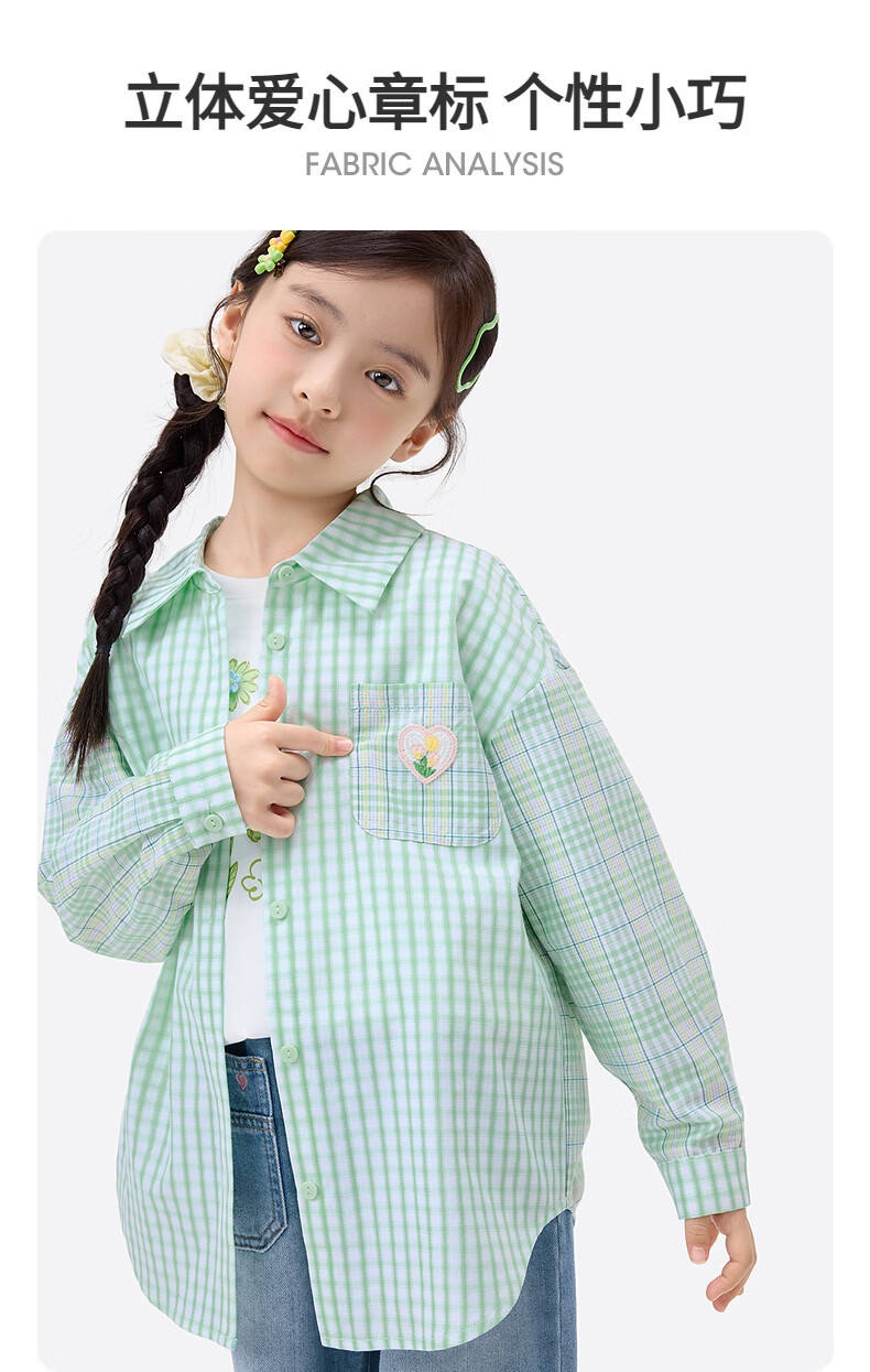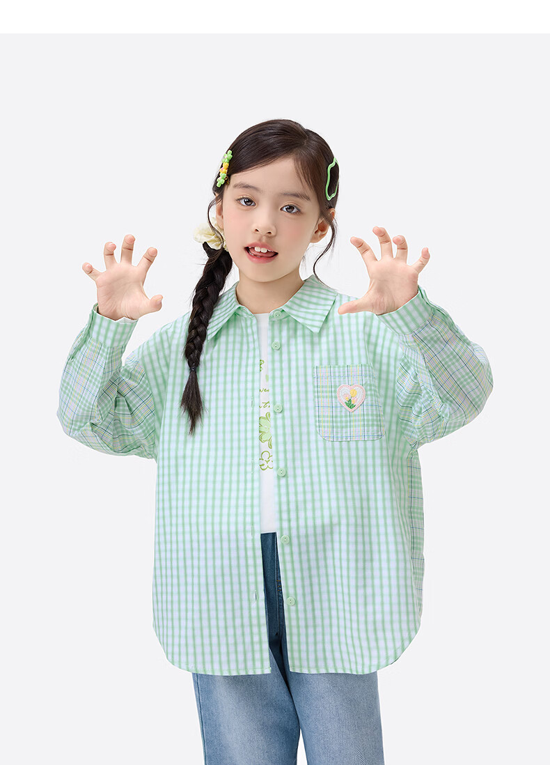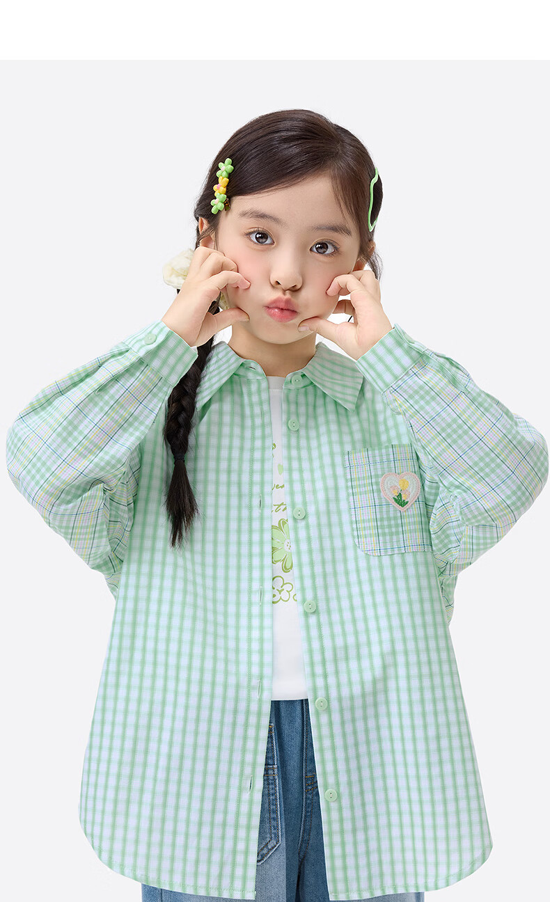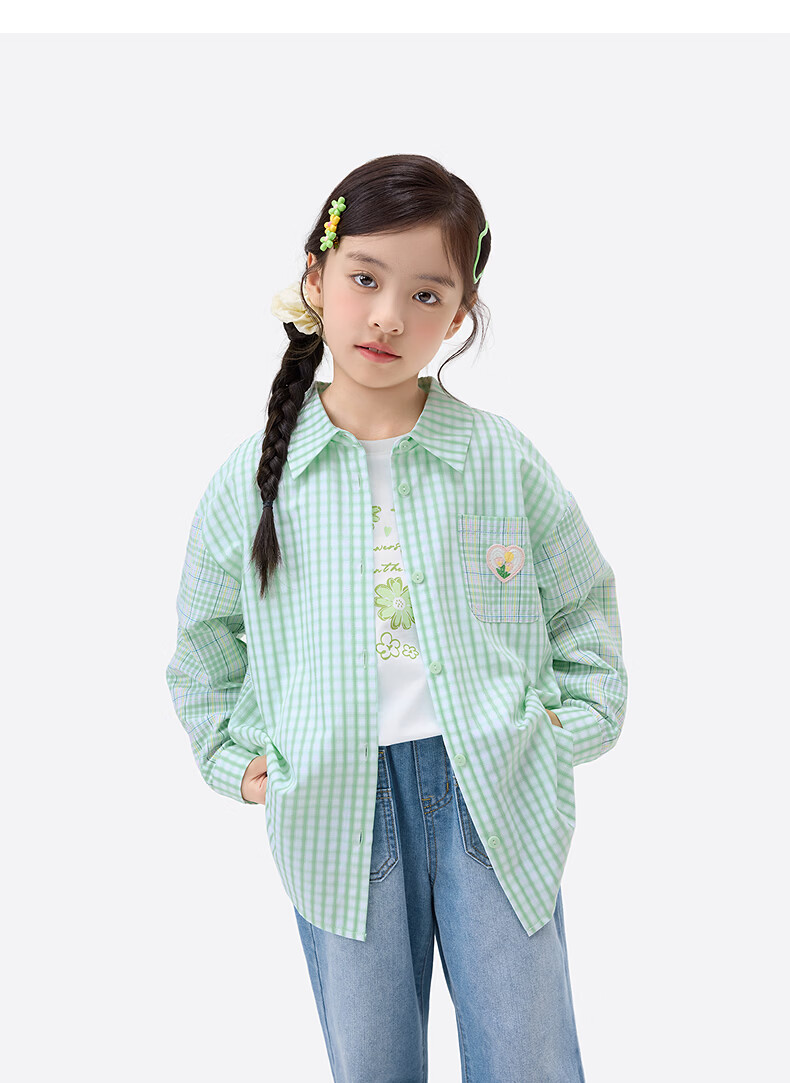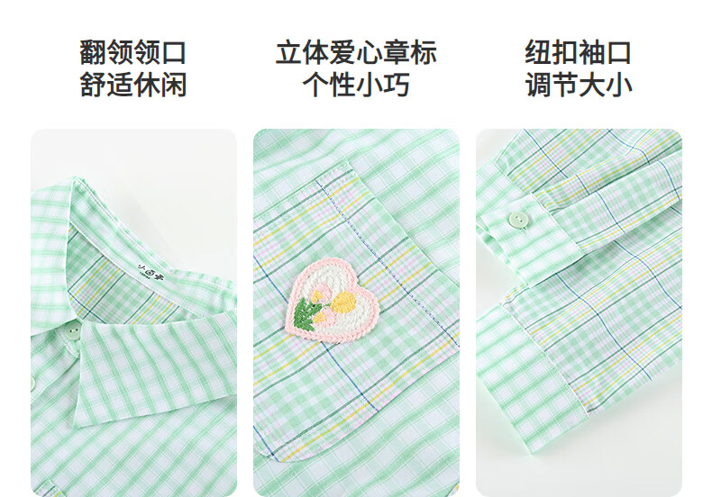 Xiaoyinman children's clothing girls plaid shirt love mark 26 spring fashion lapel top for older children and girls green plaid 160