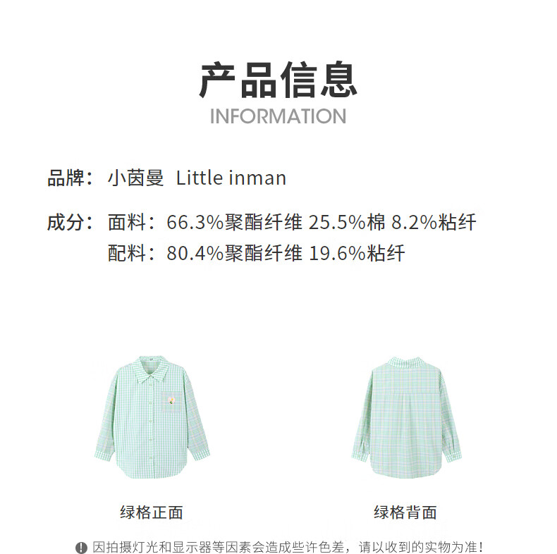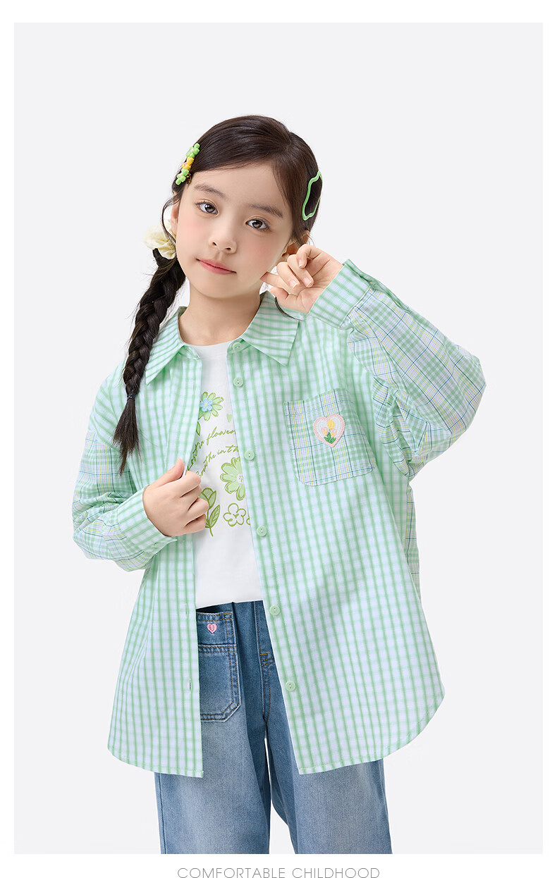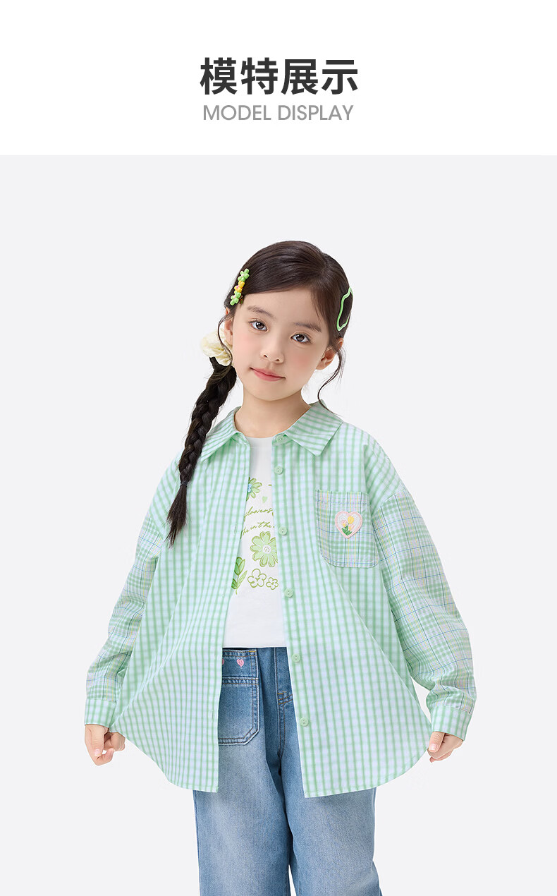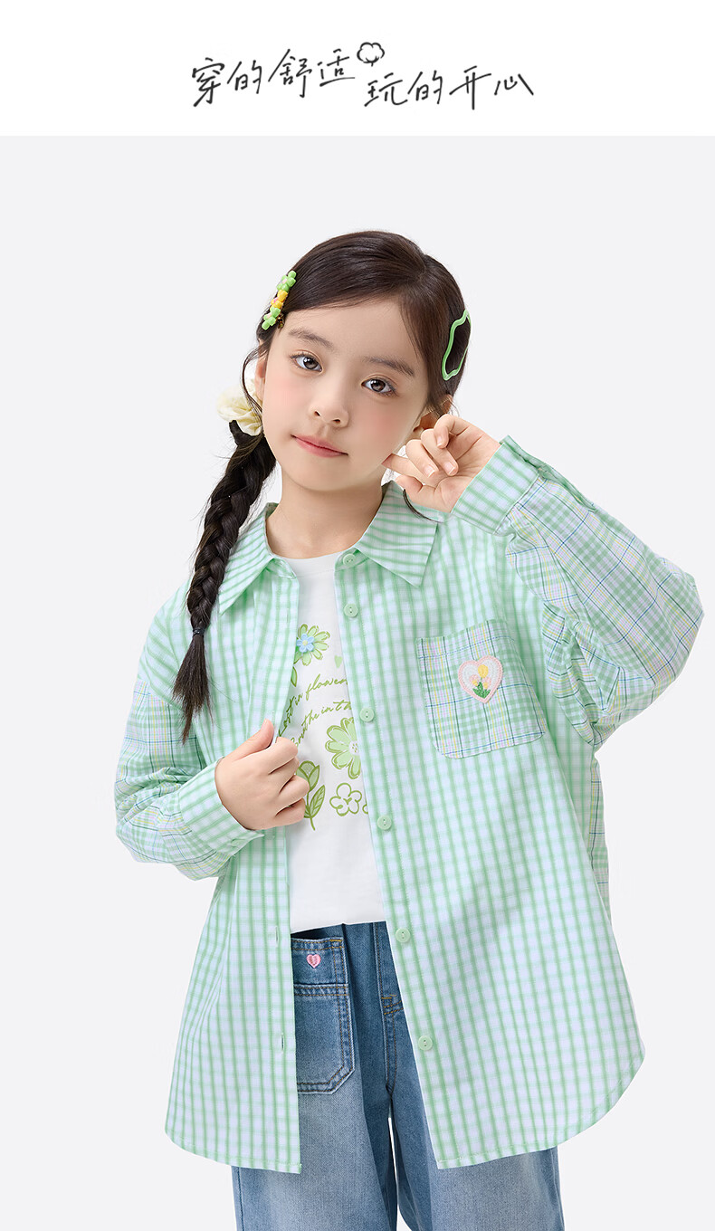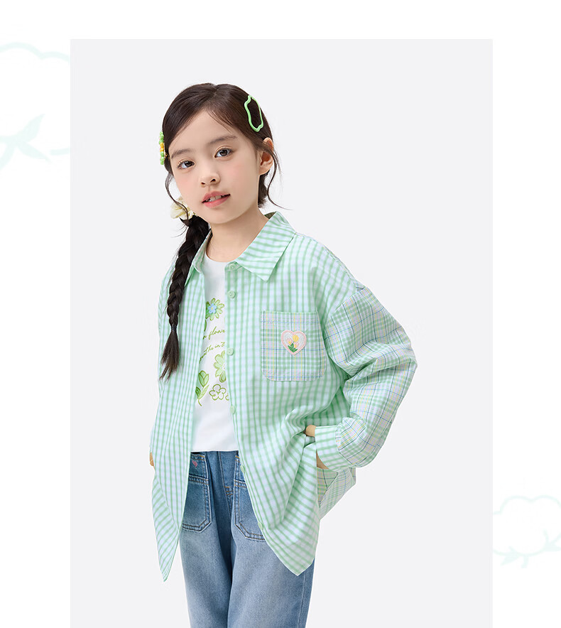 Xiaoyinman children's clothing girls plaid shirt love mark 26 spring fashion lapel top for older children and girls green plaid 160