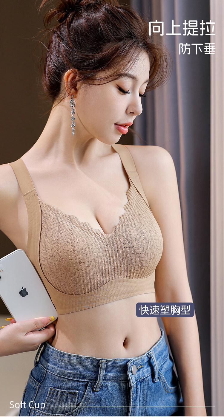 Vankelon Expanded Bra Women's Small Breast Gathering Bra Seamless Breast Reduction Anti-Sagging Fixed Cup Bra 3-piece Sakura Pink Three-piece Set Full Cup Support XL Recommended 120-135 Jin Jin equals 0.5 kg