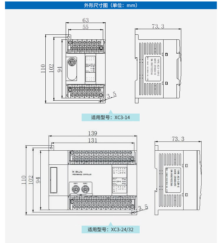 Brand new original Xinjie PLC XC3-14R/14T/14RT-E 24R/24T/24RT 32R/32T/ XC3-14T-E