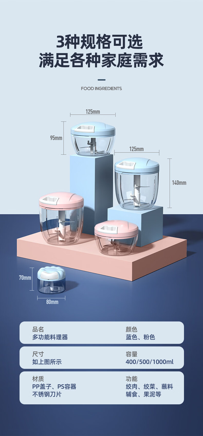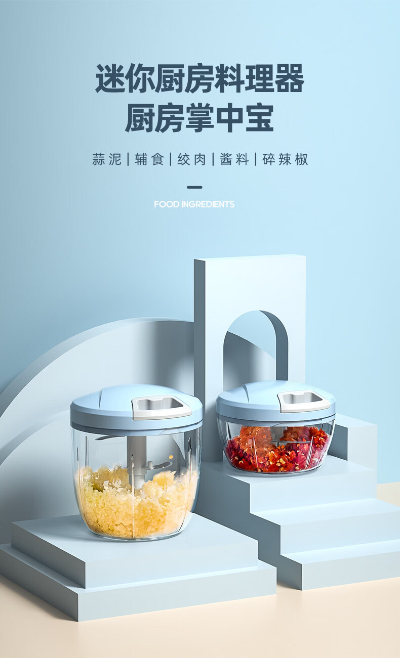 JCZS German quality garlic artifact, garlic, garlic, garlic, garlic, garlic, garlic, garlic, garlic, manual garlic grinder, small blue size 500ML 3 blades/500ML suitable for 1~