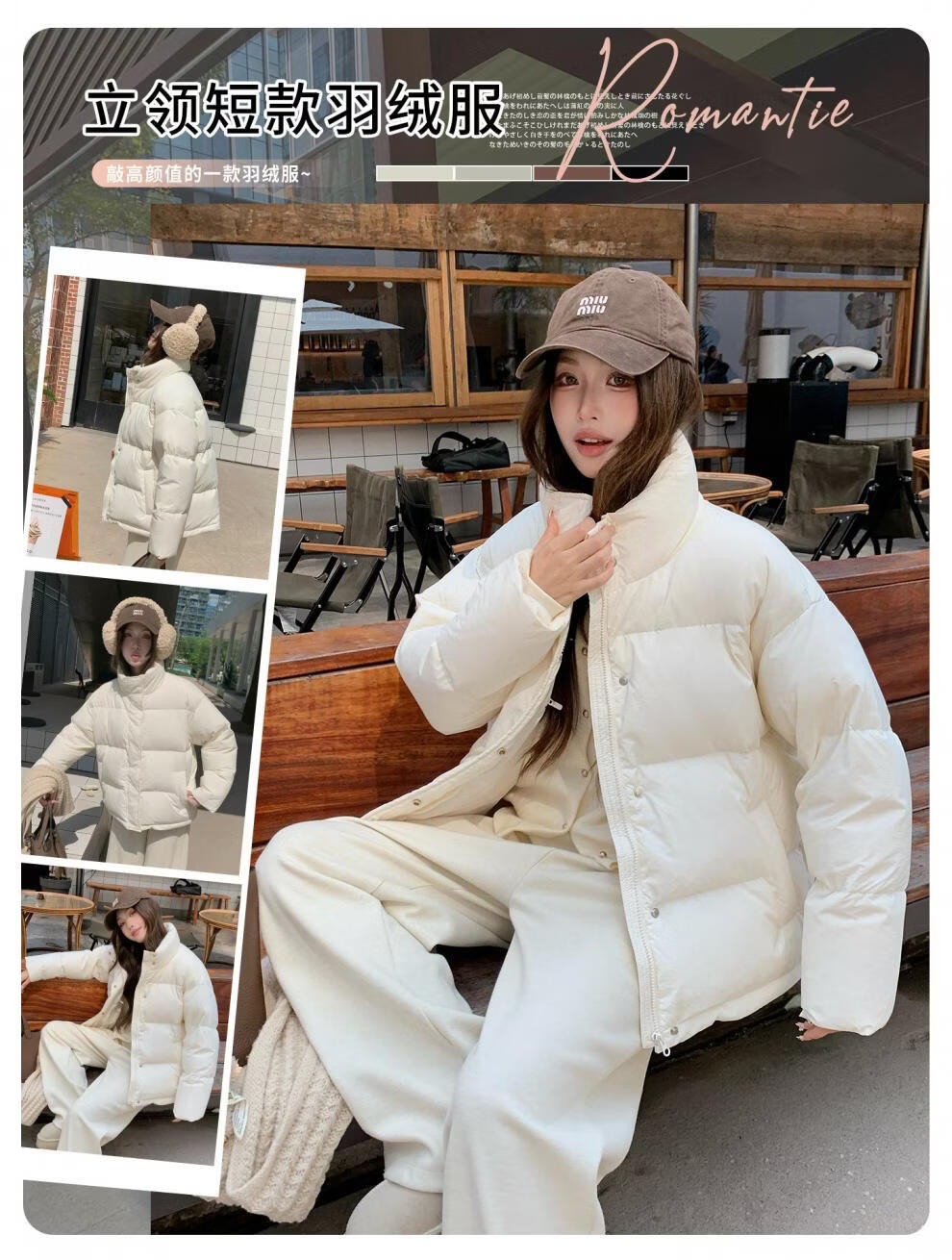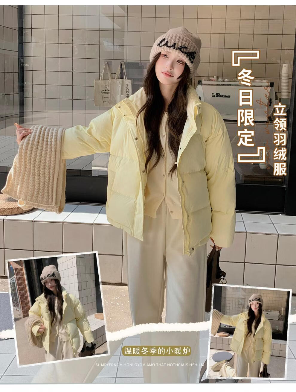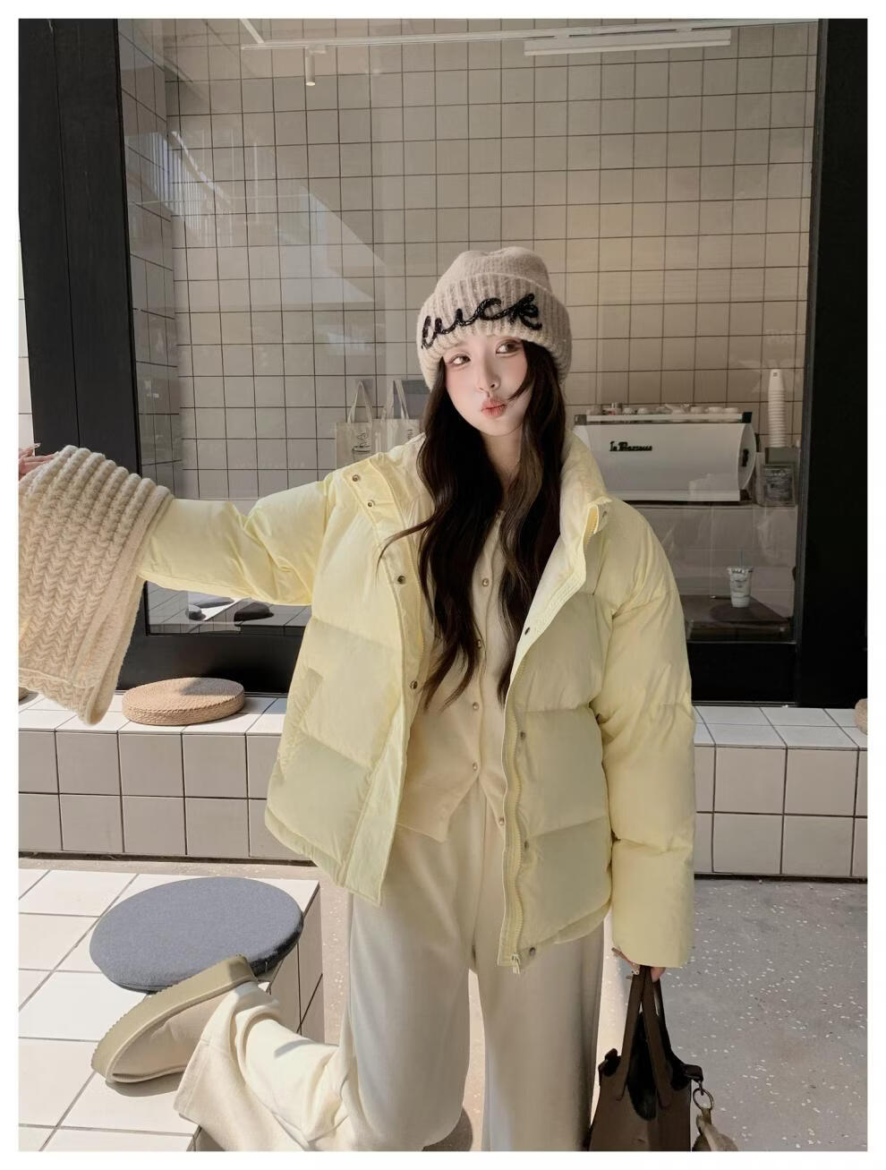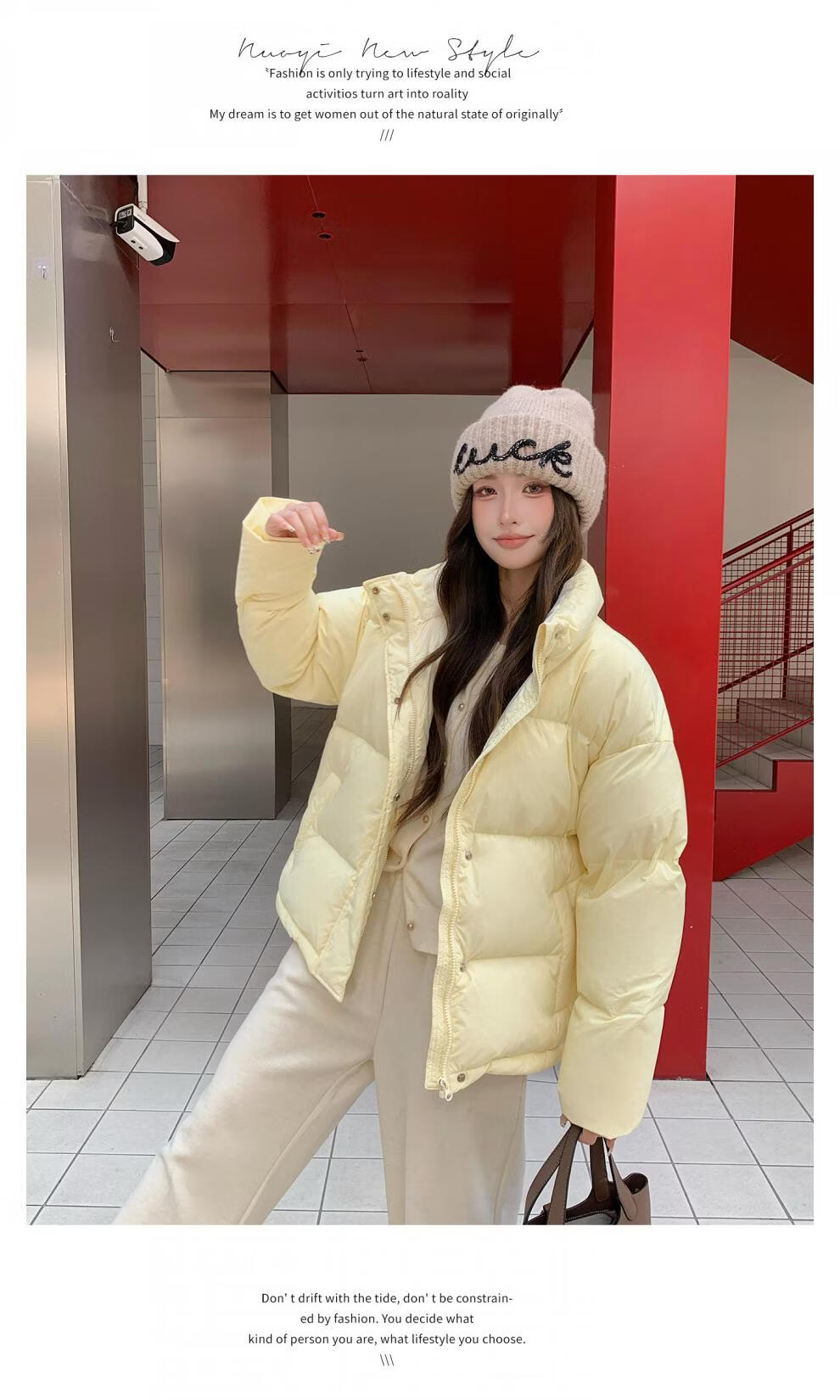 Bolison international first-line brand 2025 new down jacket women's short style small 95 white duck down thickened warm stand collar vanilla custard XS