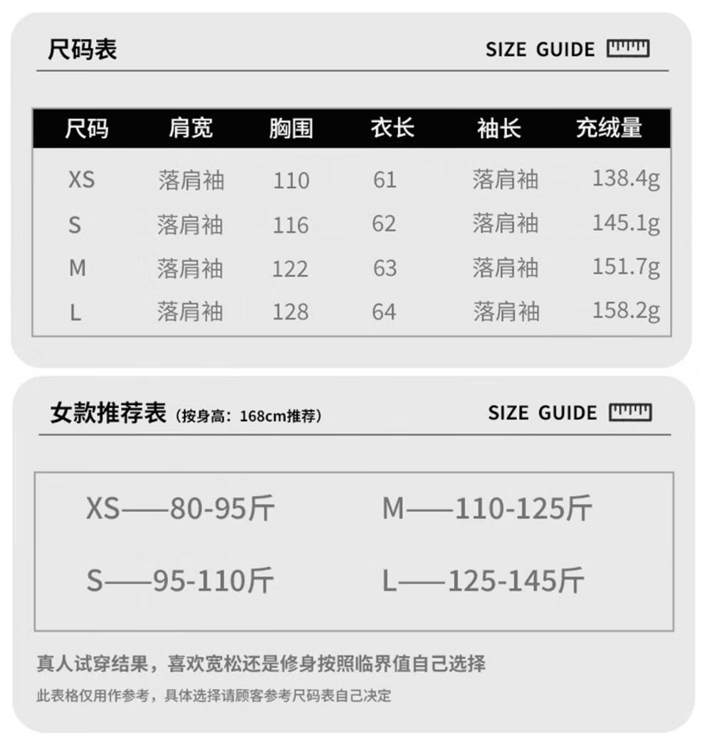 China (cm) 160-165/84-86 165-170 / 88-90 167-172 / 92-96 168-173 / 98-102 170-176 / 106-110