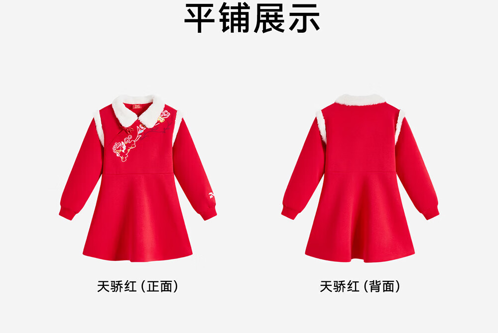 Anta children's dress for girls 26th Spring Festival New Year style red trendy comfortable and skin-friendly skirt 362619303 Tianjiao Red 130