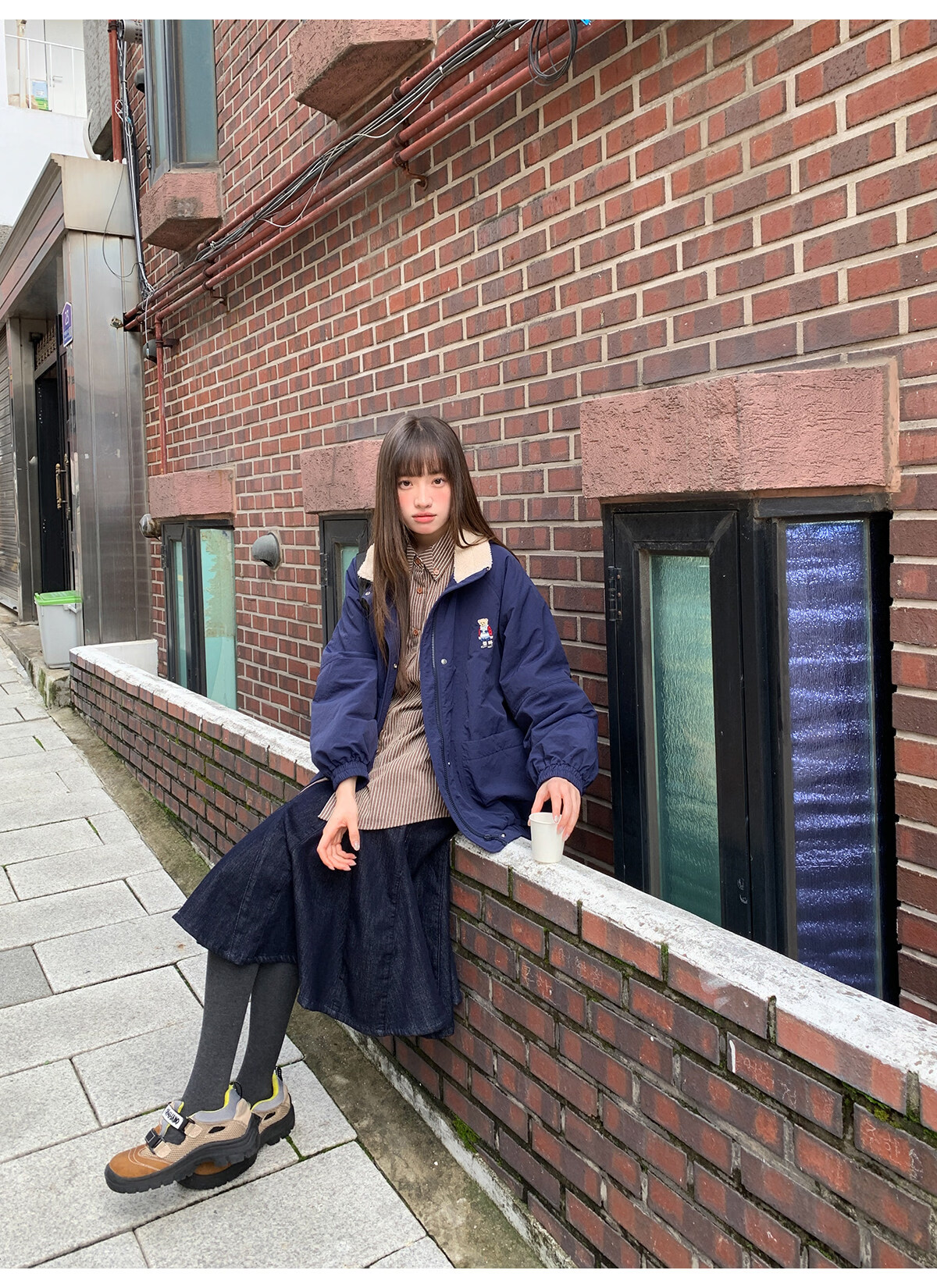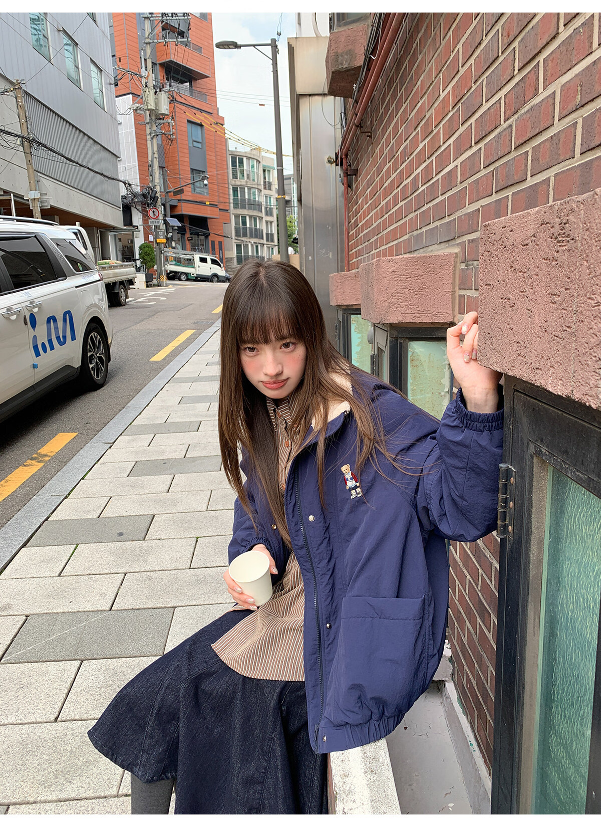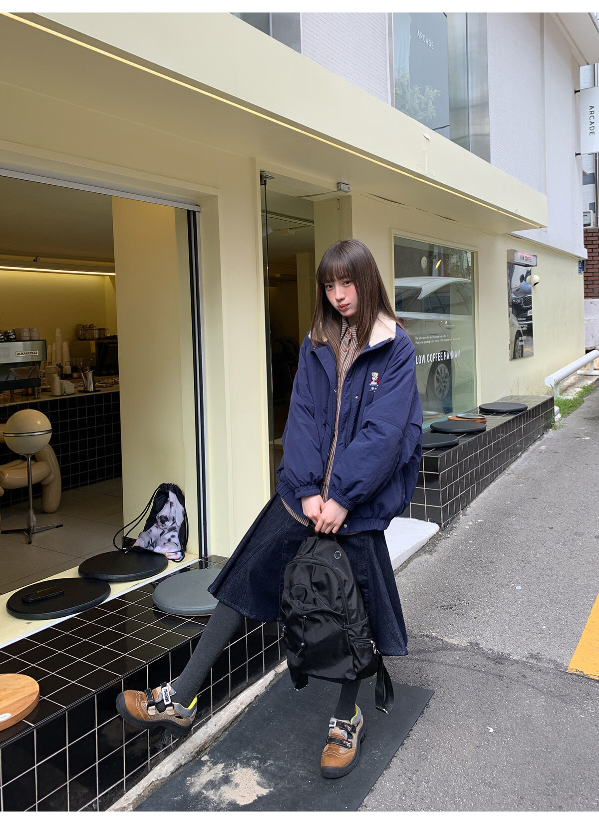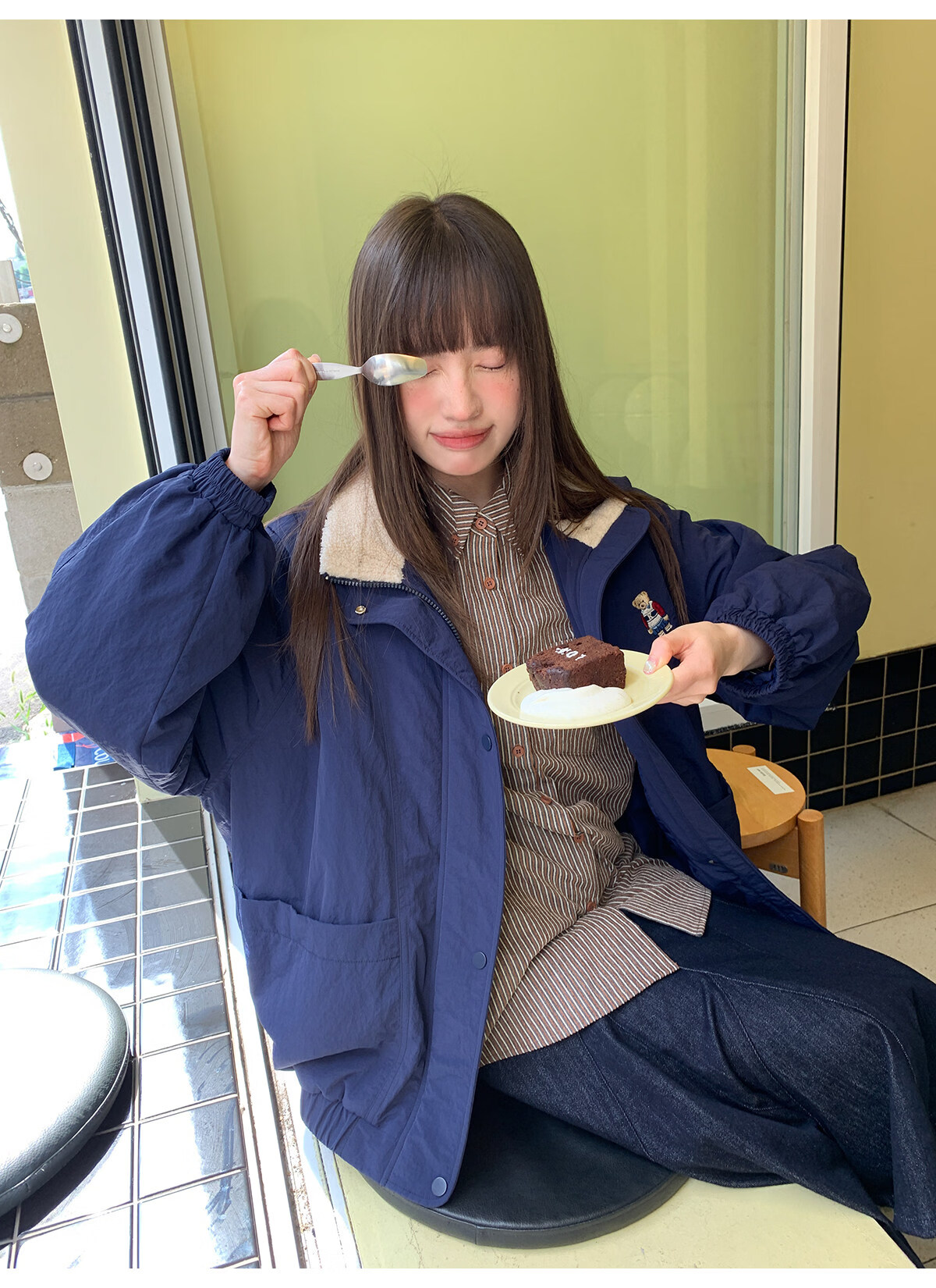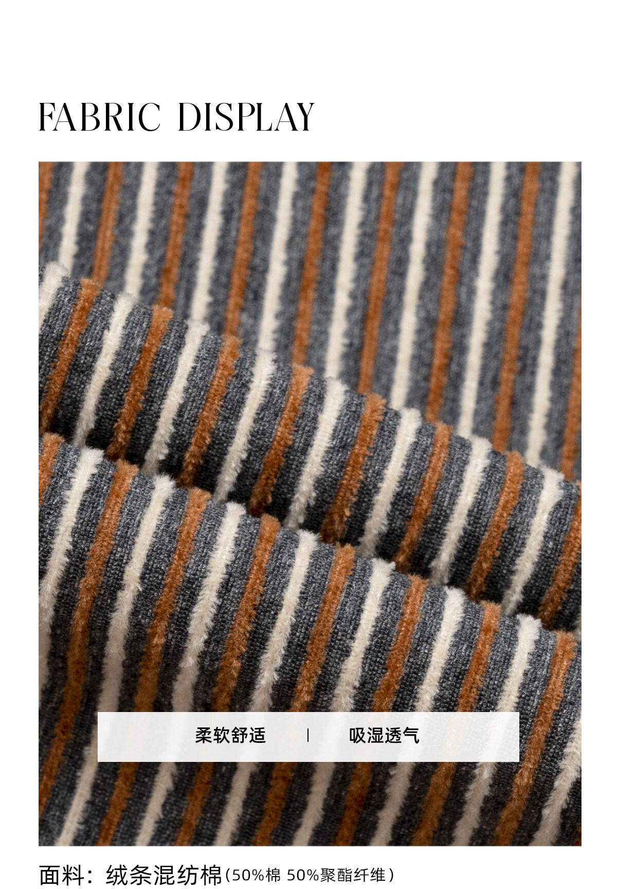 Hello Canon Striped texture design lapel shirt women's autumn and winter 202 new retro Korean style casual shirt brown XS