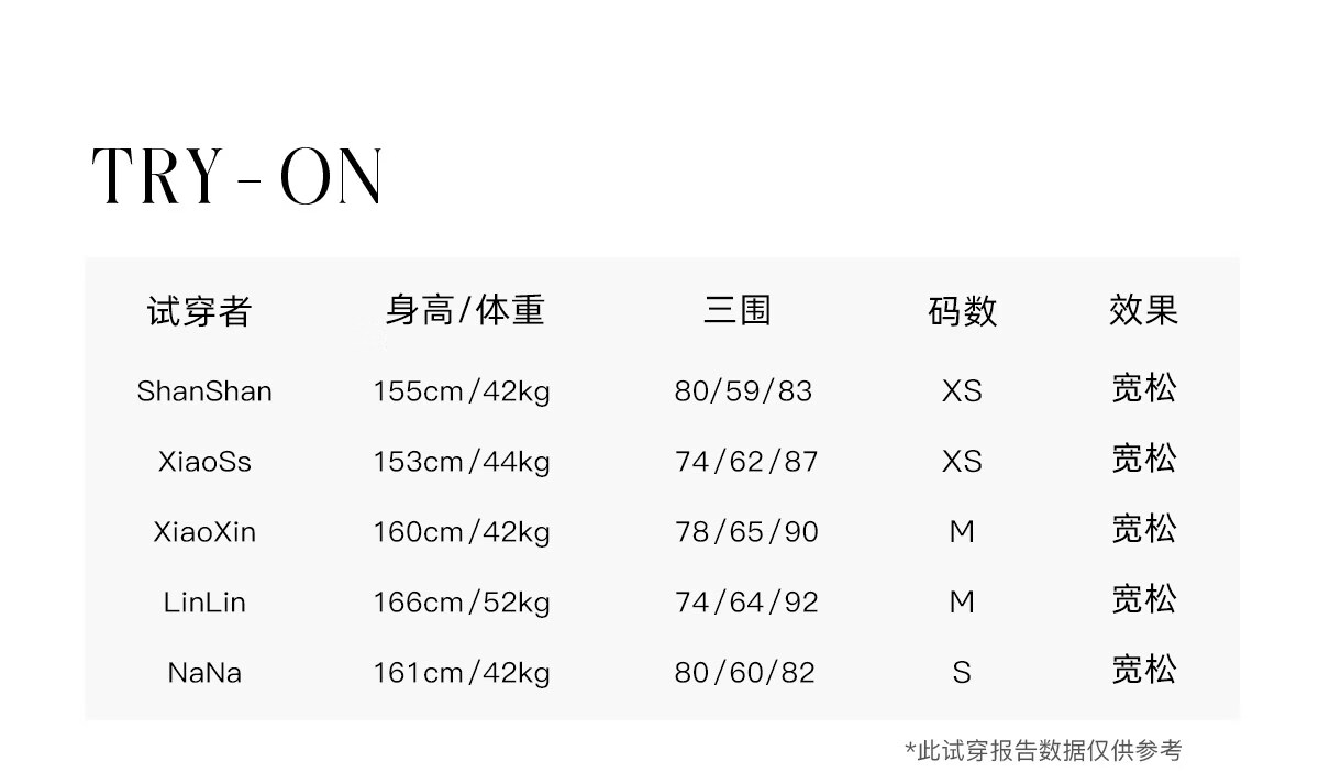 China (cm) 160-165/84-86 165-170 / 88-90 167-172 / 92-96 168-173 / 98-102 170-176 / 106-110