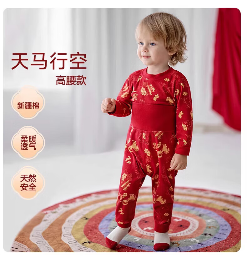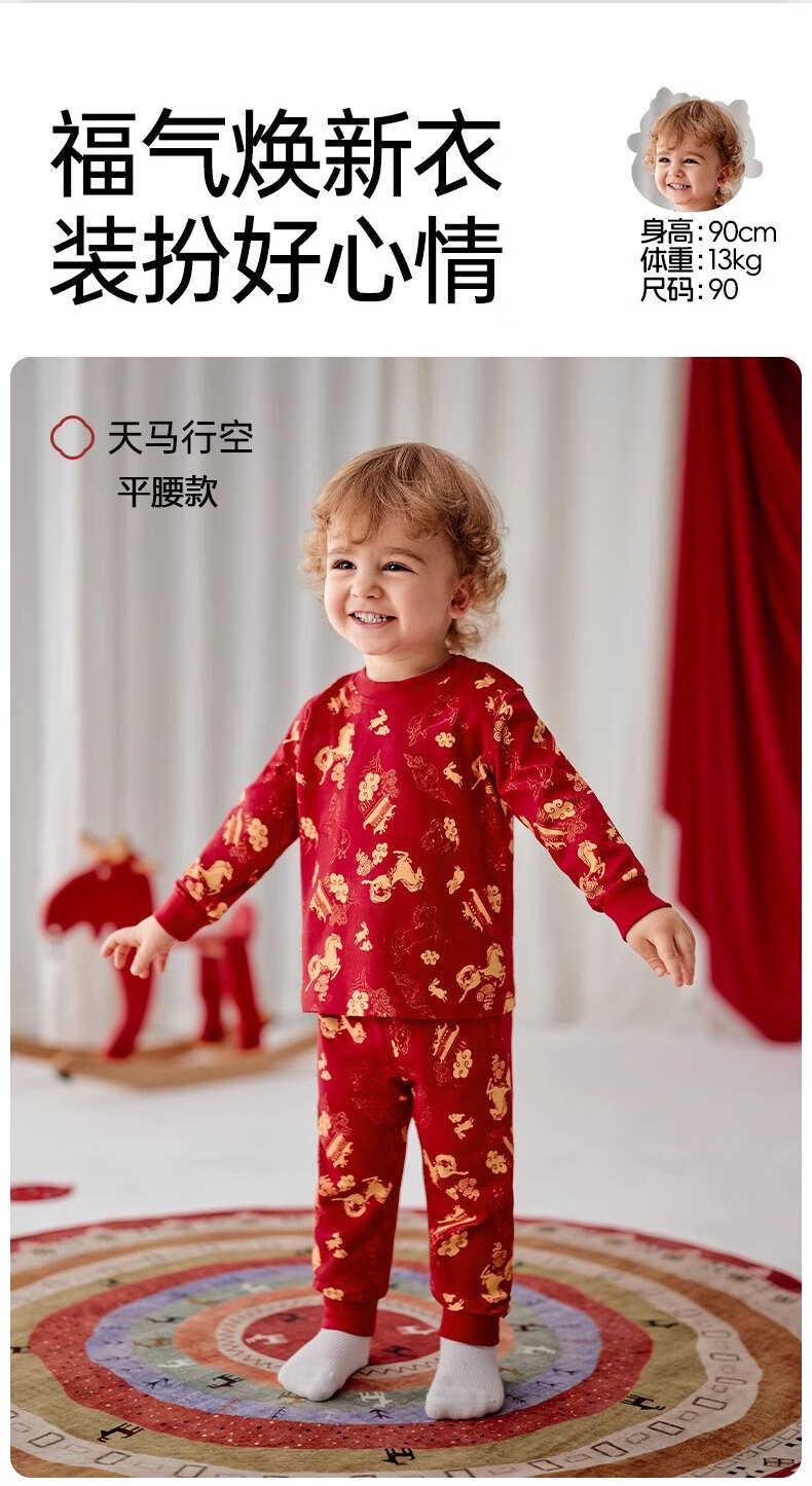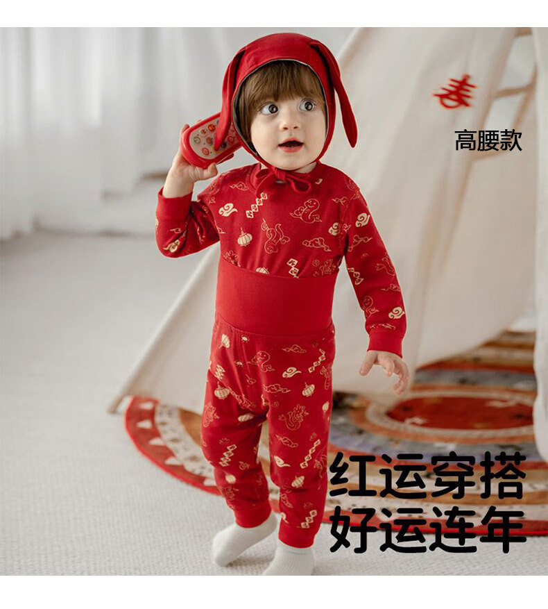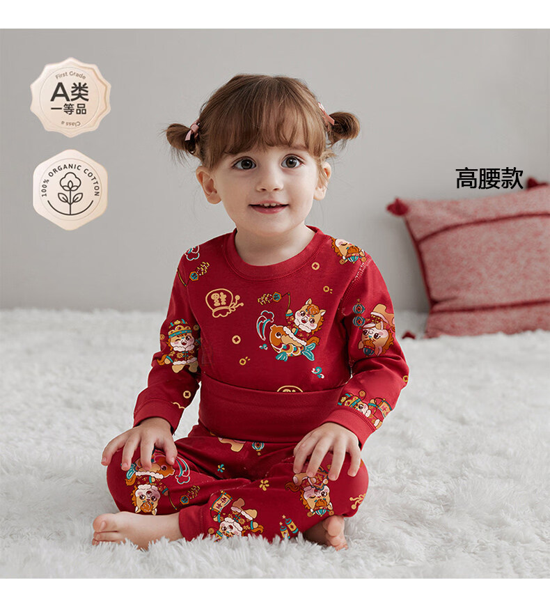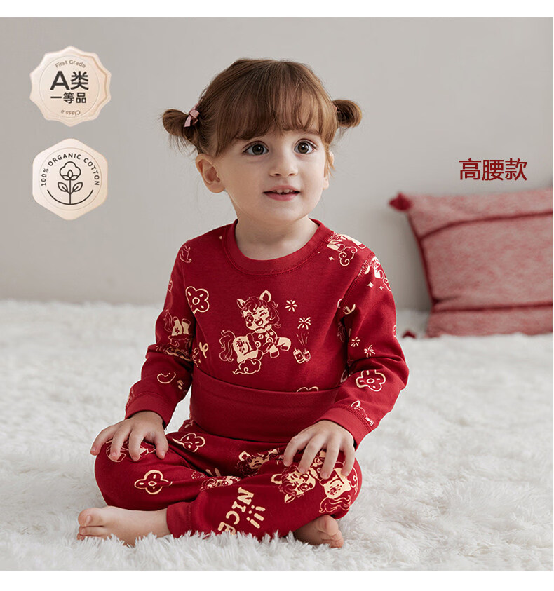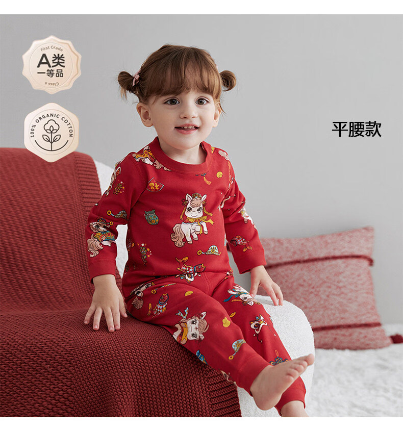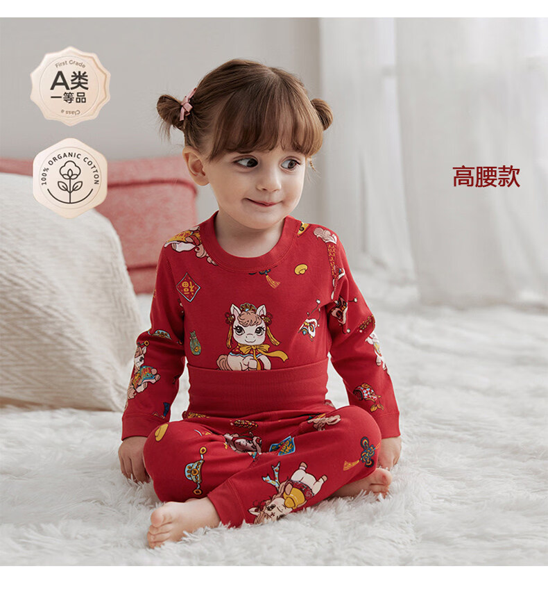 Modal boneless high-waisted children's Year of the Horse underwear, pure cotton, Lunar New Year, Autumn and Winter, New Year's baby autumn clothes and long johns set, red pajamas, high-waisted - Cute Baoli Ma 90, recommended age 1-2 years old cm