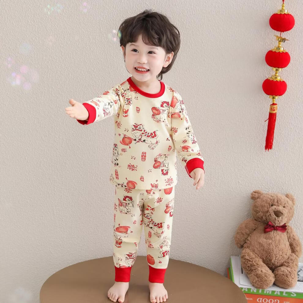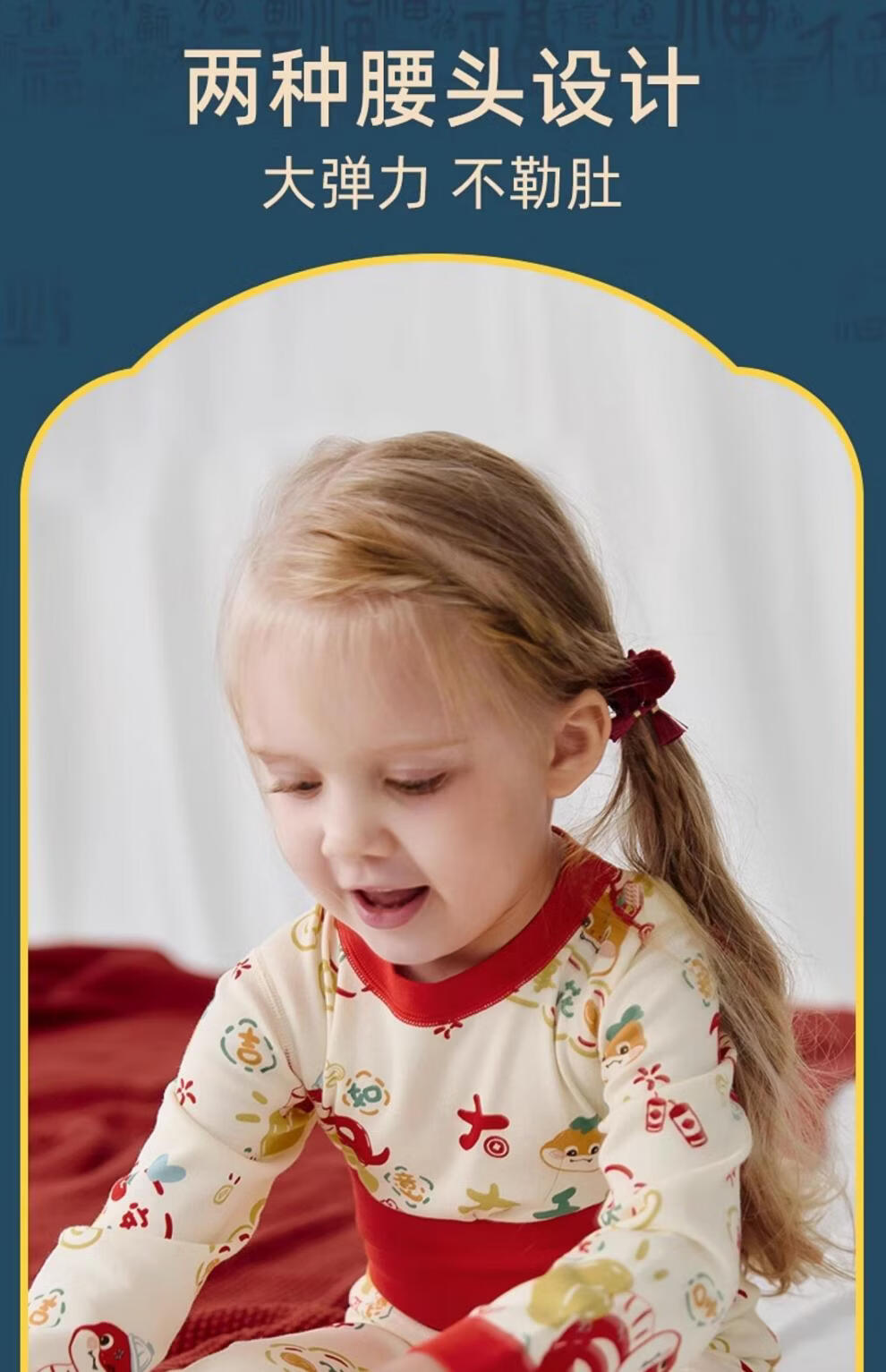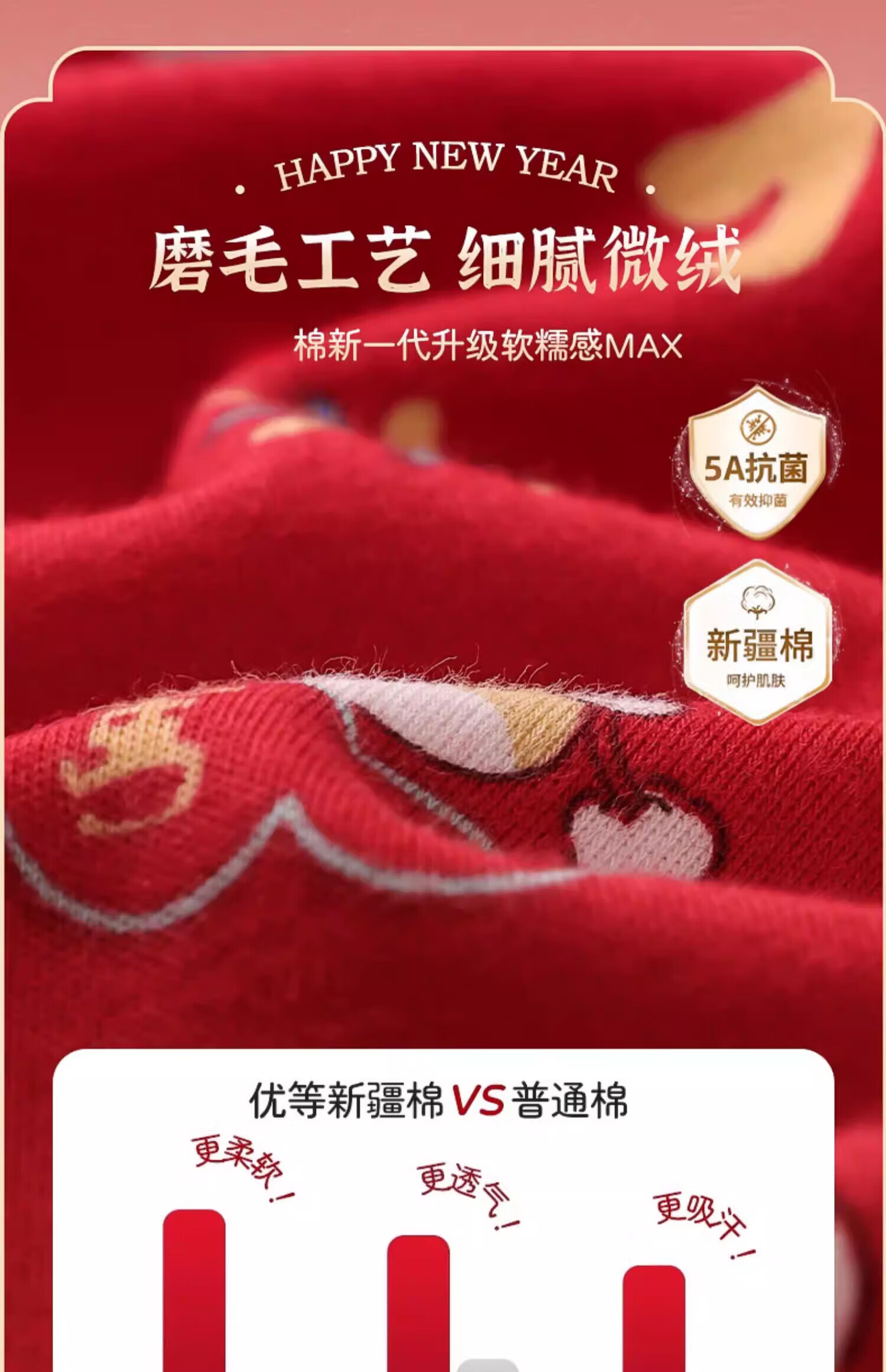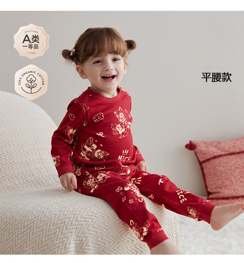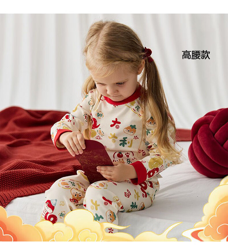 Modal boneless high-waisted children's Year of the Horse underwear, pure cotton, Lunar New Year, Autumn and Winter, New Year's baby autumn clothes and long johns set, red pajamas, high-waisted - Cute Baoli Ma 90, recommended age 1-2 years old cm