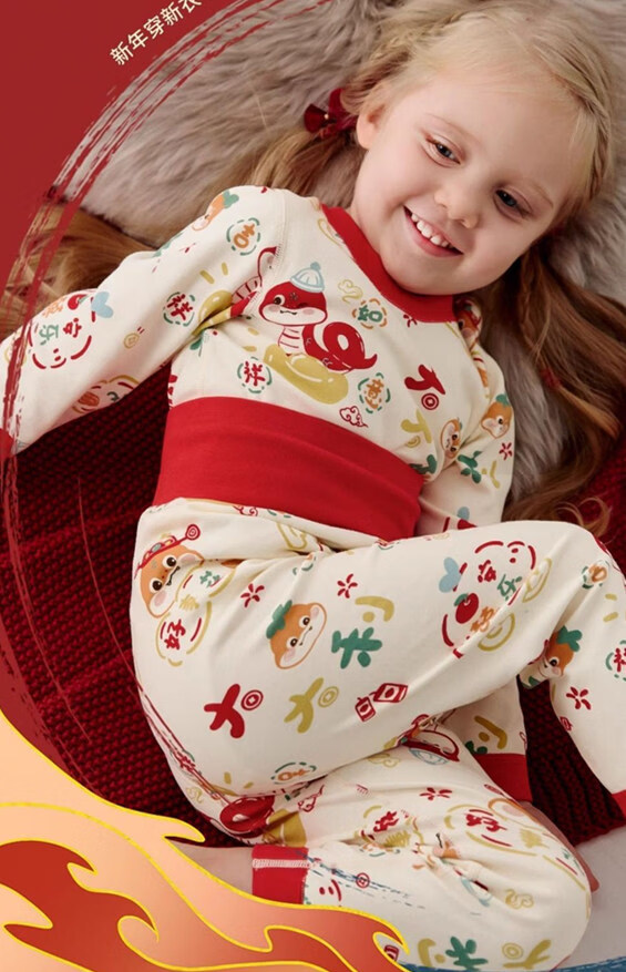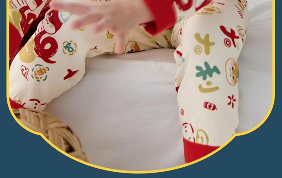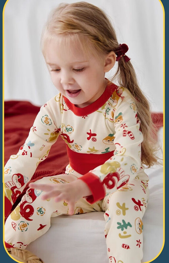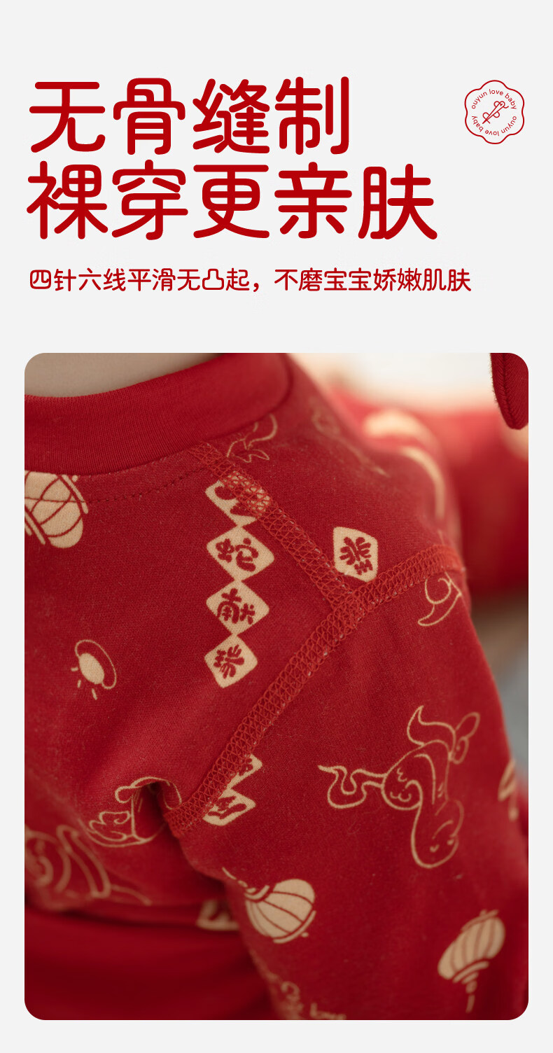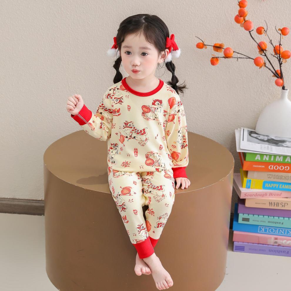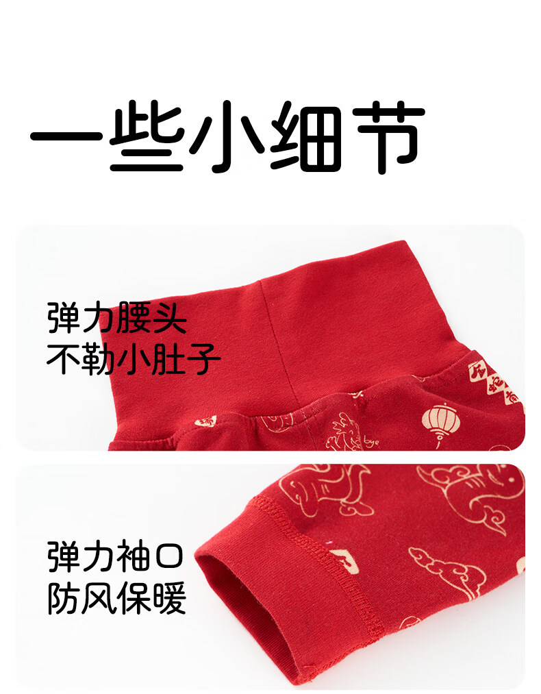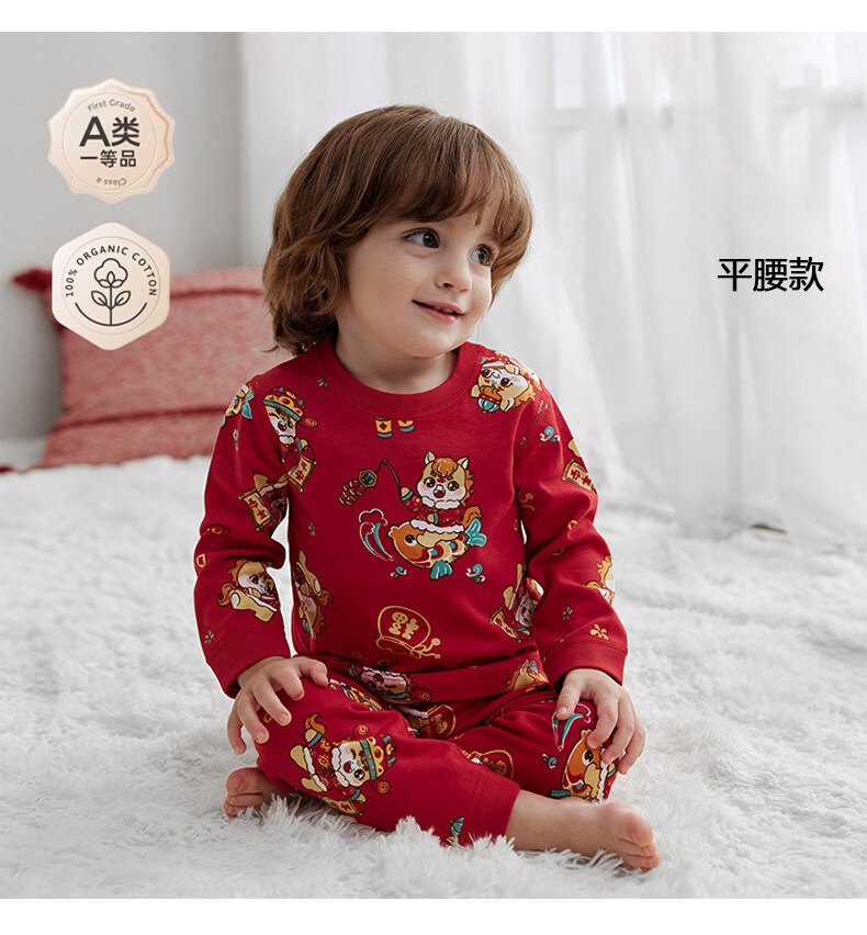Modal boneless high-waisted children's Year of the Horse underwear, pure cotton, Lunar New Year, Autumn and Winter, New Year's baby autumn clothes and long johns set, red pajamas, high-waisted - Cute Baoli Ma 90, recommended age 1-2 years old cm