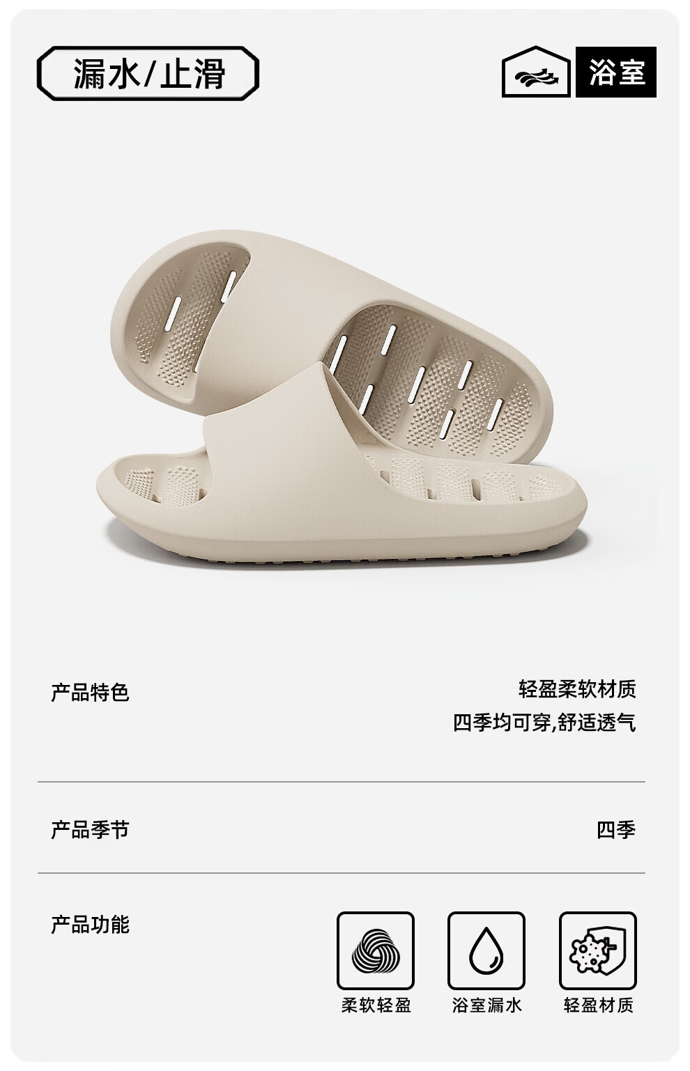 Bermuda Qingchen hollow leaking sandals for women 2026 four seasons new anti-slip bathroom soft and comfortable indoor home slippers for men beige 38-39 standard size