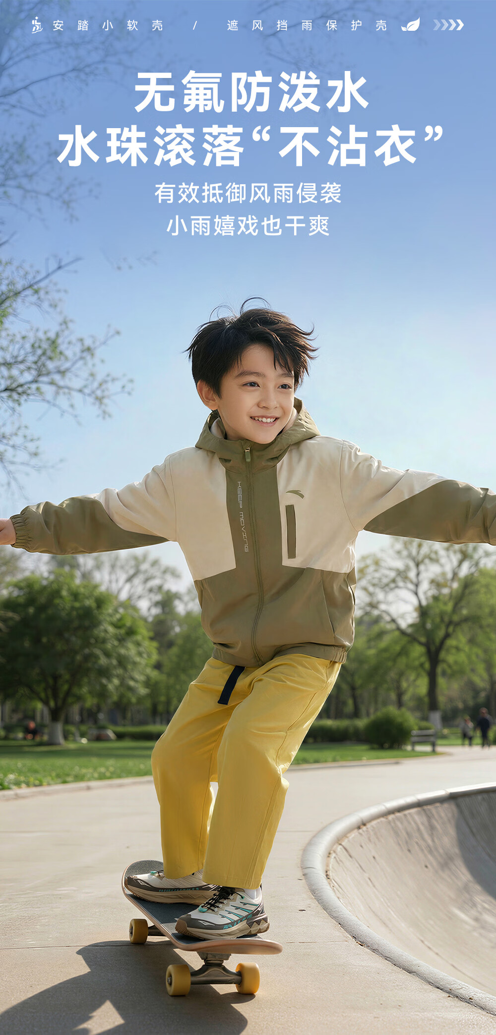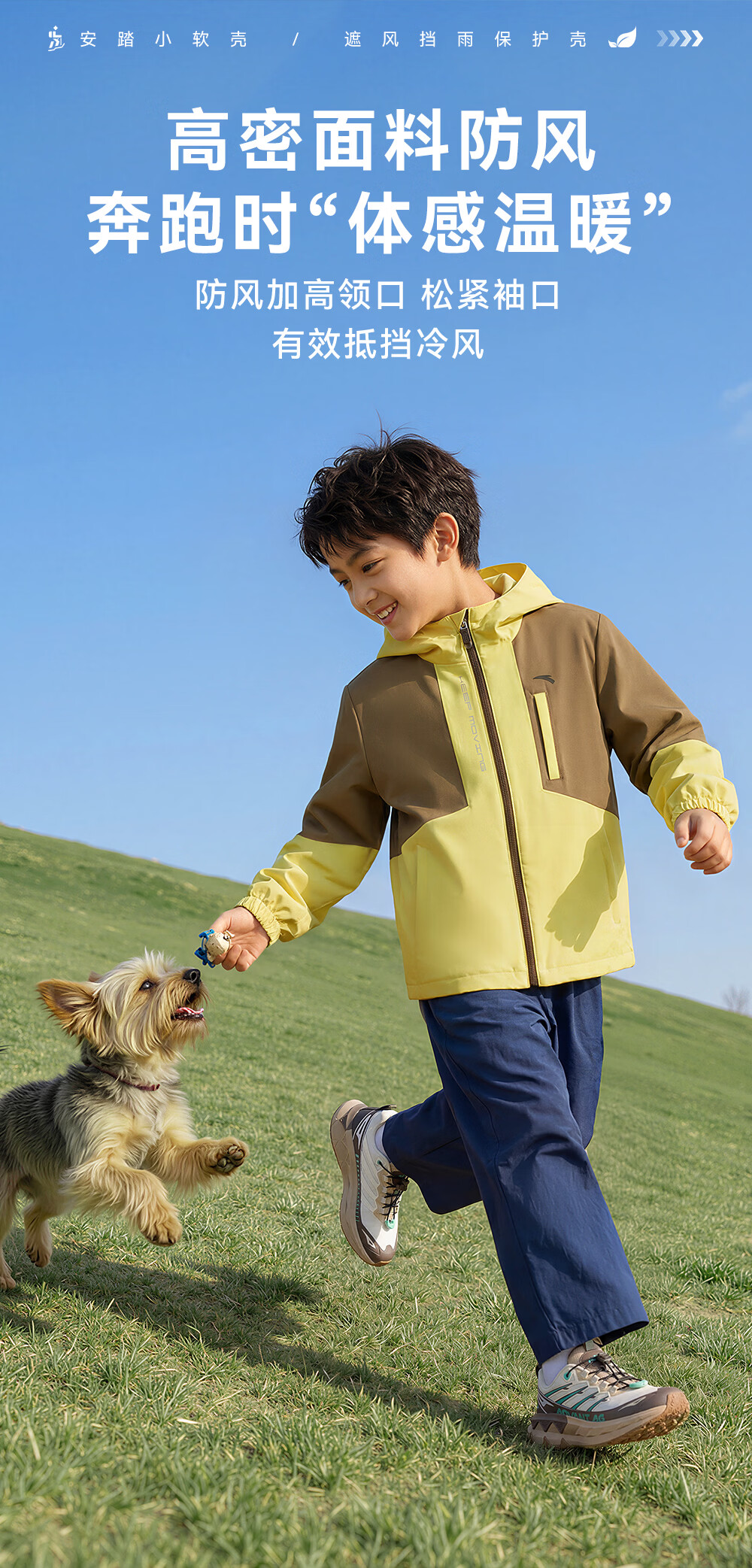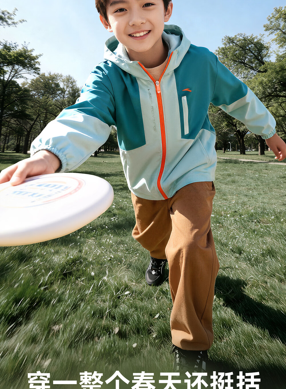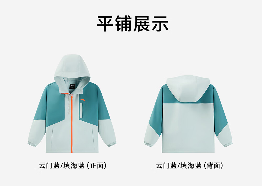ANTA children's jacket men's and women's clothing small soft shell 2026 spring new hooded water-repellent outdoor woven thin jacket Yunmen Blue/Reclamation Blue-1 150