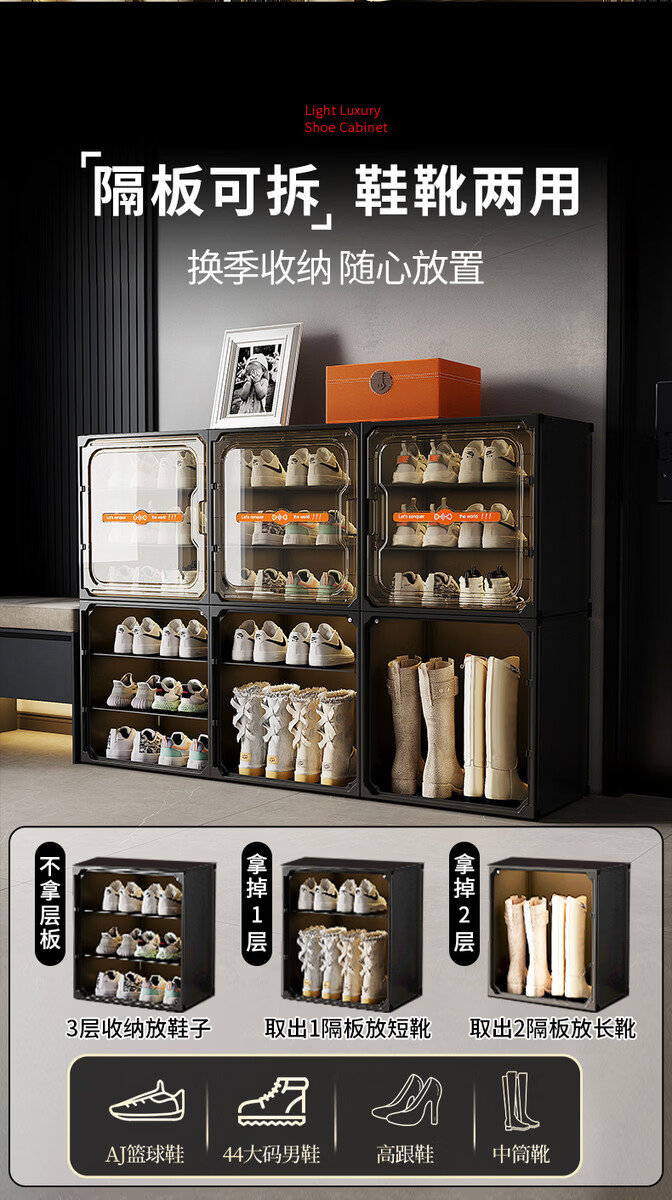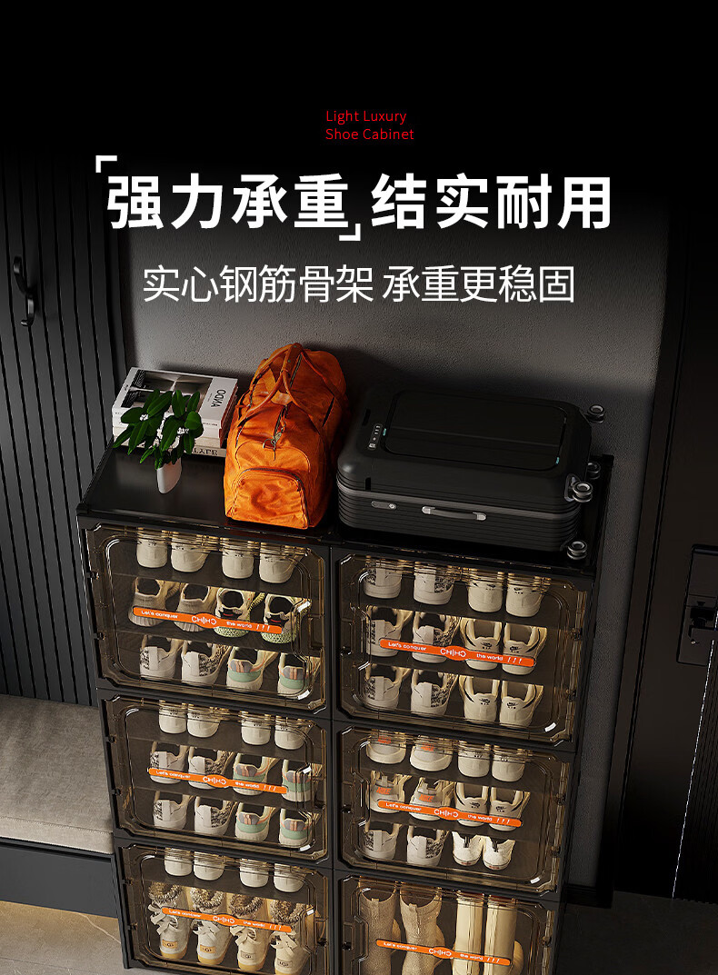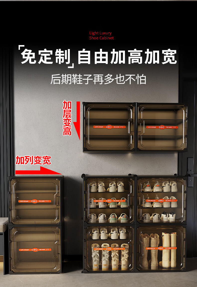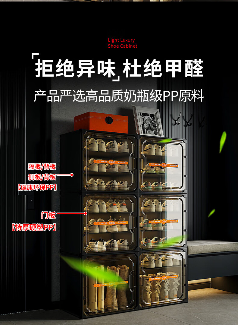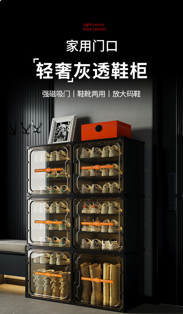 The middle shopkeeper shoe box storage box transparent shoe storage artifact plastic storage cabinet shoe cabinet home door integrated wall shoe rack hard plastic gray transparent door large capacity 3 columns 12 layers 36 grids gray to hold 72 pairs