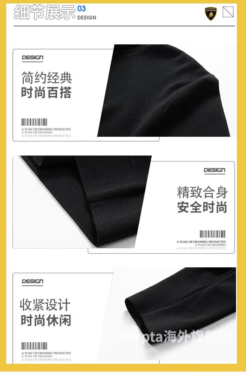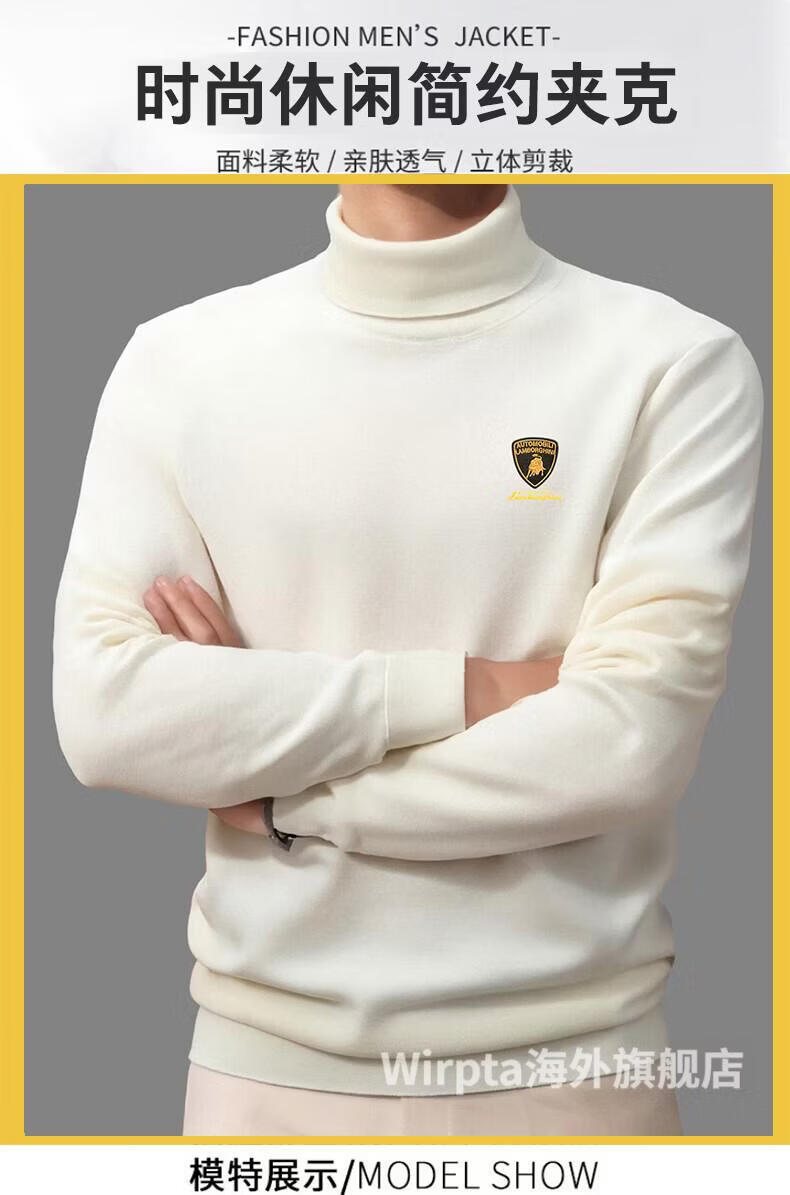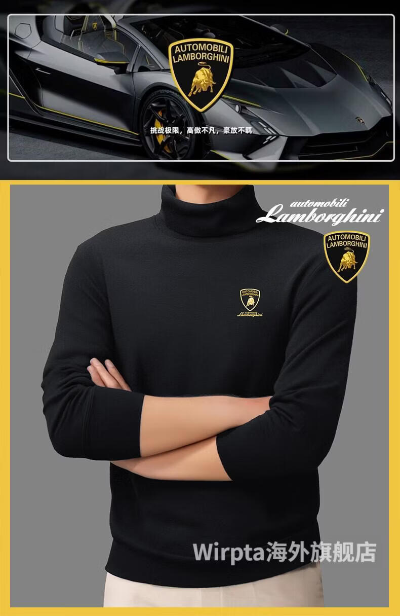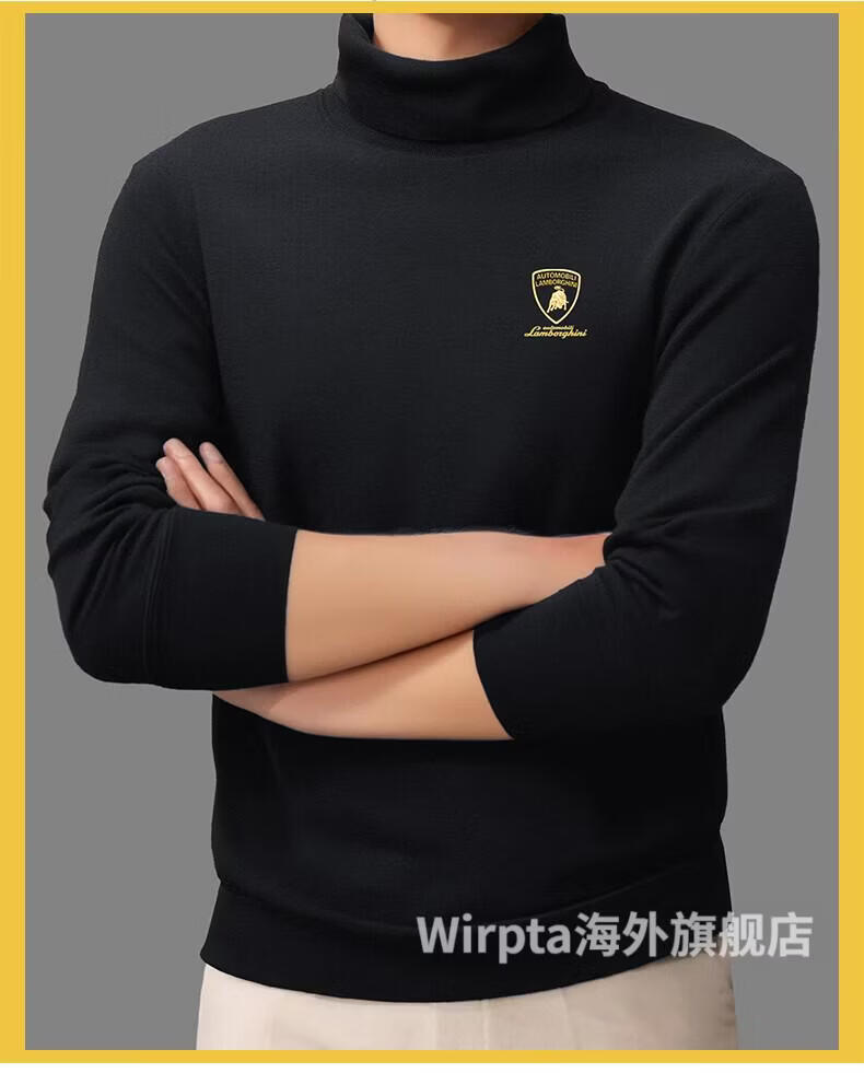 Wirpta Lamborghini joint turtleneck sweater for men spring new solid color thickened warm long-sleeved T-shirt bottoming shirt black (spot) M