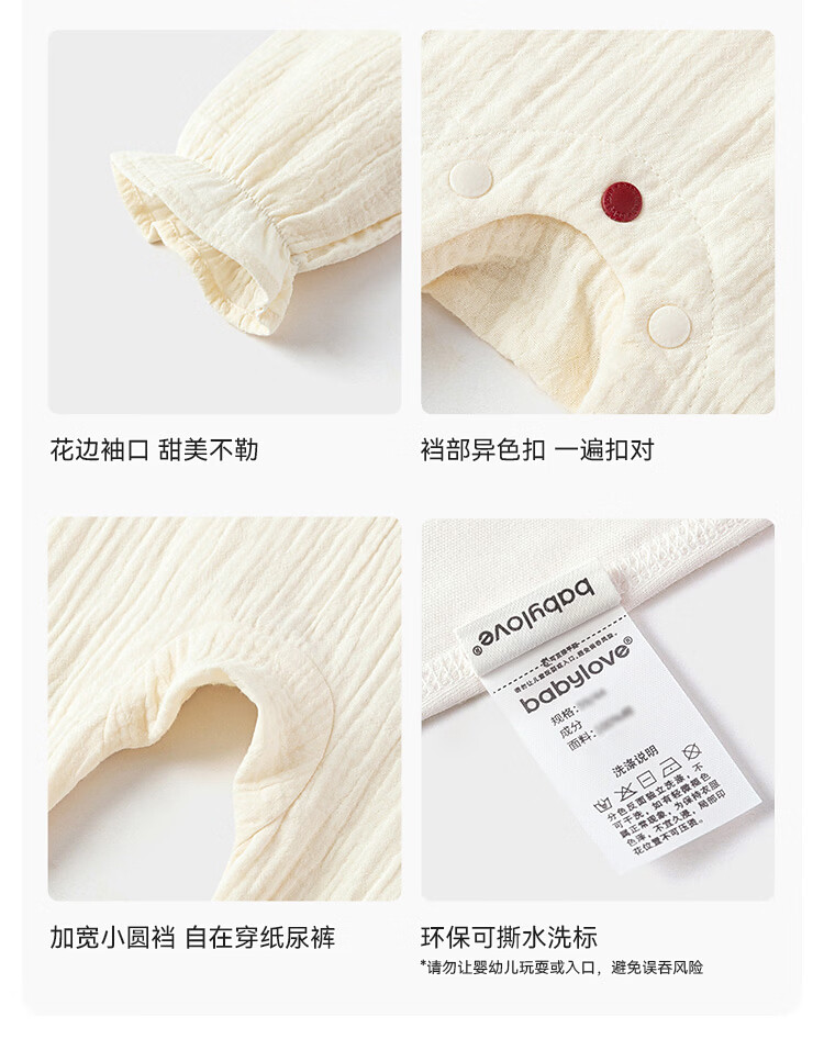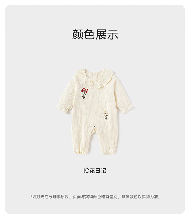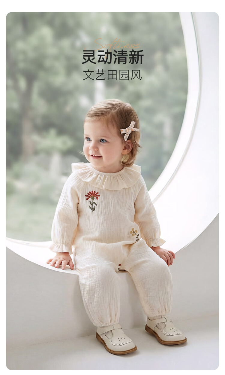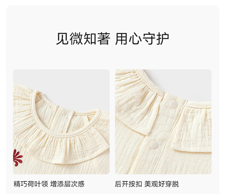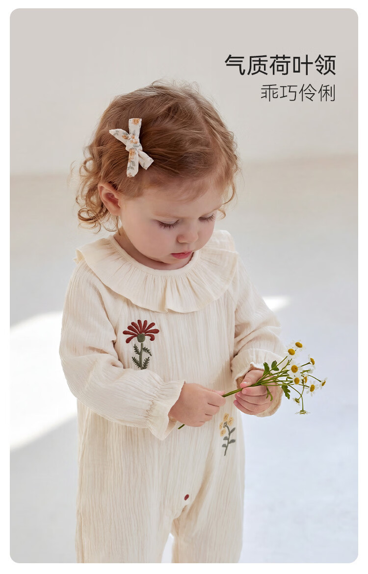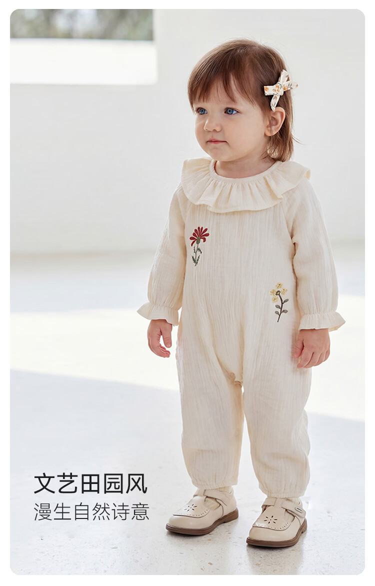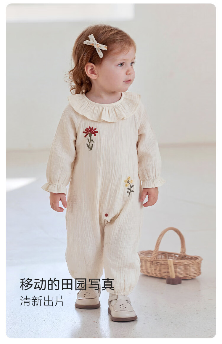 Babylove baby girl jumpsuit spring and autumn pure cotton gauze khaki literary lotus leaf collar outing clothes picking up flowers diary picking up flowers diary 80cm