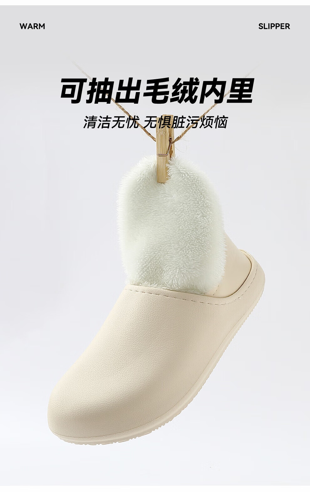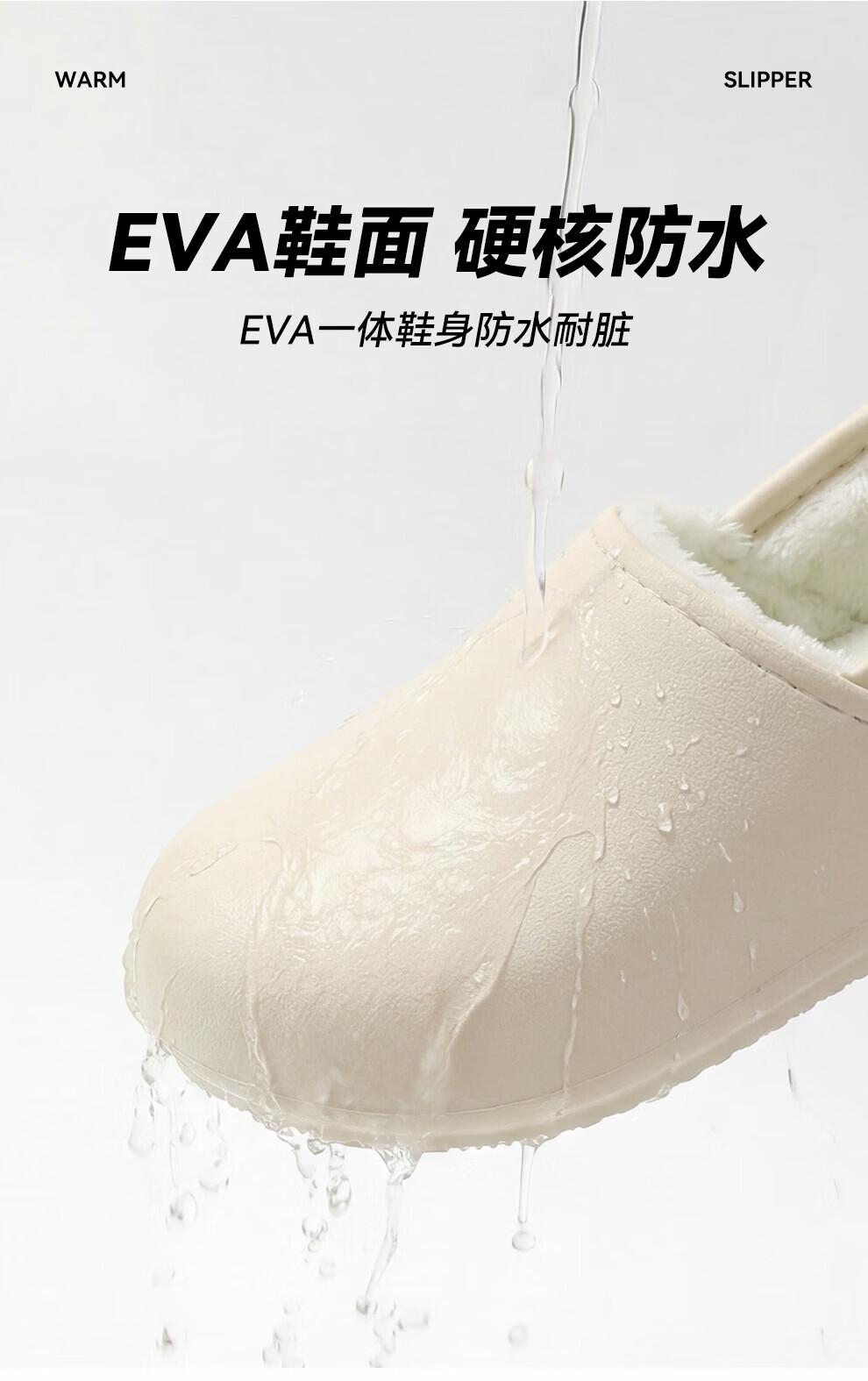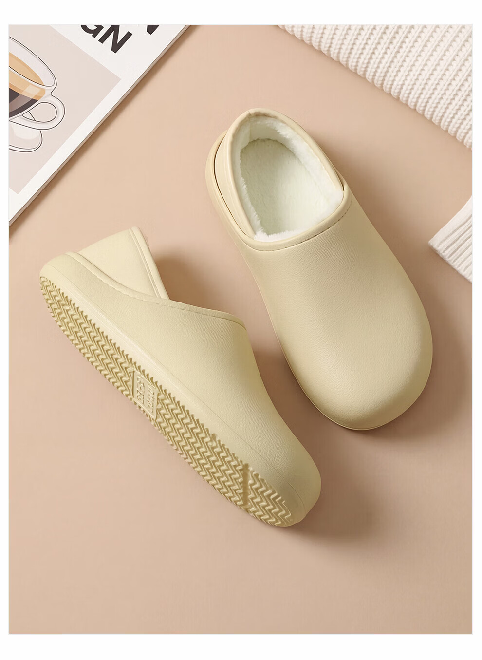 Red bean-stomping cotton slippers for women in winter 2025 new indoor home Baotou waterproof warm and comfortable thick-soled cotton slippers for men clay color 36-37 standard size