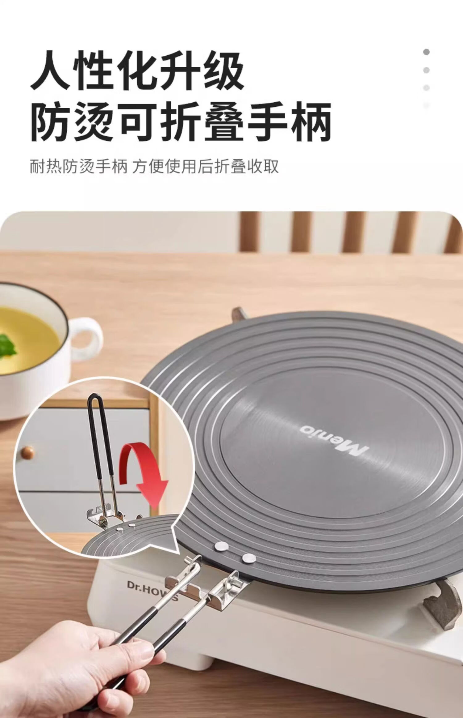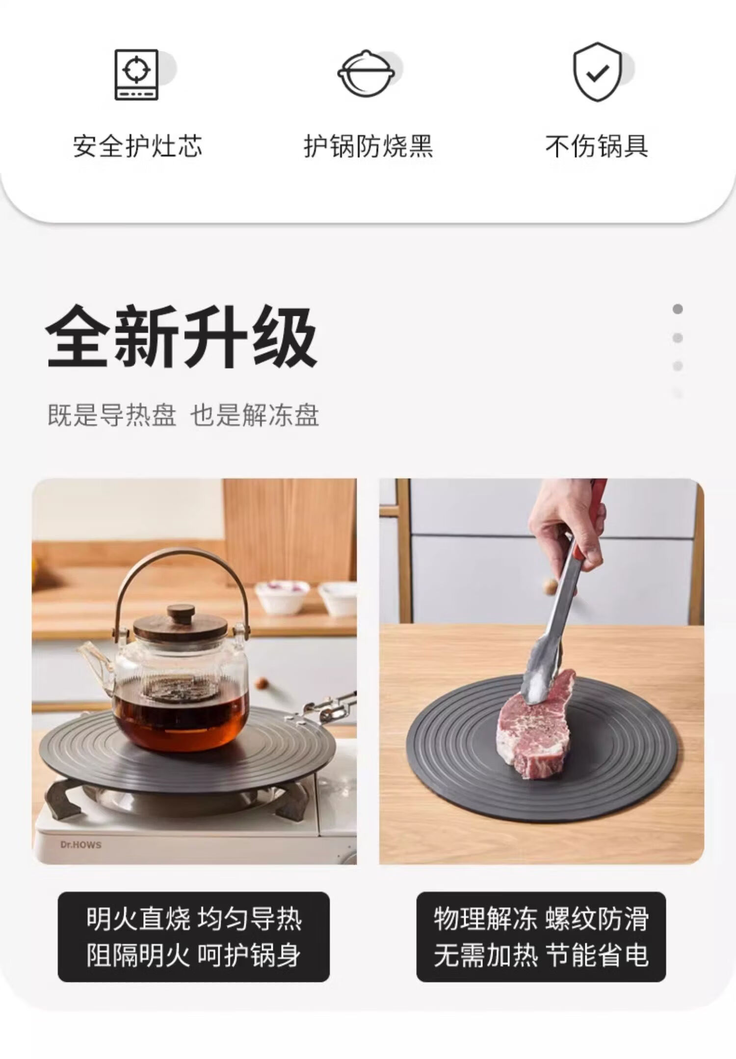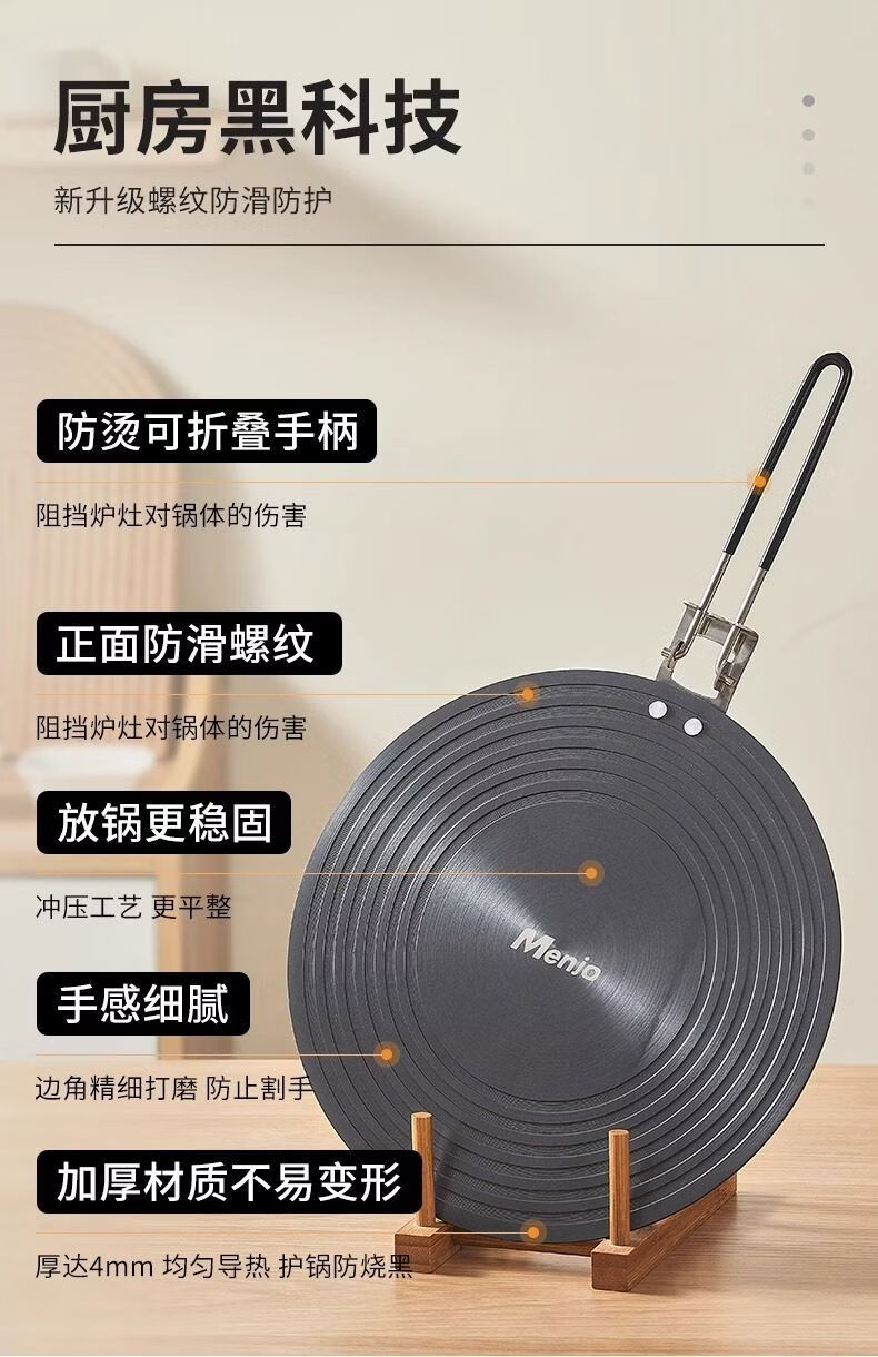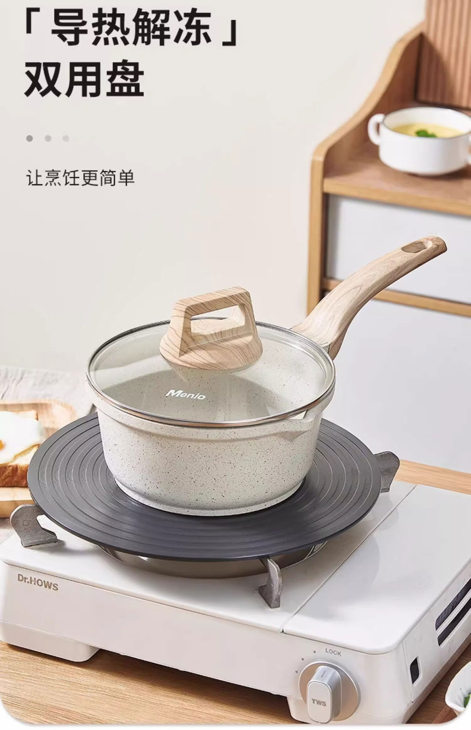 Liying kitchen heat conductor plate gas stove household defrost heating heat insulation plate fire insulation pad heat conduction plate anti-burn black 24cm+28cm with handle 15 seconds quick heating and even heating