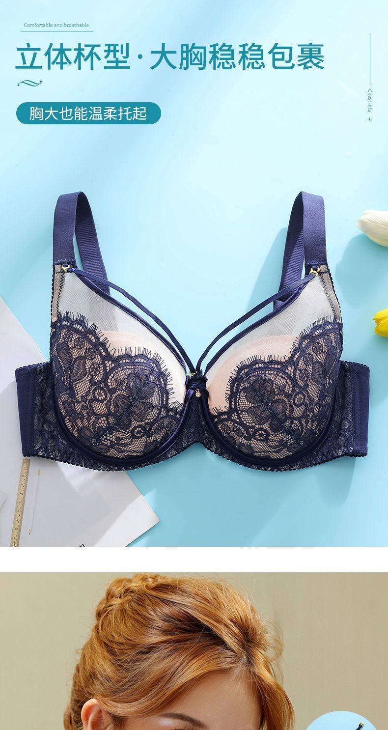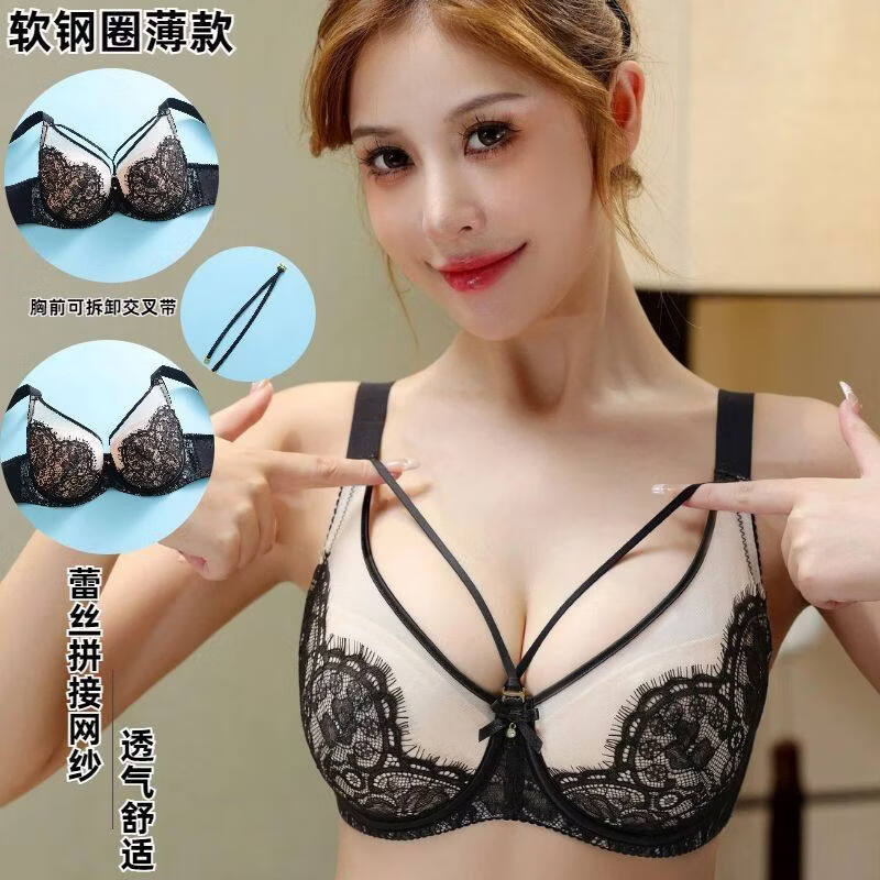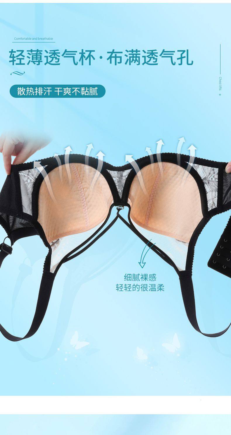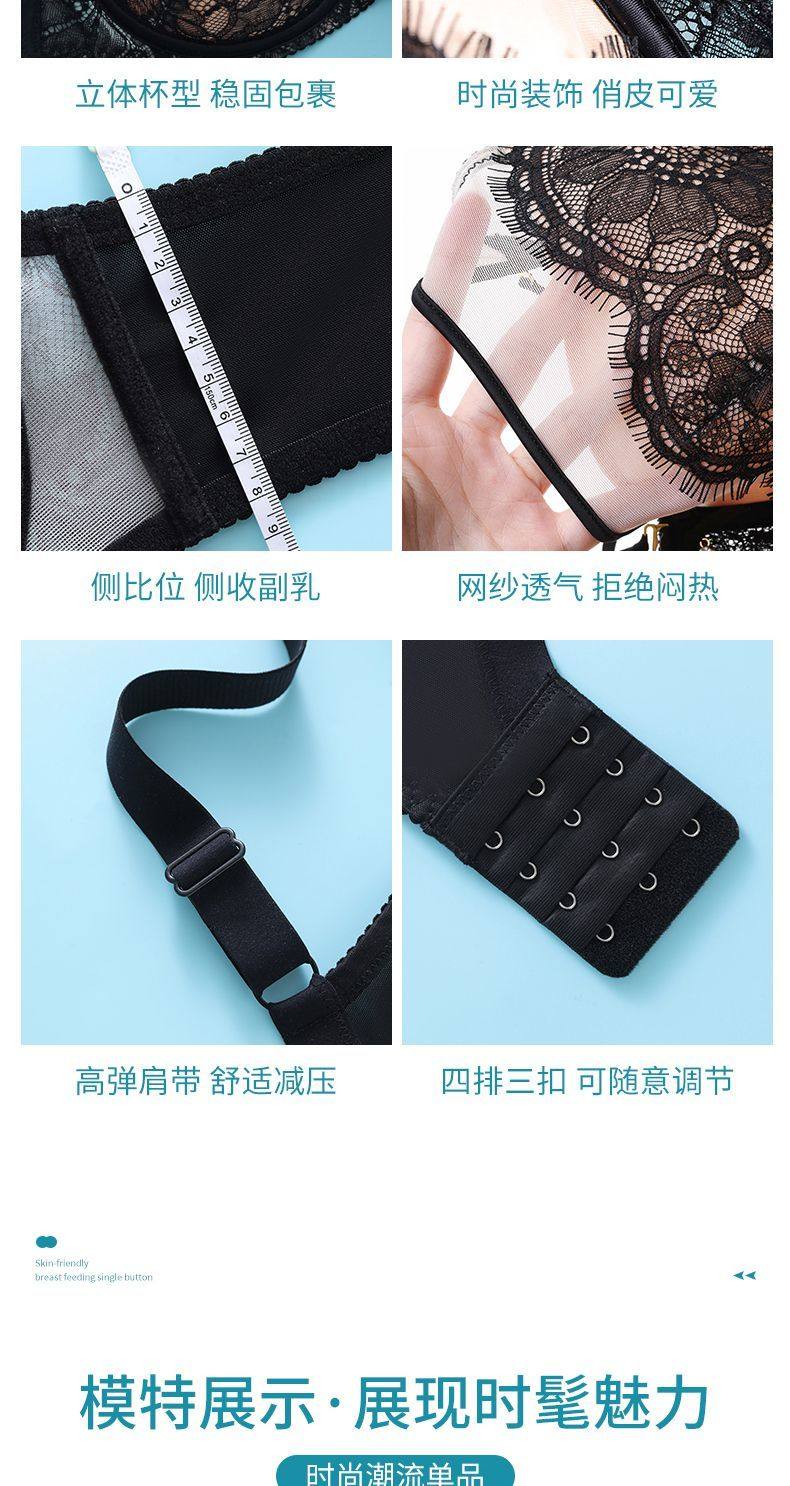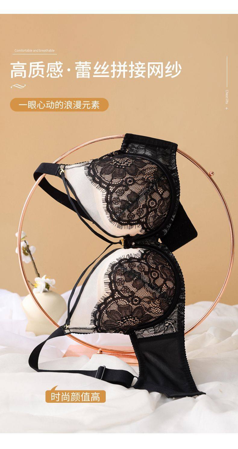 Yalu sexy lace soft steel ring bra push-up breast lift anti-sagging adjustable breast-shrinking anti-expansion bra black skin 105C 46