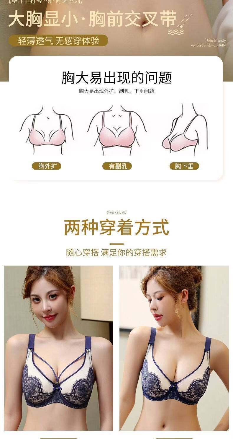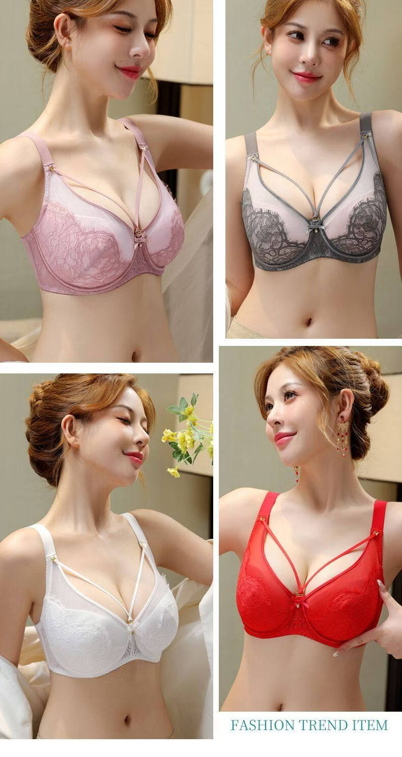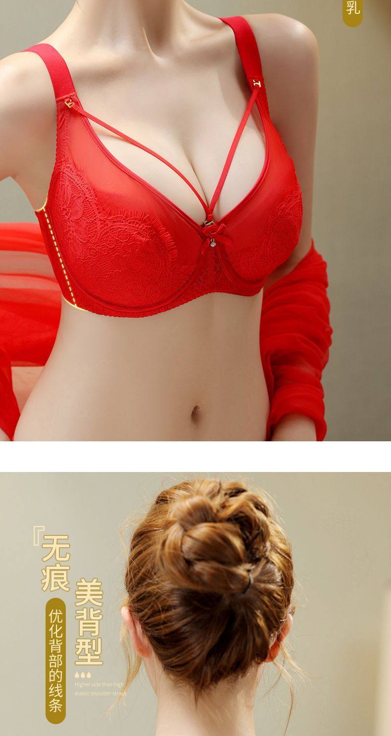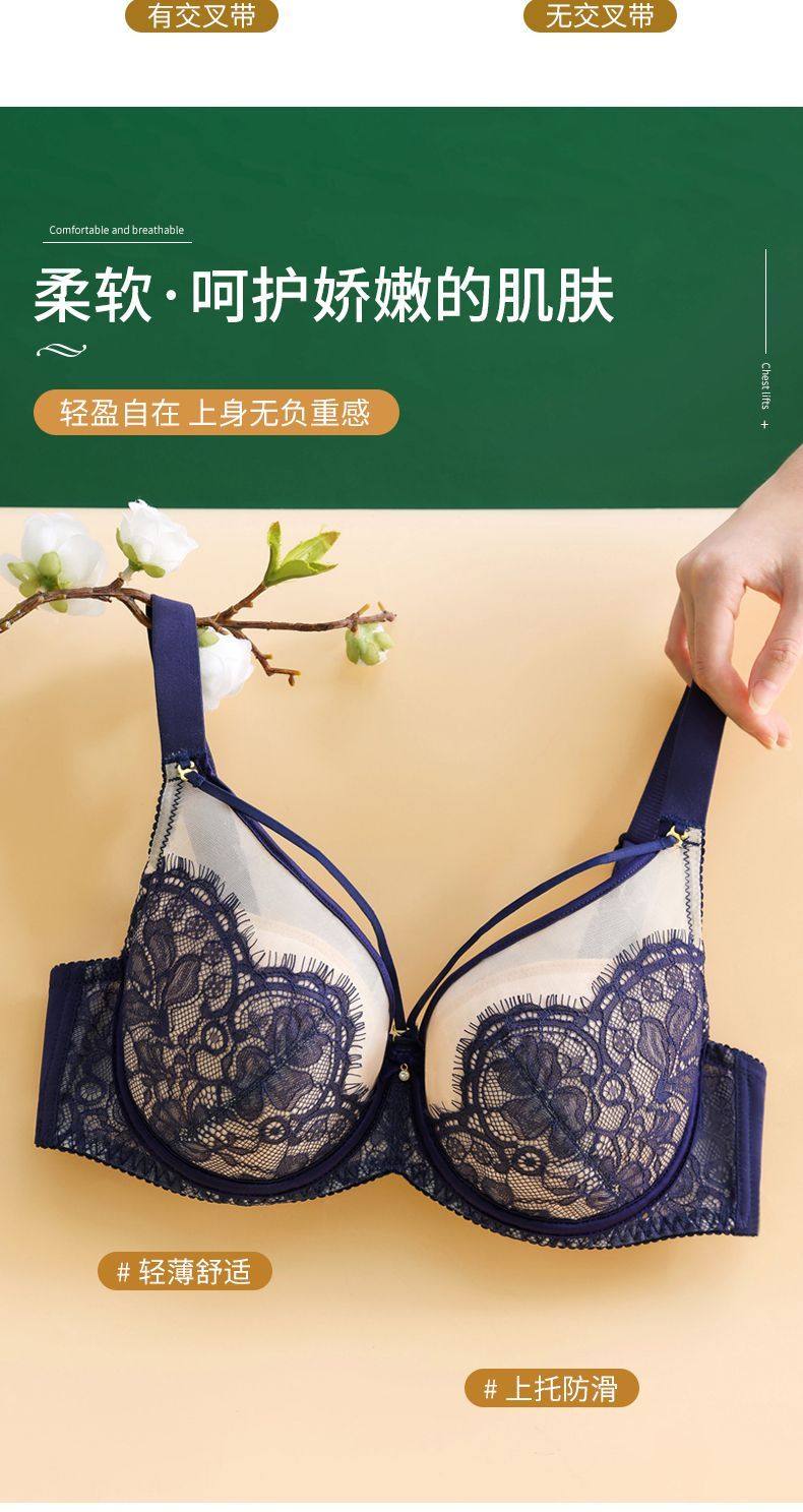 Yalu sexy lace soft steel ring bra push-up breast lift anti-sagging adjustable breast-shrinking anti-expansion bra black skin 105C 46