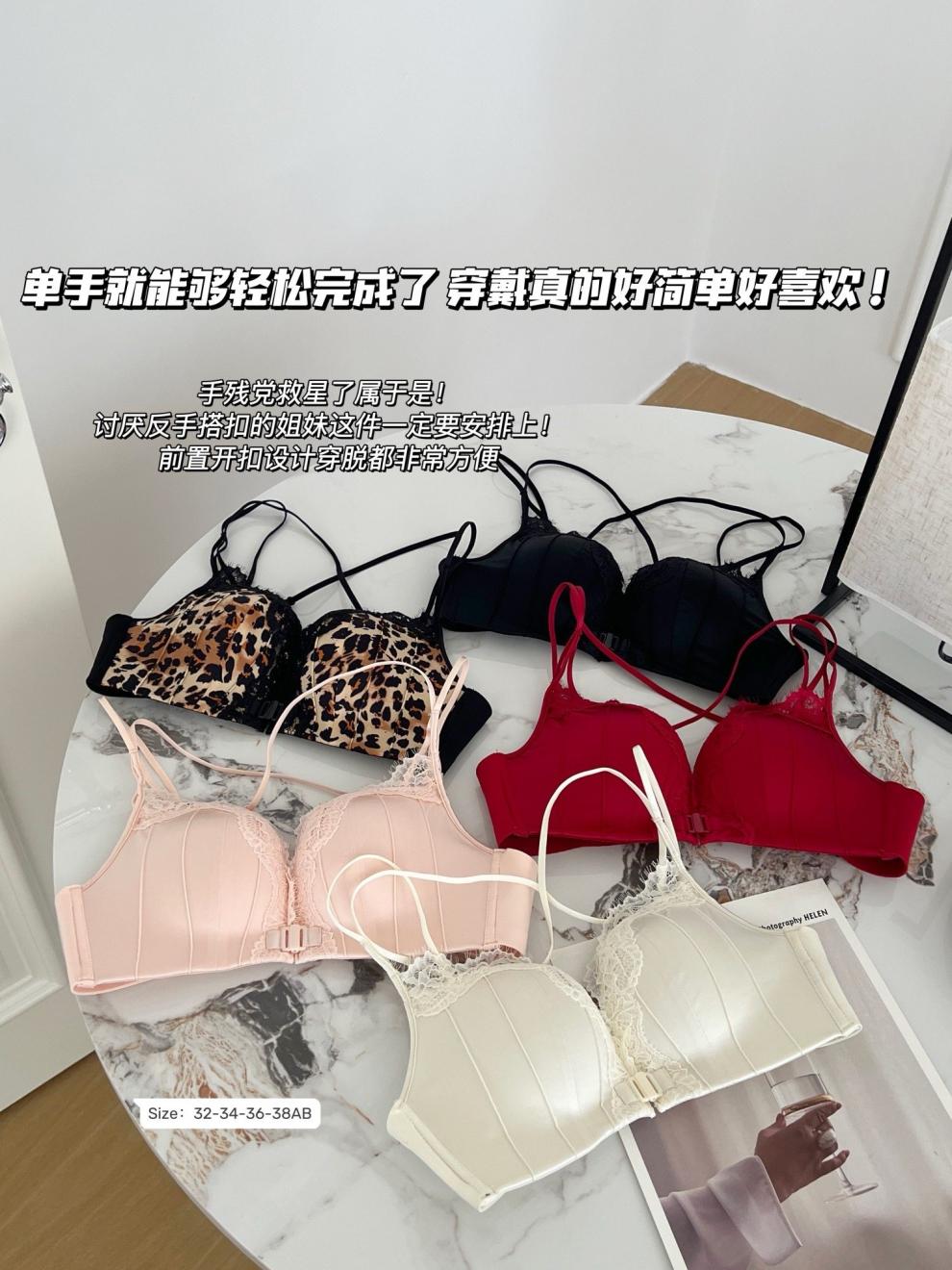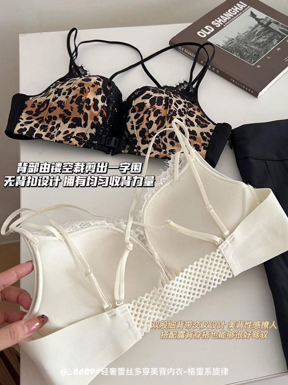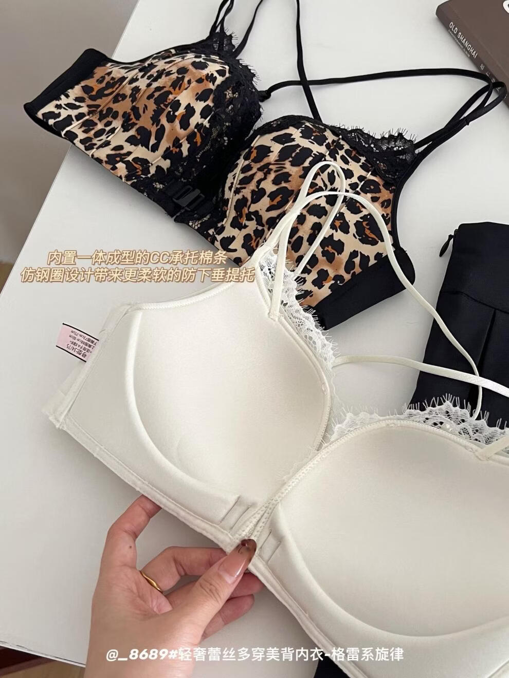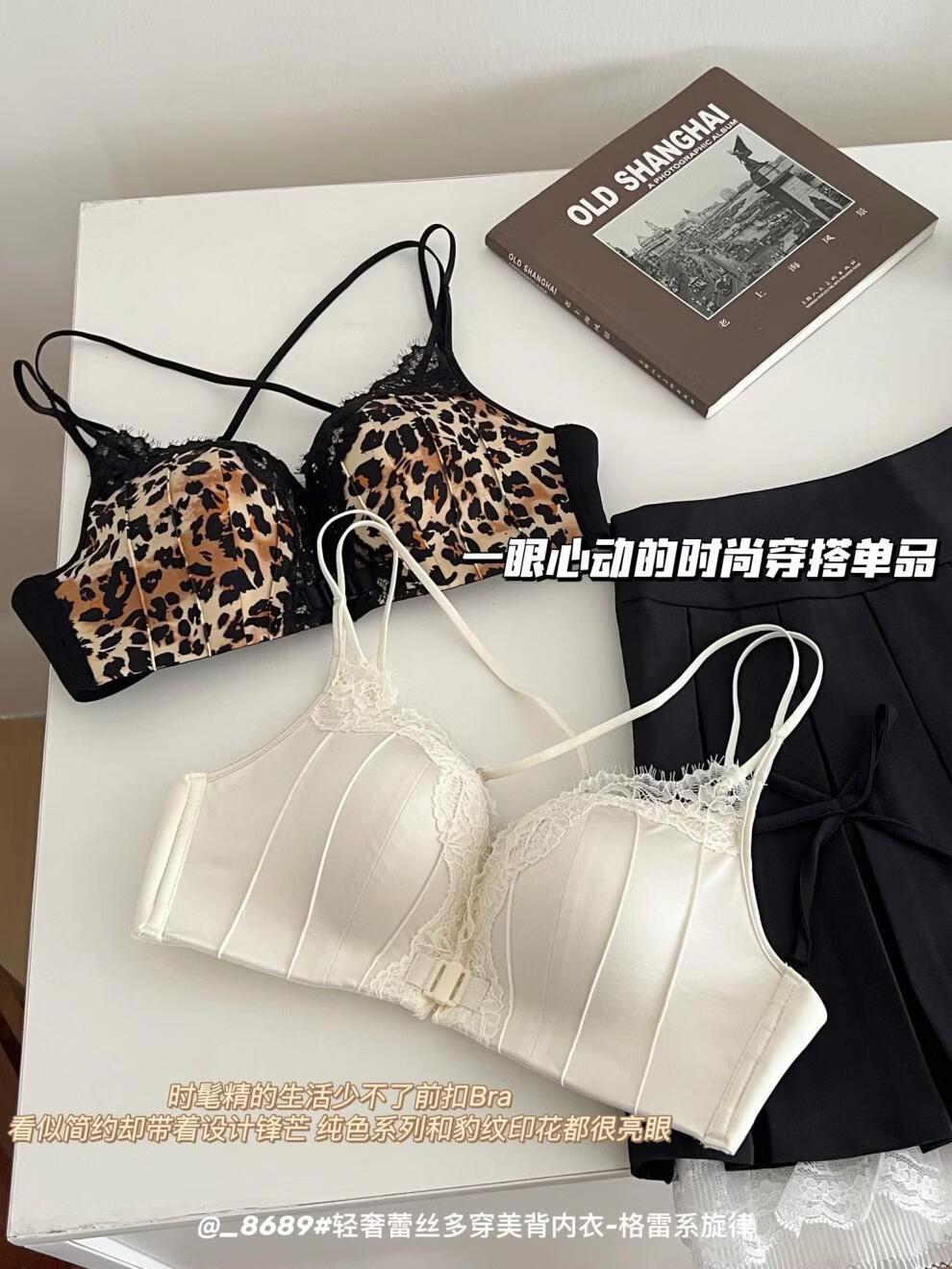 Yalu Front Button Beautiful Back Small Breast Push Up Underwear Feminine Leopard Print Lace Wireless Large Push Up Bra Set Leopard Print Set M 34/75AB Through Cup (Thickness 2c)