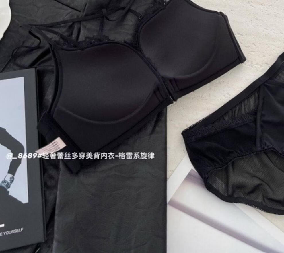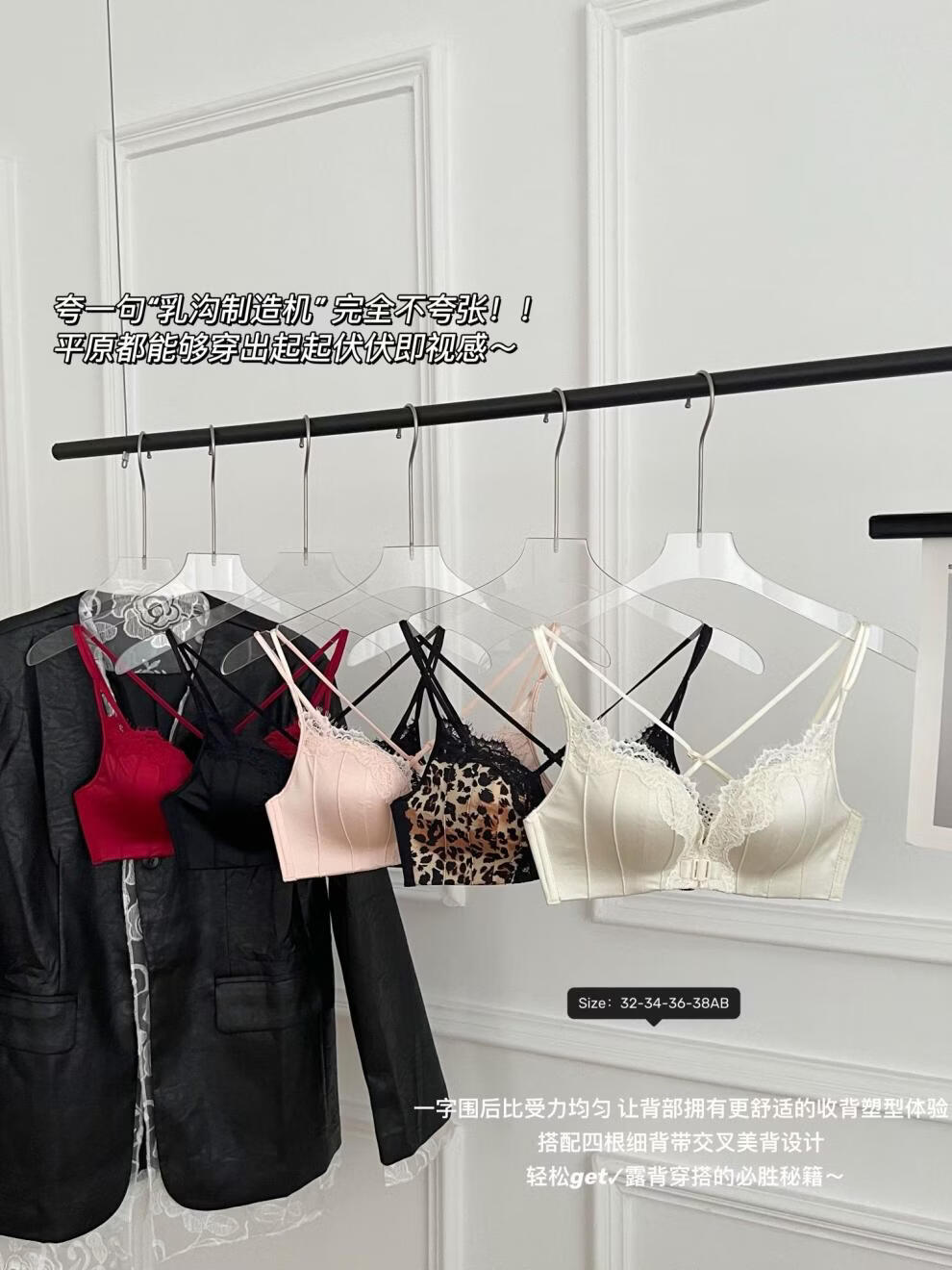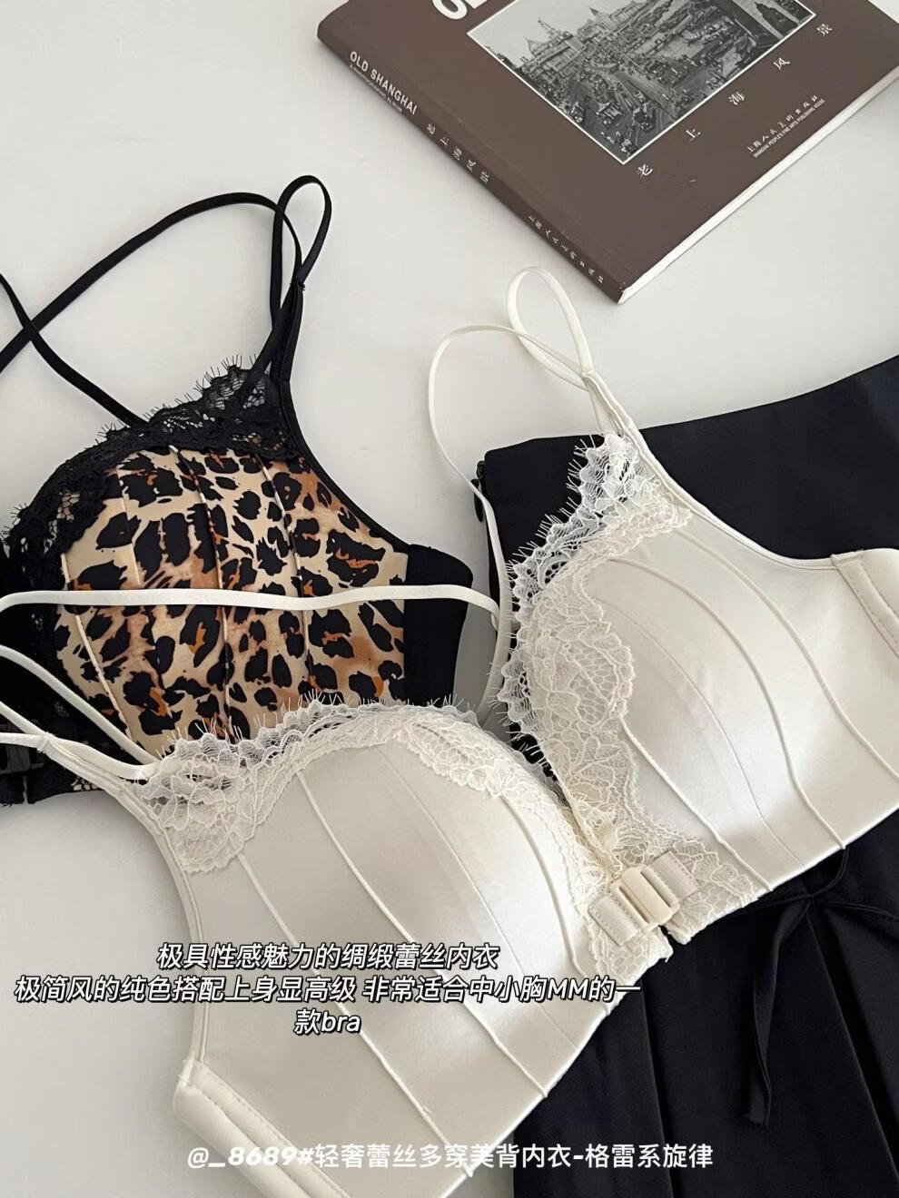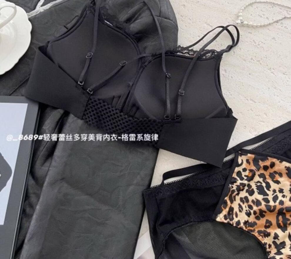 Yalu Front Button Beautiful Back Small Breast Push Up Underwear Feminine Leopard Print Lace Wireless Large Push Up Bra Set Leopard Print Set M 34/75AB Through Cup (Thickness 2c)
