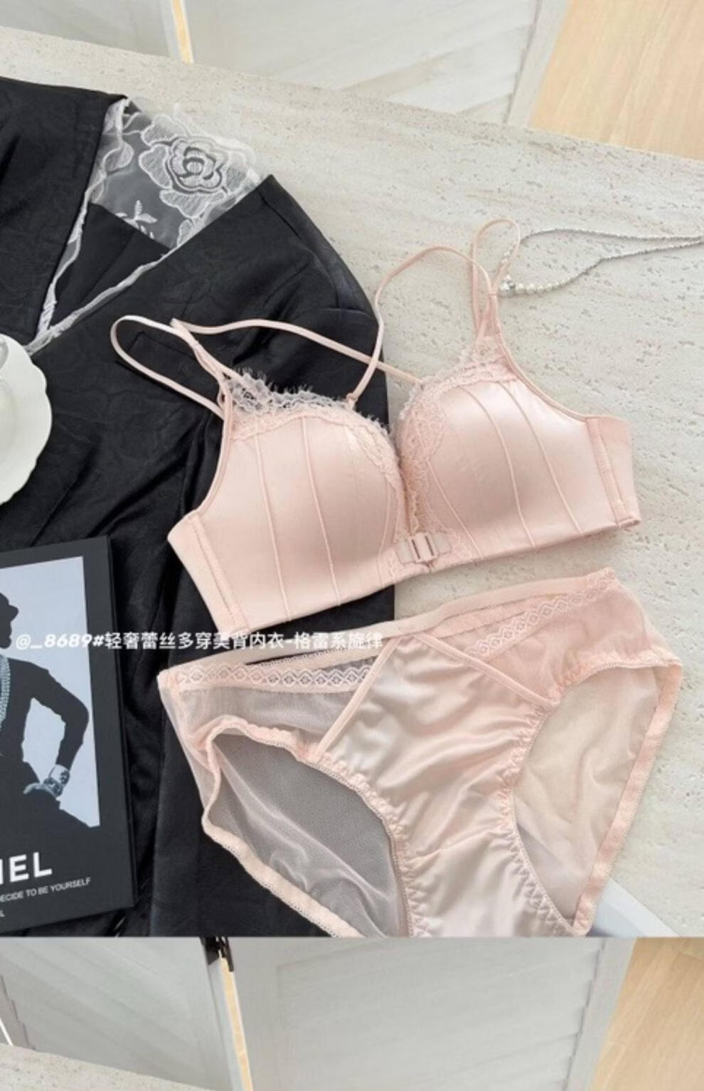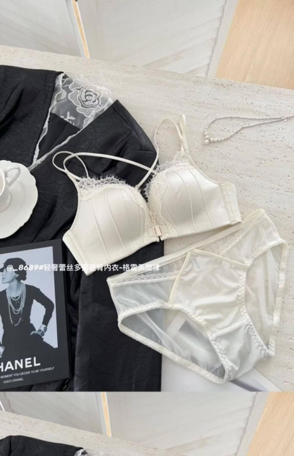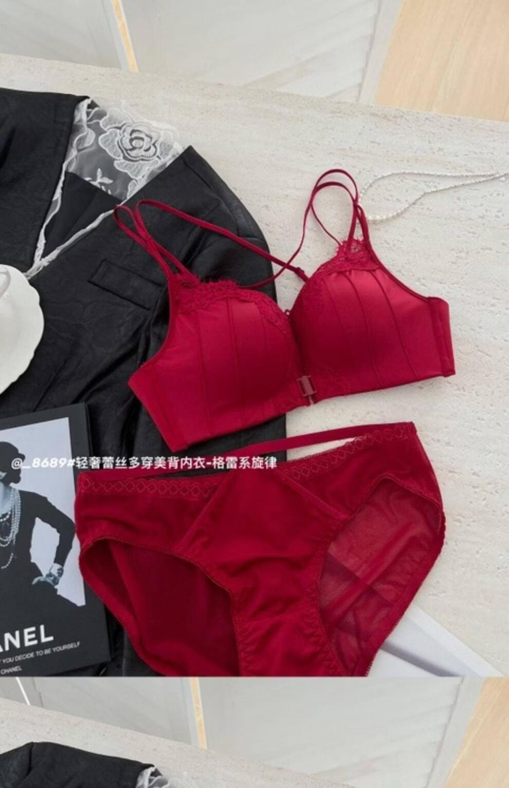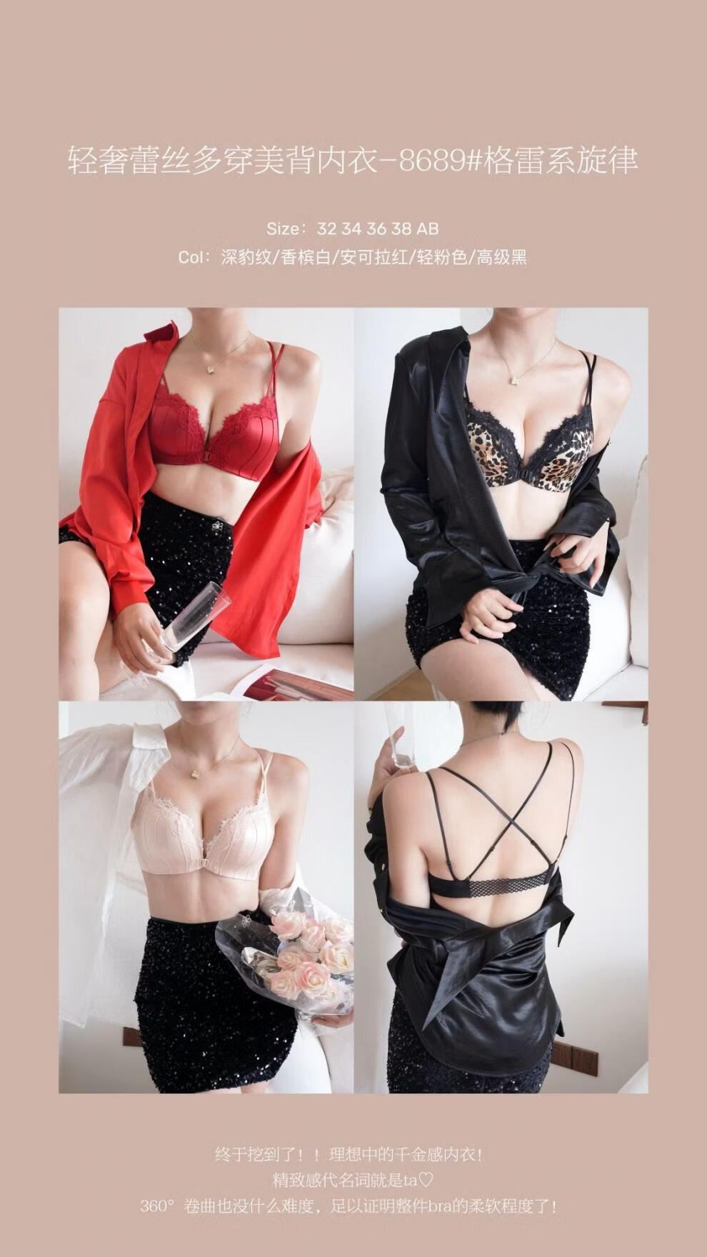 Yalu Front Button Beautiful Back Small Breast Push Up Underwear Feminine Leopard Print Lace Wireless Large Push Up Bra Set Leopard Print Set M 34/75AB Through Cup (Thickness 2c)