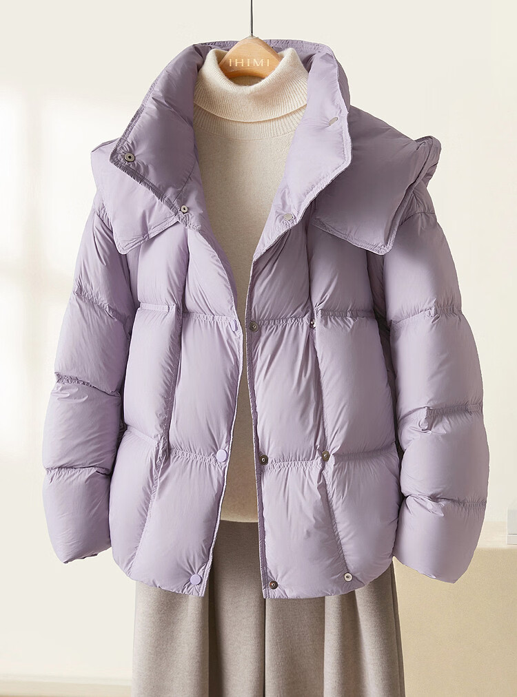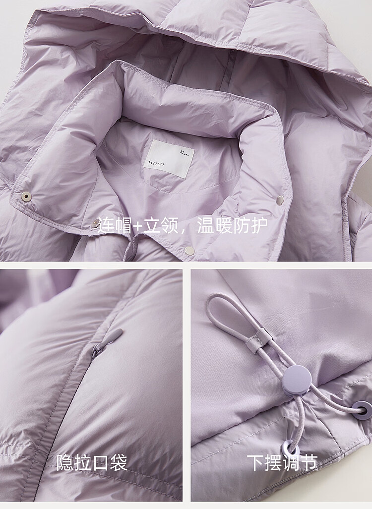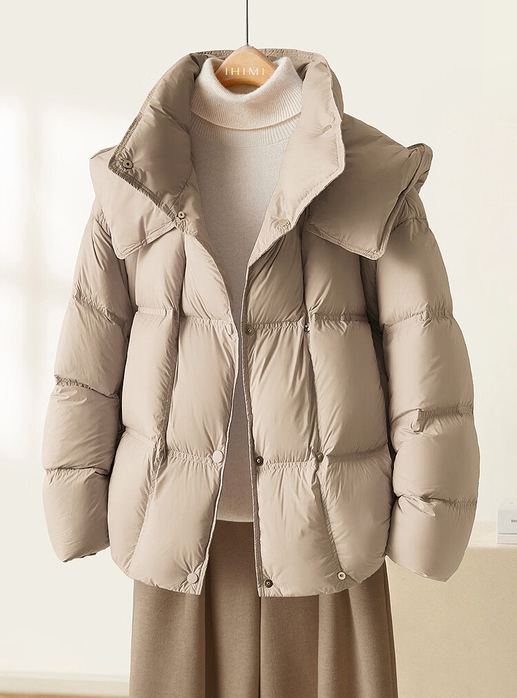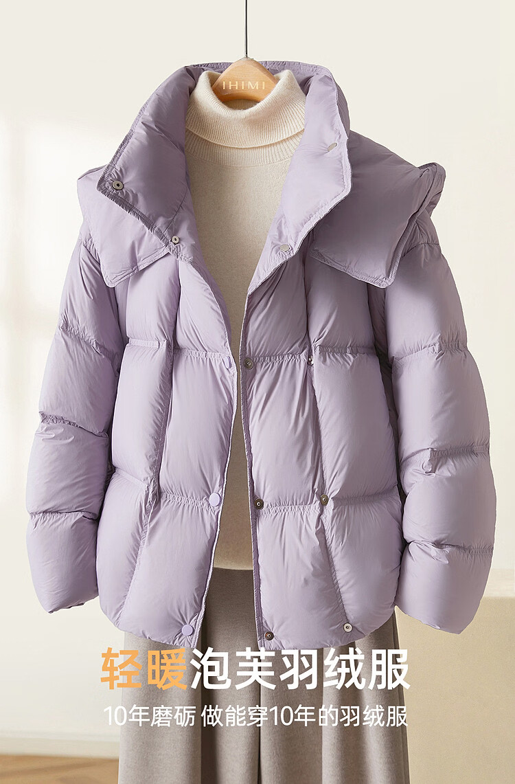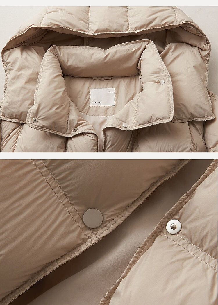 IHIMI members get 20% off IHIMI Puff Feel Hooded Stand Collar Down Jacket Women's Loose Season Slim Warm Jacket Champagne S One Size