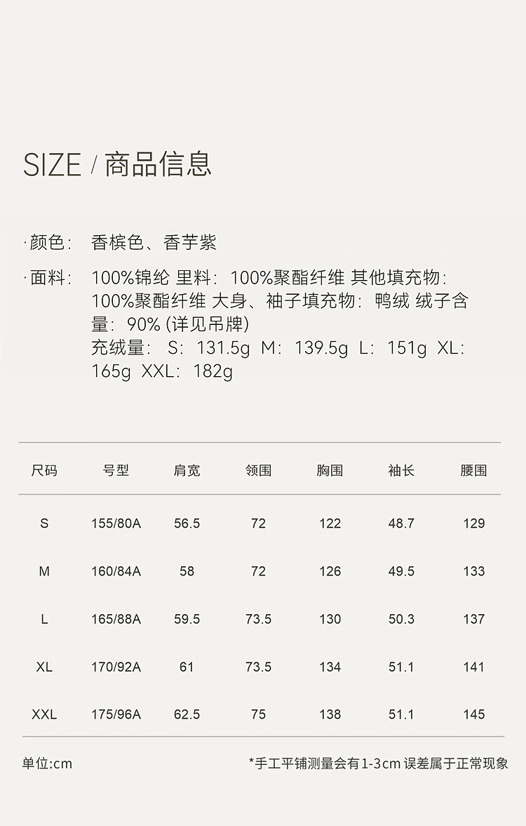 China (cm) 165 / 88-90 170 / 96-98 175 / 108-110 180 / 118-122 185 / 126-130
